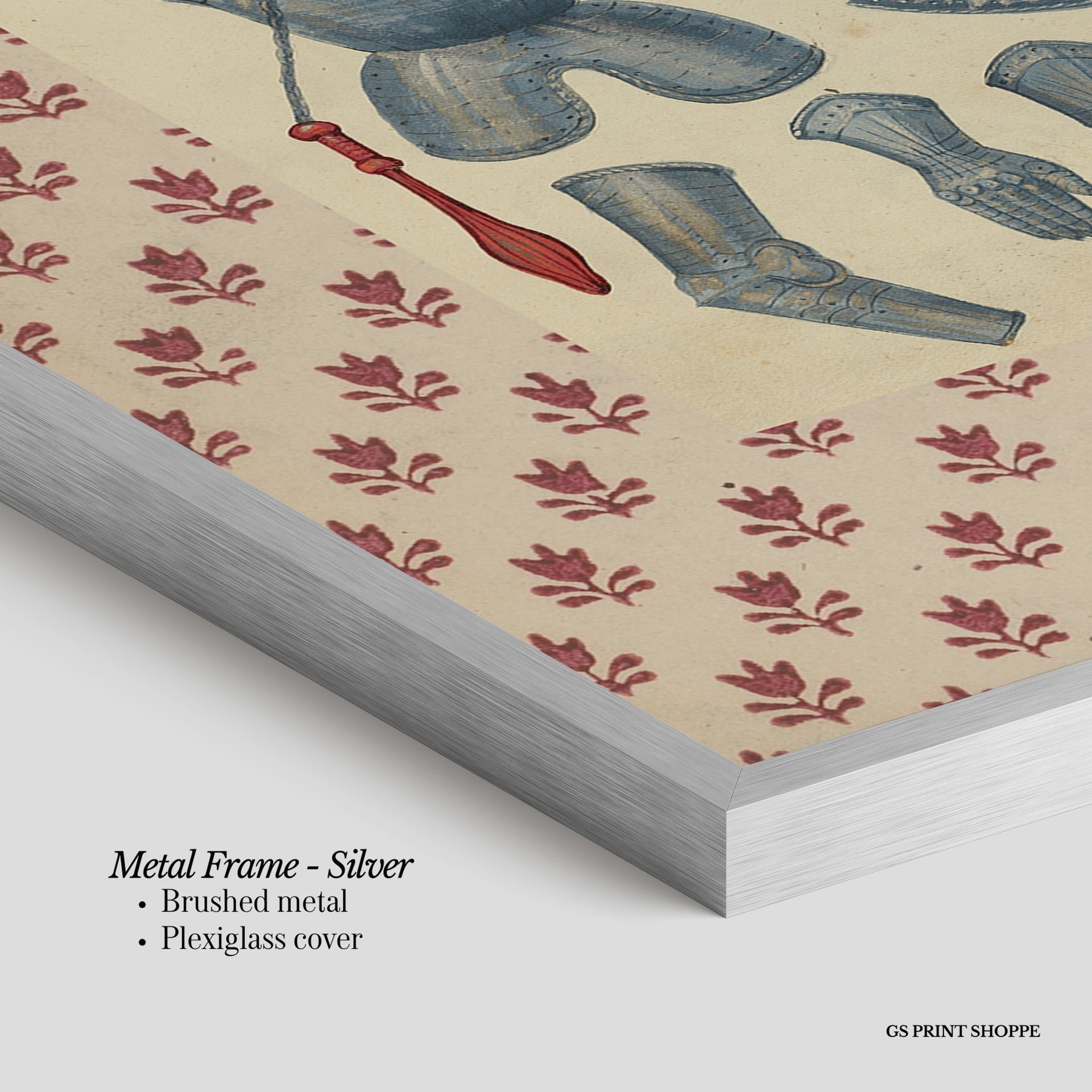 Metal Frame: Sleek and modern, our metal frame is crafted with brushed metal for a polished finish. It comes with durable plexiglass and sturdy metal hangers for horizontal or vertical display.
