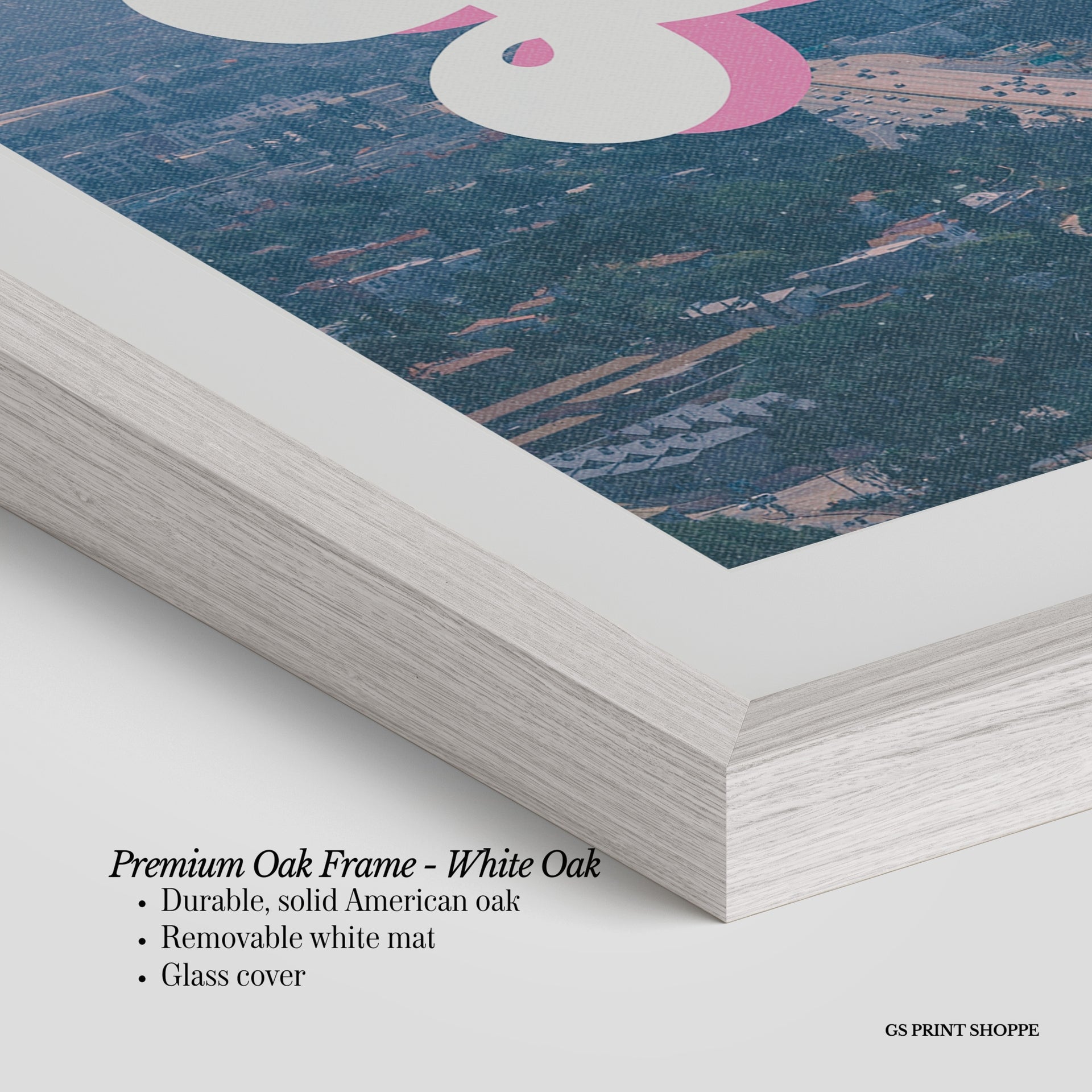 Premium Oak Frame: Our premium oak frame is crafted from solid American oak, offering a warm, natural feel with a high-end finish. We complete this elevated offering with a bright white removable mat and real glass for a versatile and polished look.