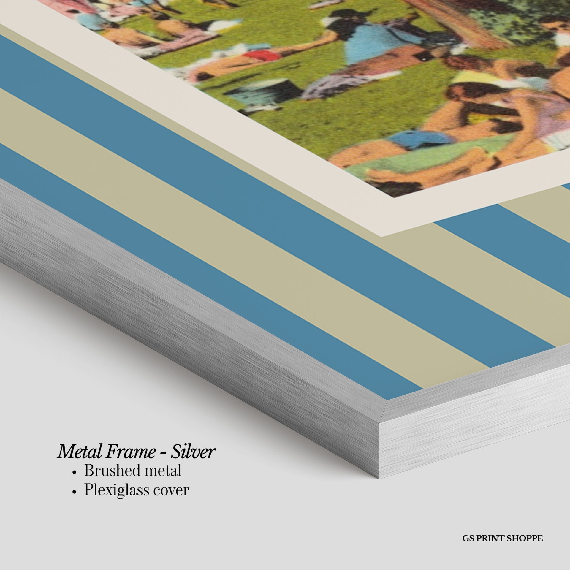 Metal Frame: Sleek and modern, our metal frame is crafted with brushed metal for a polished finish. It comes with durable plexiglass and sturdy metal hangers for horizontal or vertical display.