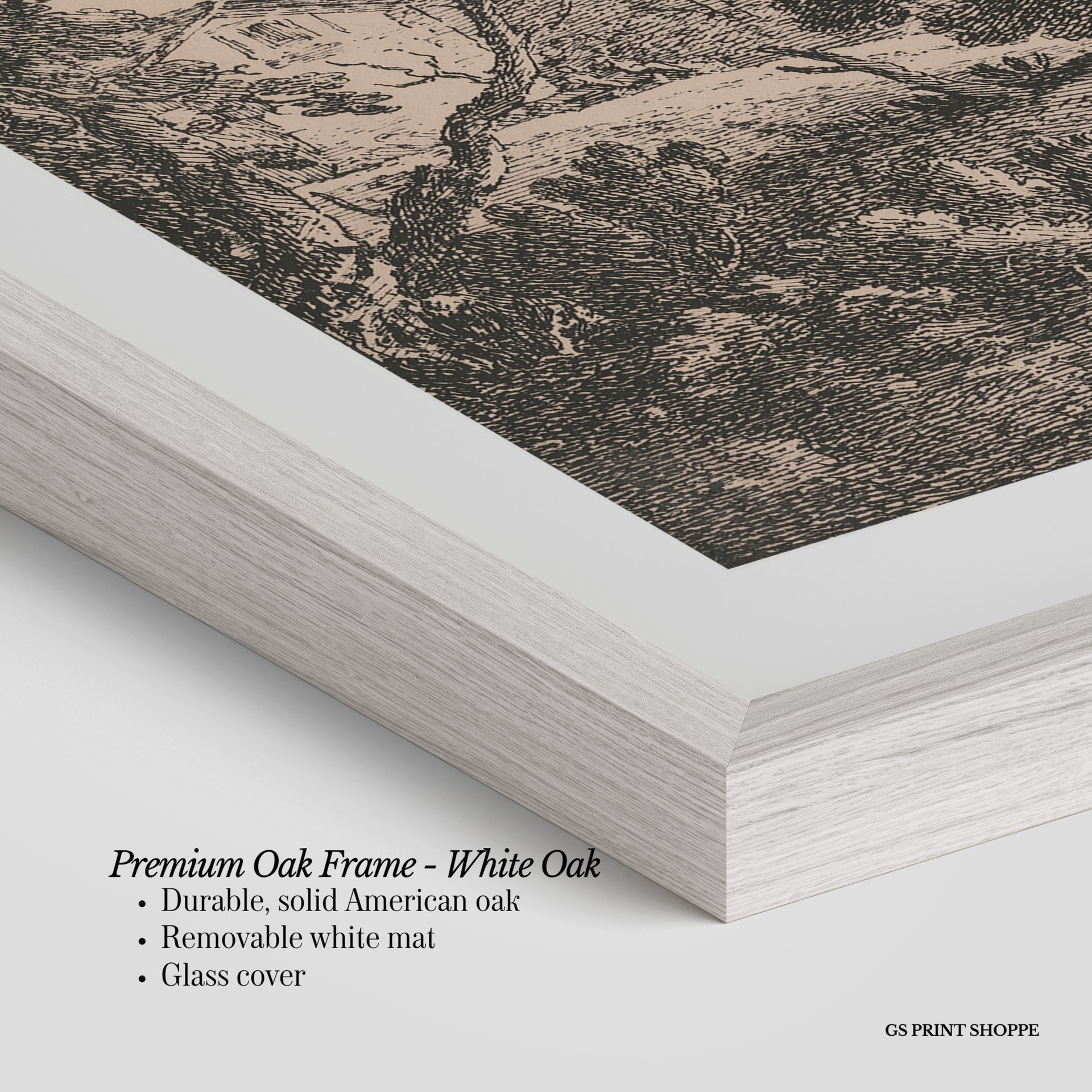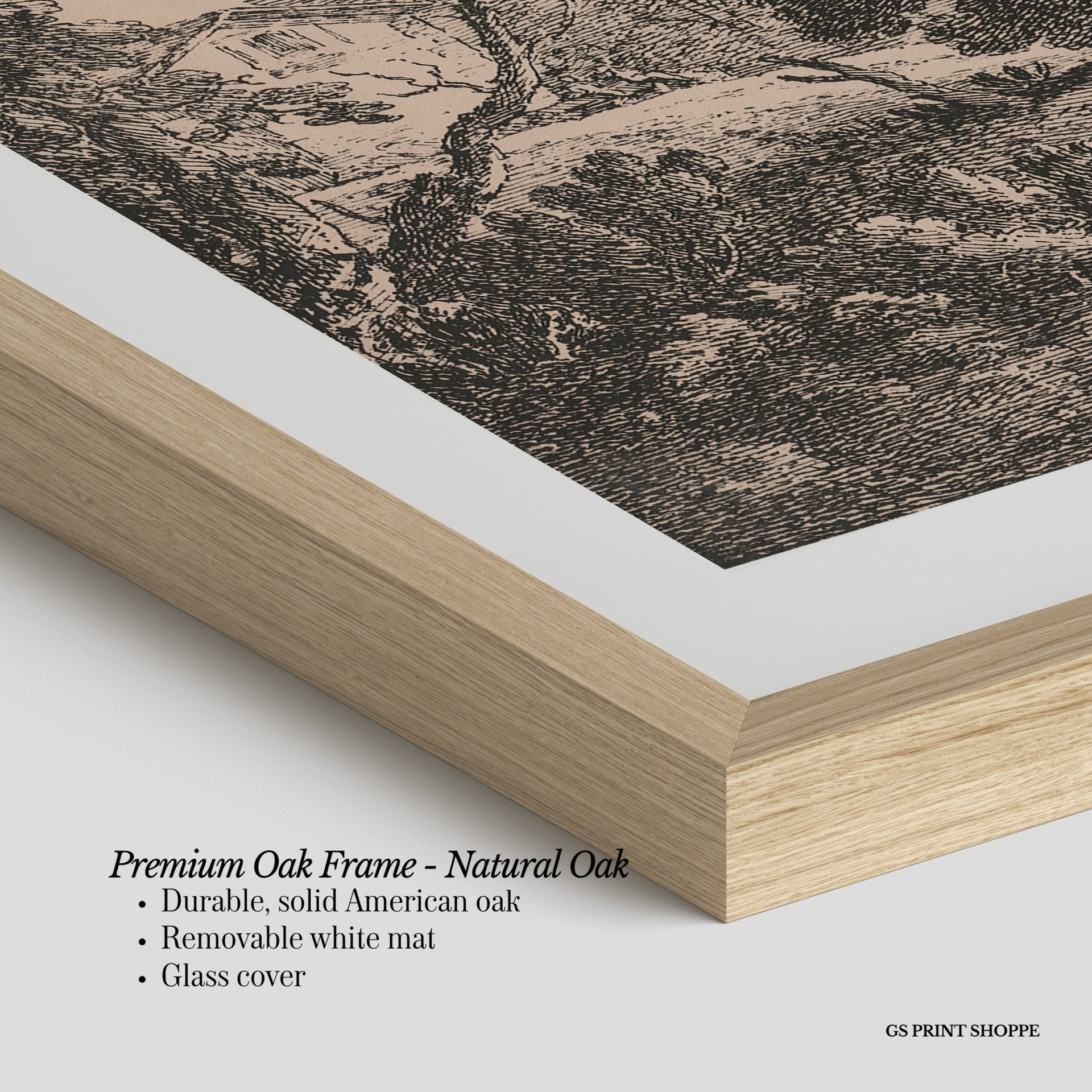 Premium Oak Frame: Our premium oak frame is crafted from solid American oak, offering a warm, natural feel with a high-end finish. We complete this elevated offering with a bright white removable mat and real glass for a versatile and polished look.