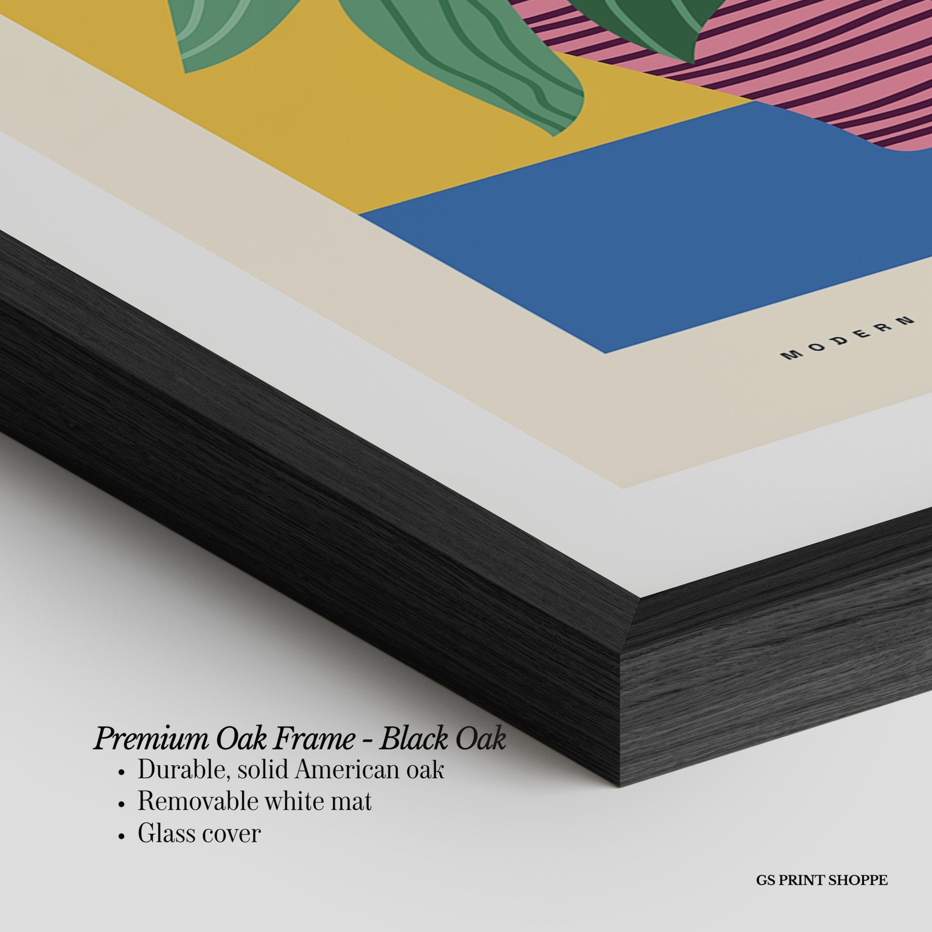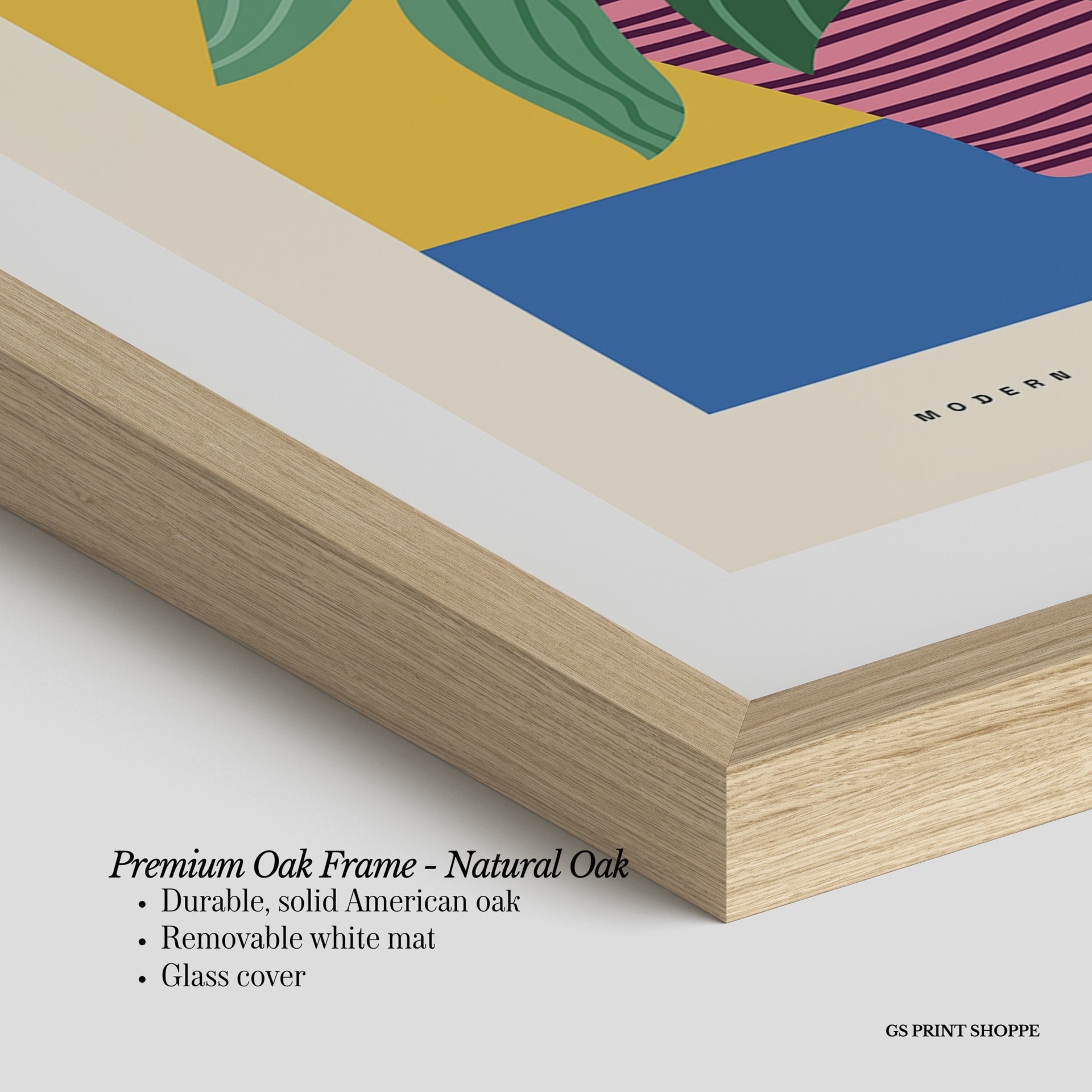 Premium Oak Frame: Our premium oak frame is crafted from solid American oak, offering a warm, natural feel with a high-end finish. We complete this elevated offering with a bright white removable mat and real glass for a versatile and polished look.