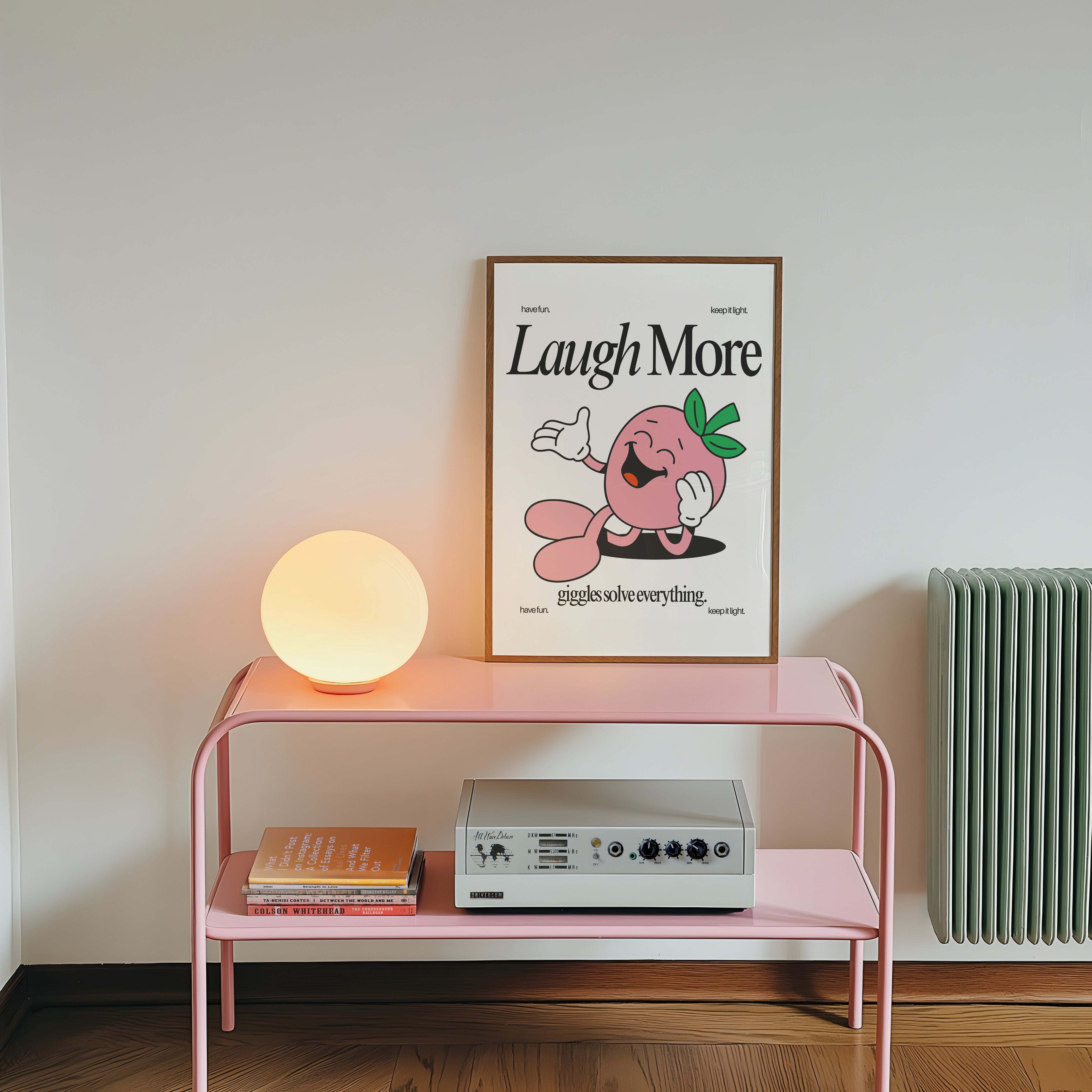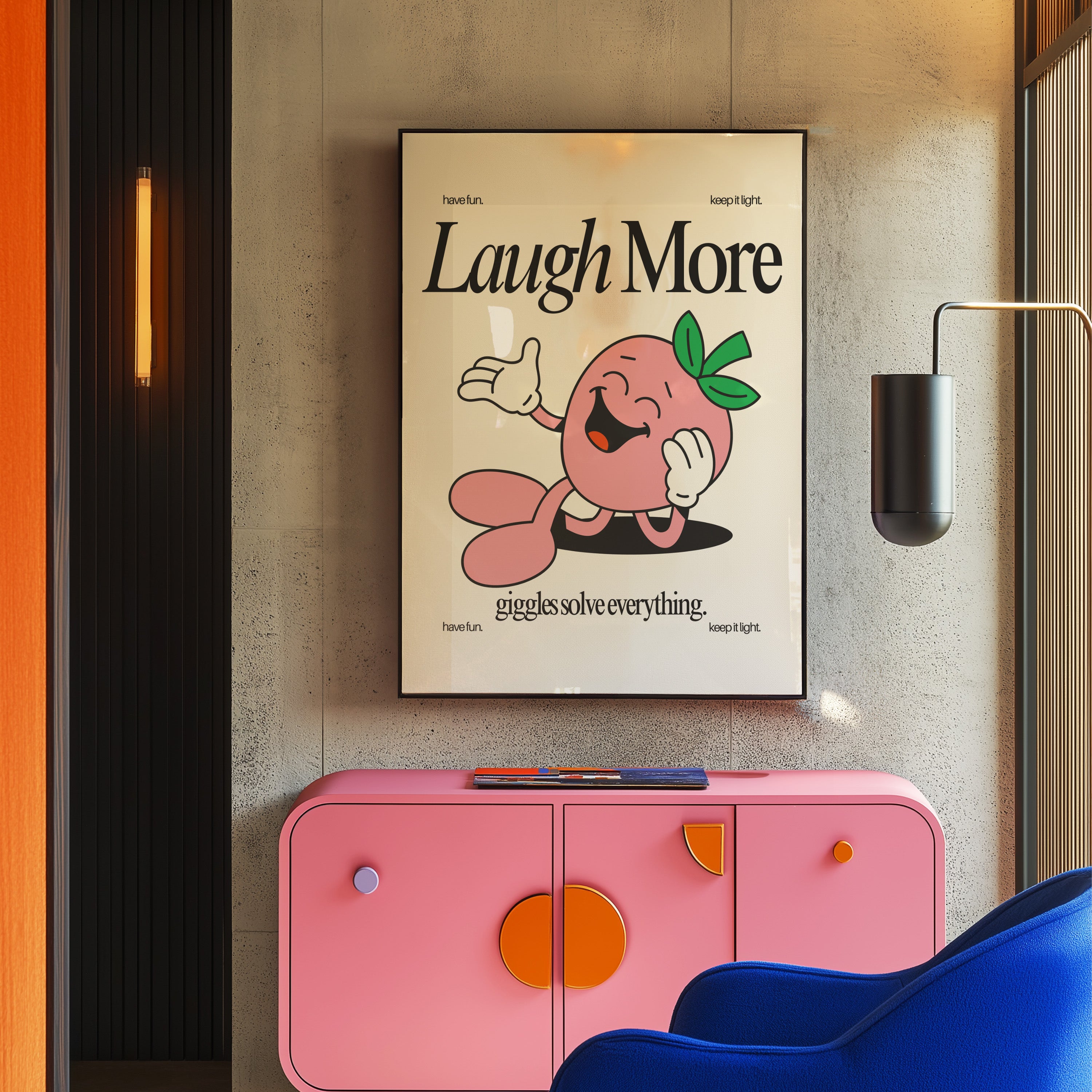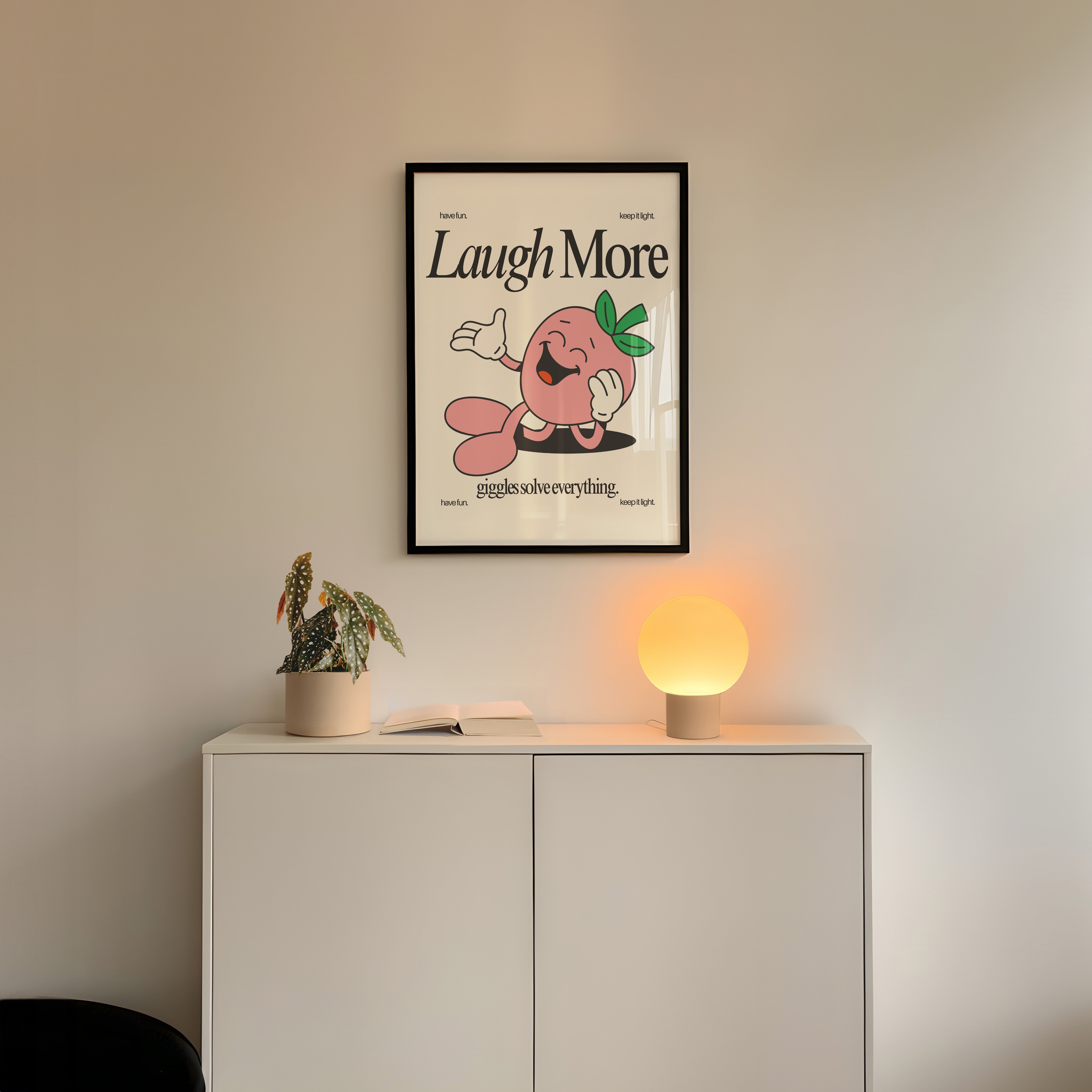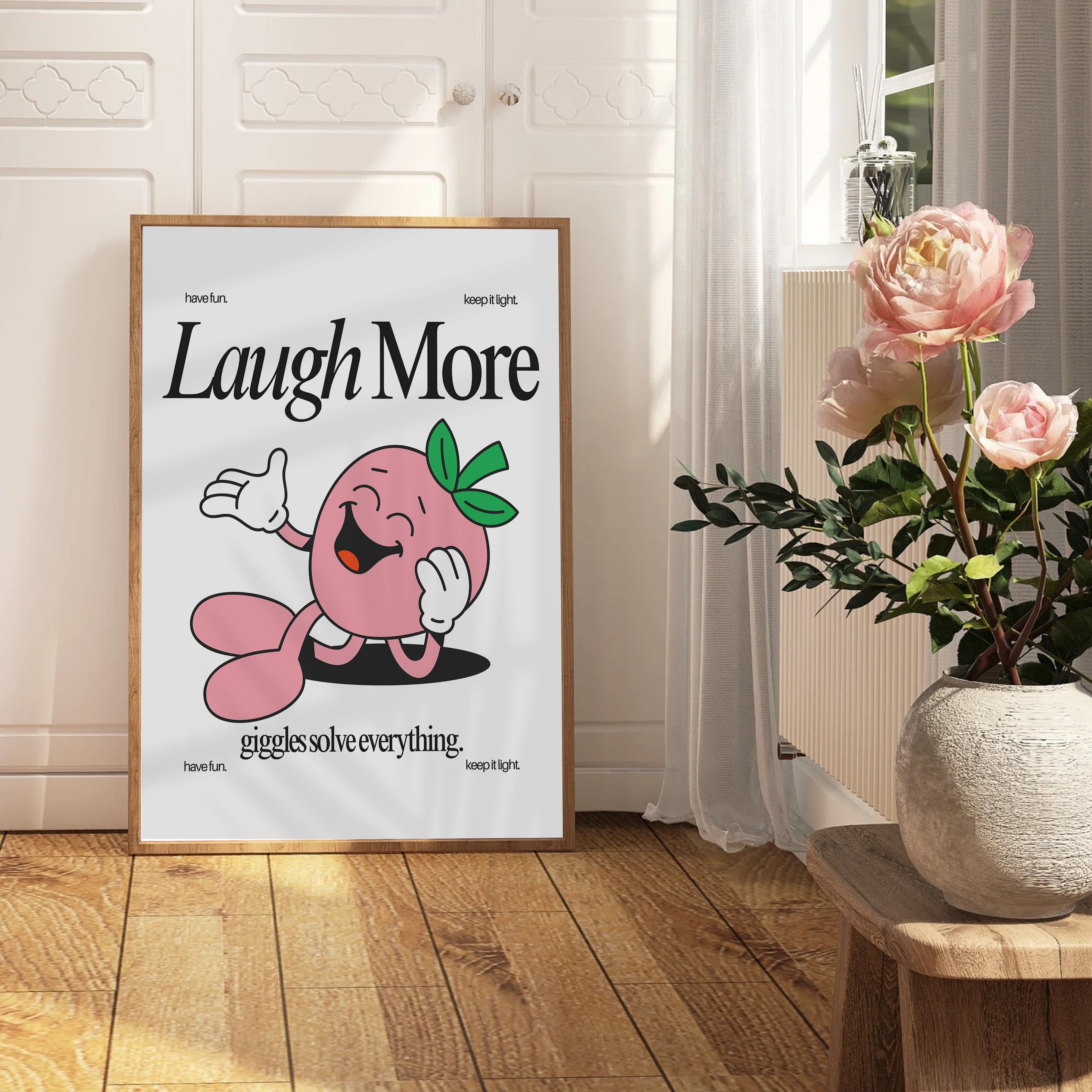 Laugh More Vertical Art Print - White