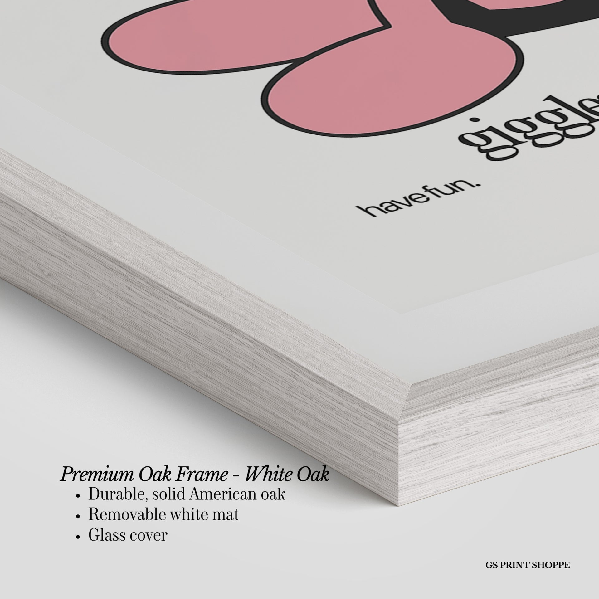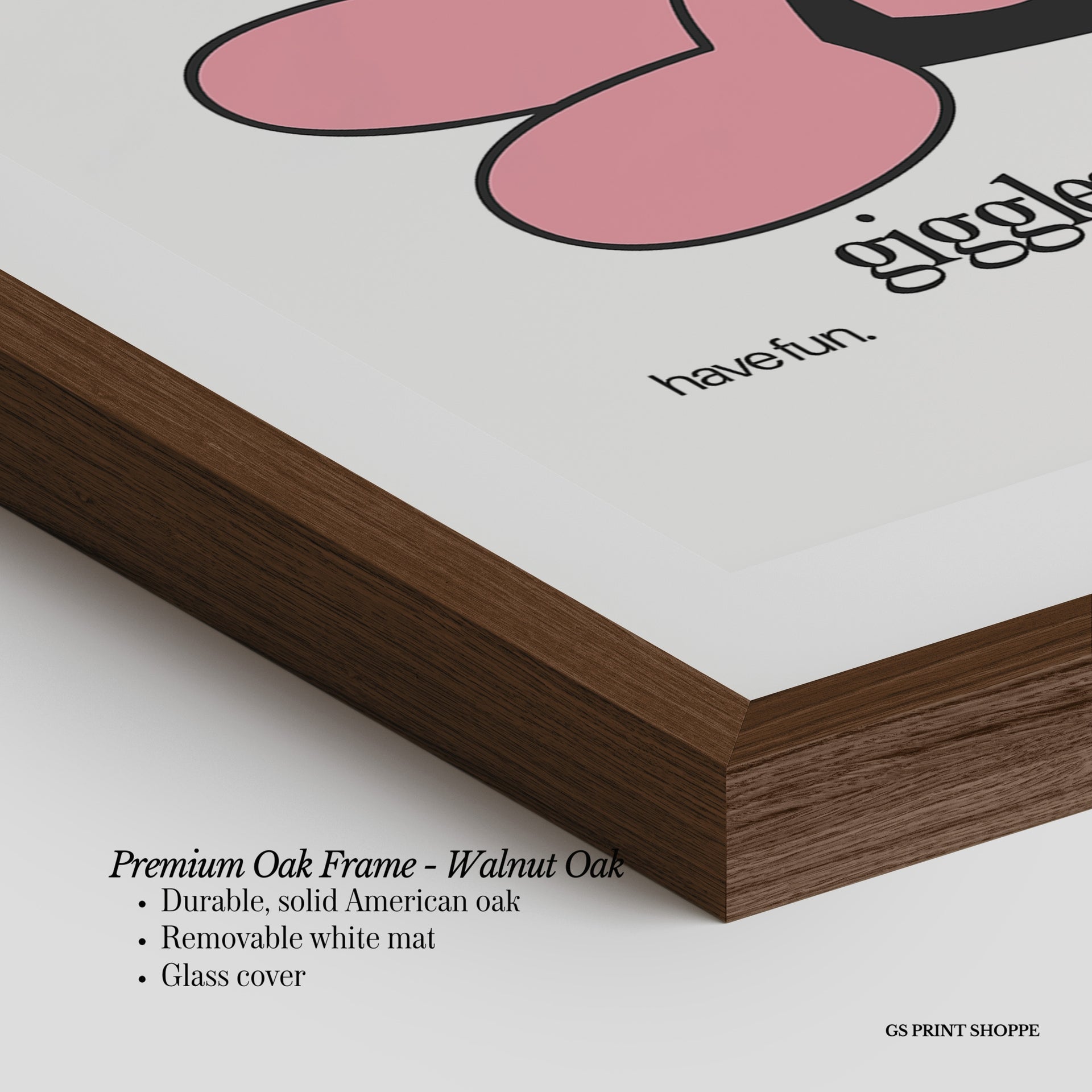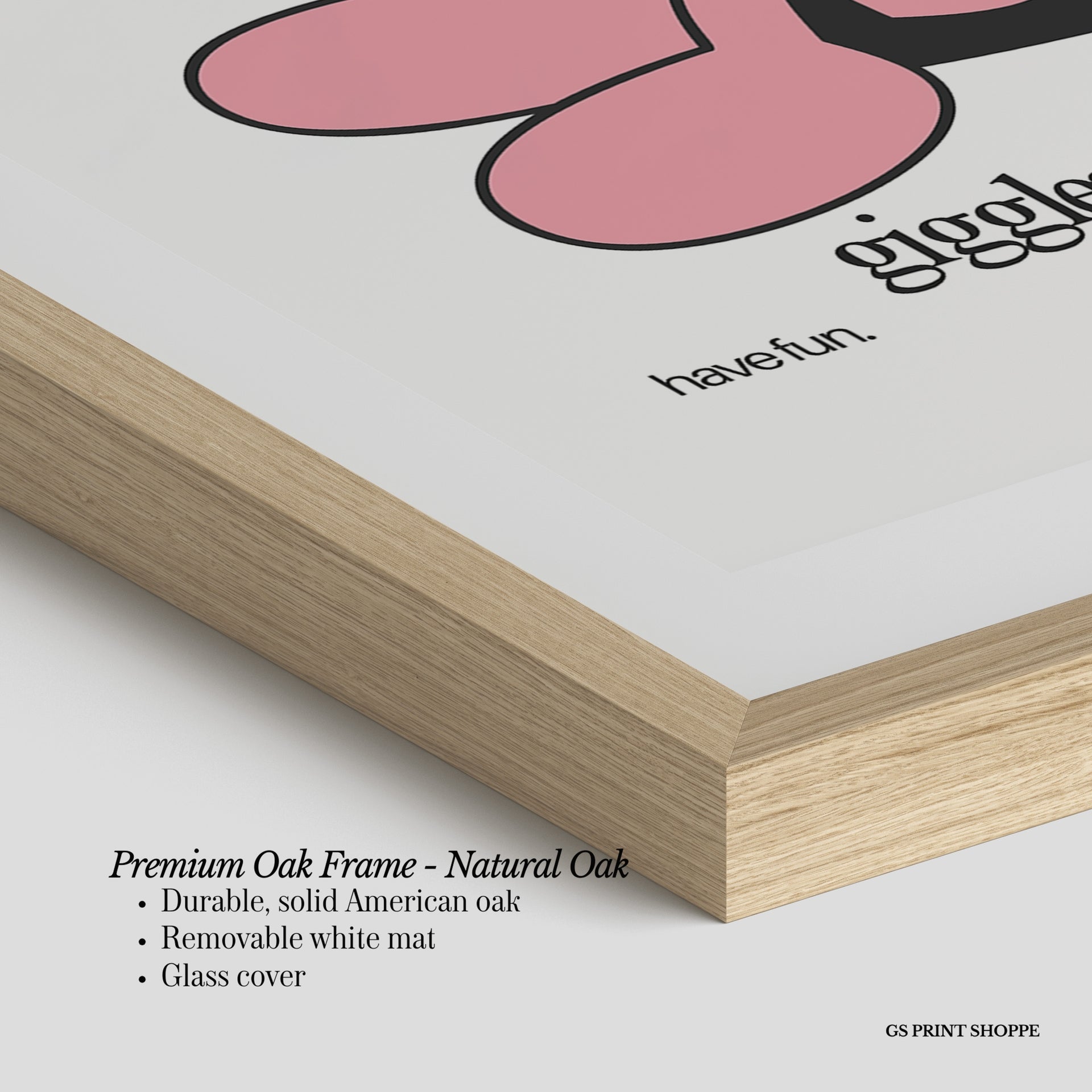 Premium Oak Frame: Our premium oak frame is crafted from solid American oak, offering a warm, natural feel with a high-end finish. We complete this elevated offering with a bright white removable mat and real glass for a versatile and polished look.