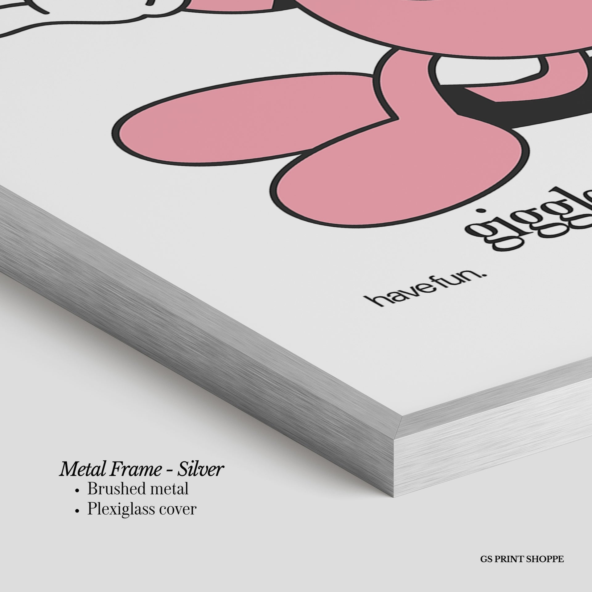 Metal Frame: Sleek and modern, our metal frame is crafted with brushed metal for a polished finish. It comes with durable plexiglass and sturdy metal hangers for horizontal or vertical display.