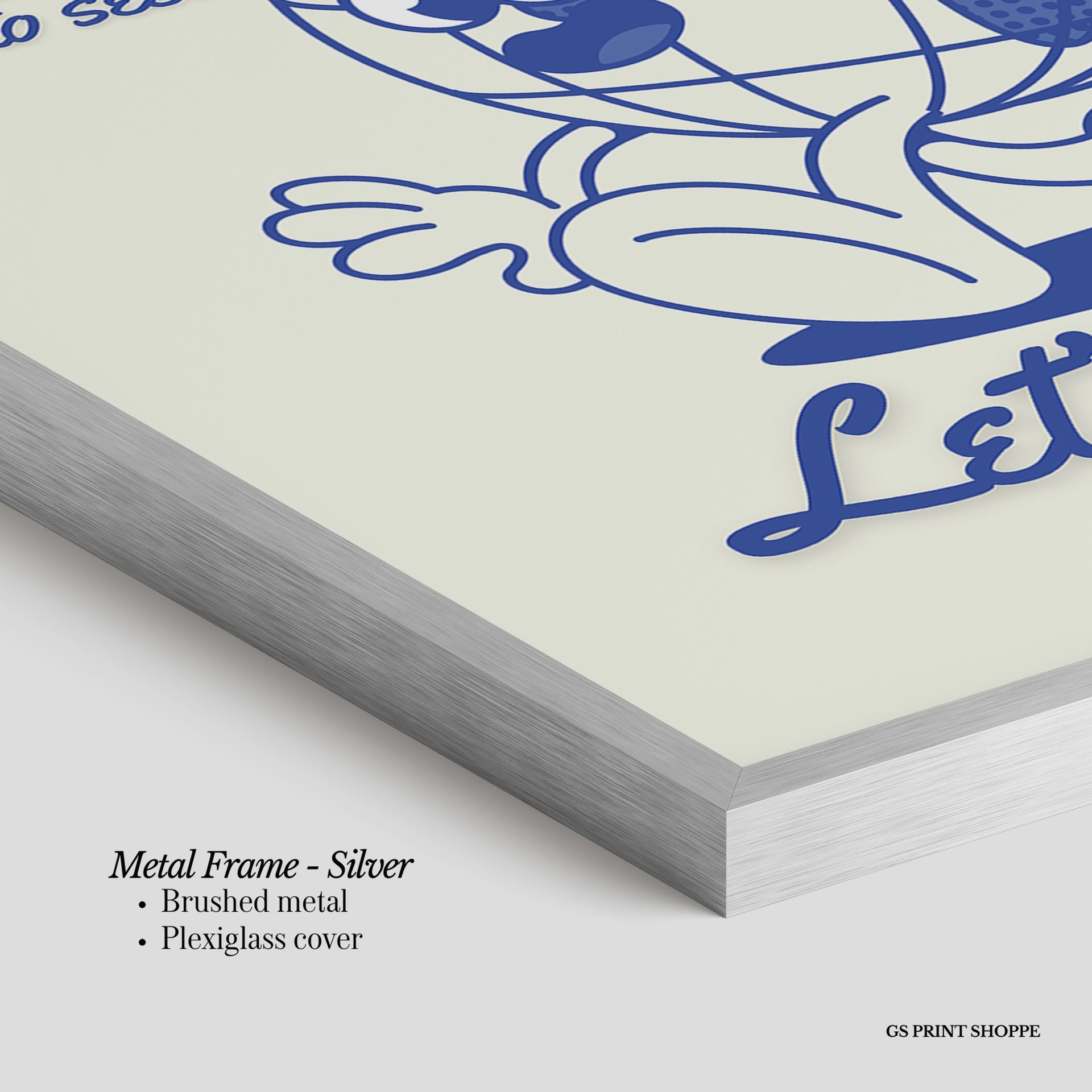 Metal Frame: Sleek and modern, our metal frame is crafted with brushed metal for a polished finish. It comes with durable plexiglass and sturdy metal hangers for horizontal or vertical display.