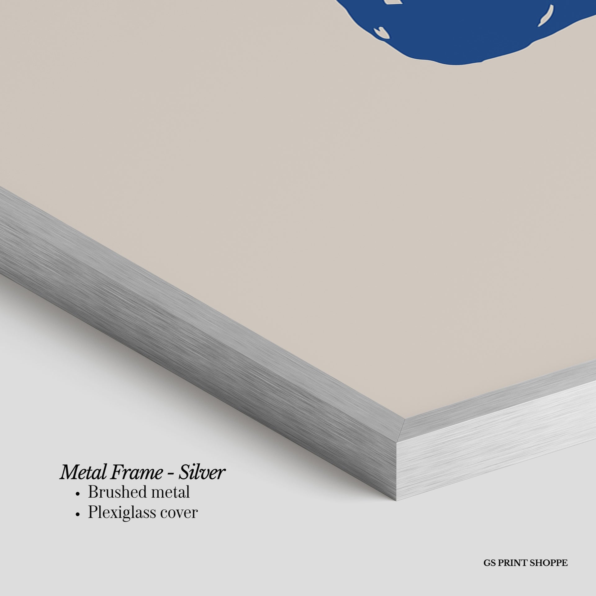 Metal Frame: Sleek and modern, our metal frame is crafted with brushed metal for a polished finish. It comes with durable plexiglass and sturdy metal hangers for horizontal or vertical display.