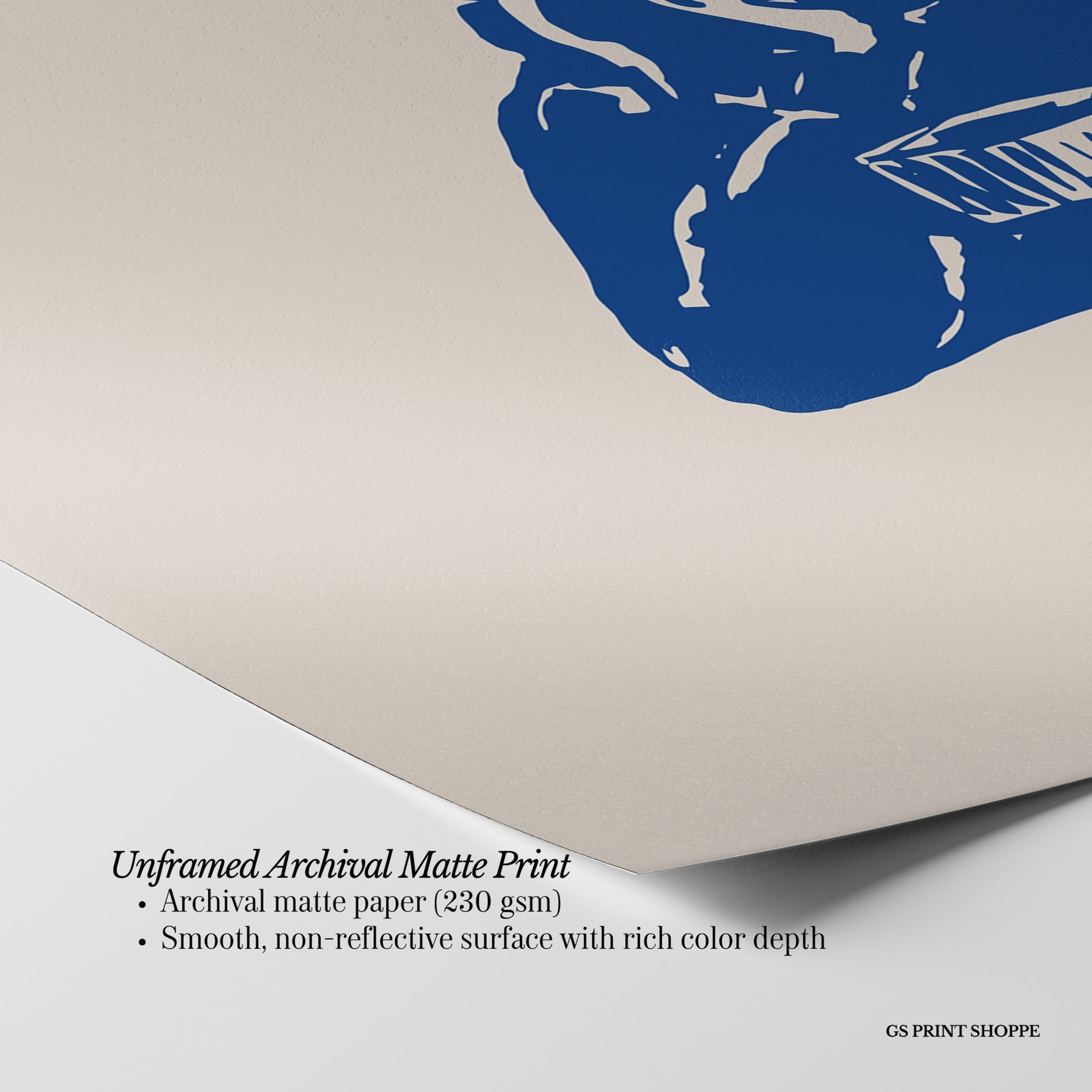 Unframed: This print is professionally printed on archival matte paper (230 gsm), a smooth, acid-free paper with a non-reflective finish. It will be carefully packaged to arrive safely at your door.