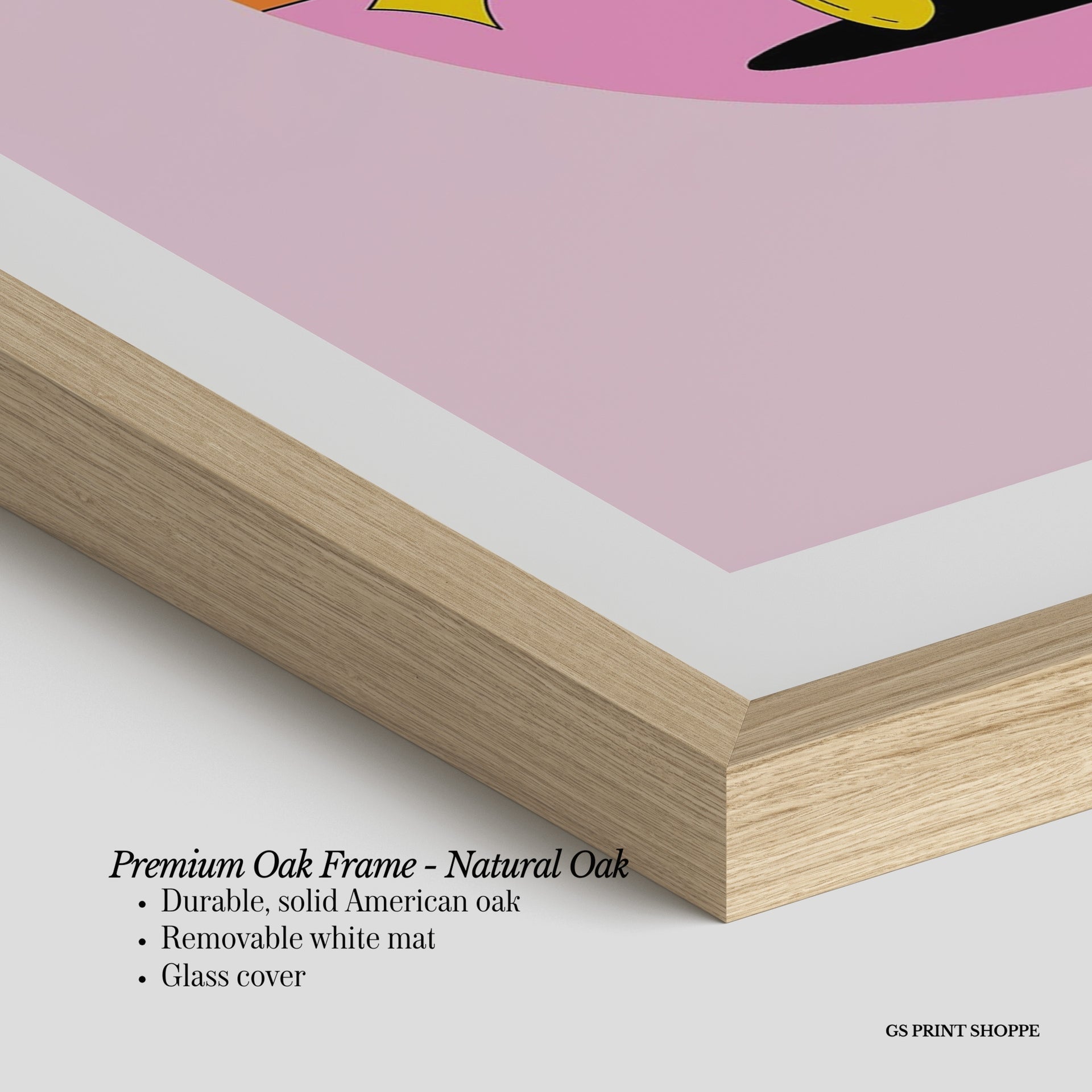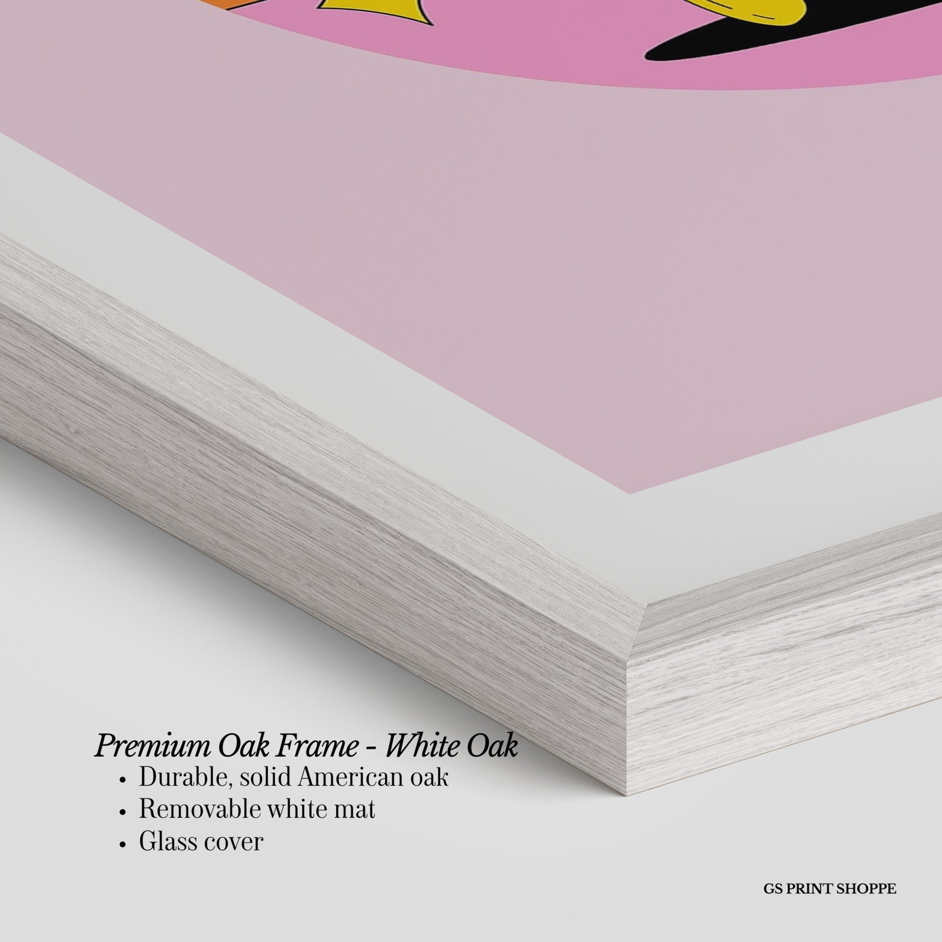 Premium Oak Frame: Our premium oak frame is crafted from solid American oak, offering a warm, natural feel with a high-end finish. We complete this elevated offering with a bright white removable mat and real glass for a versatile and polished look.