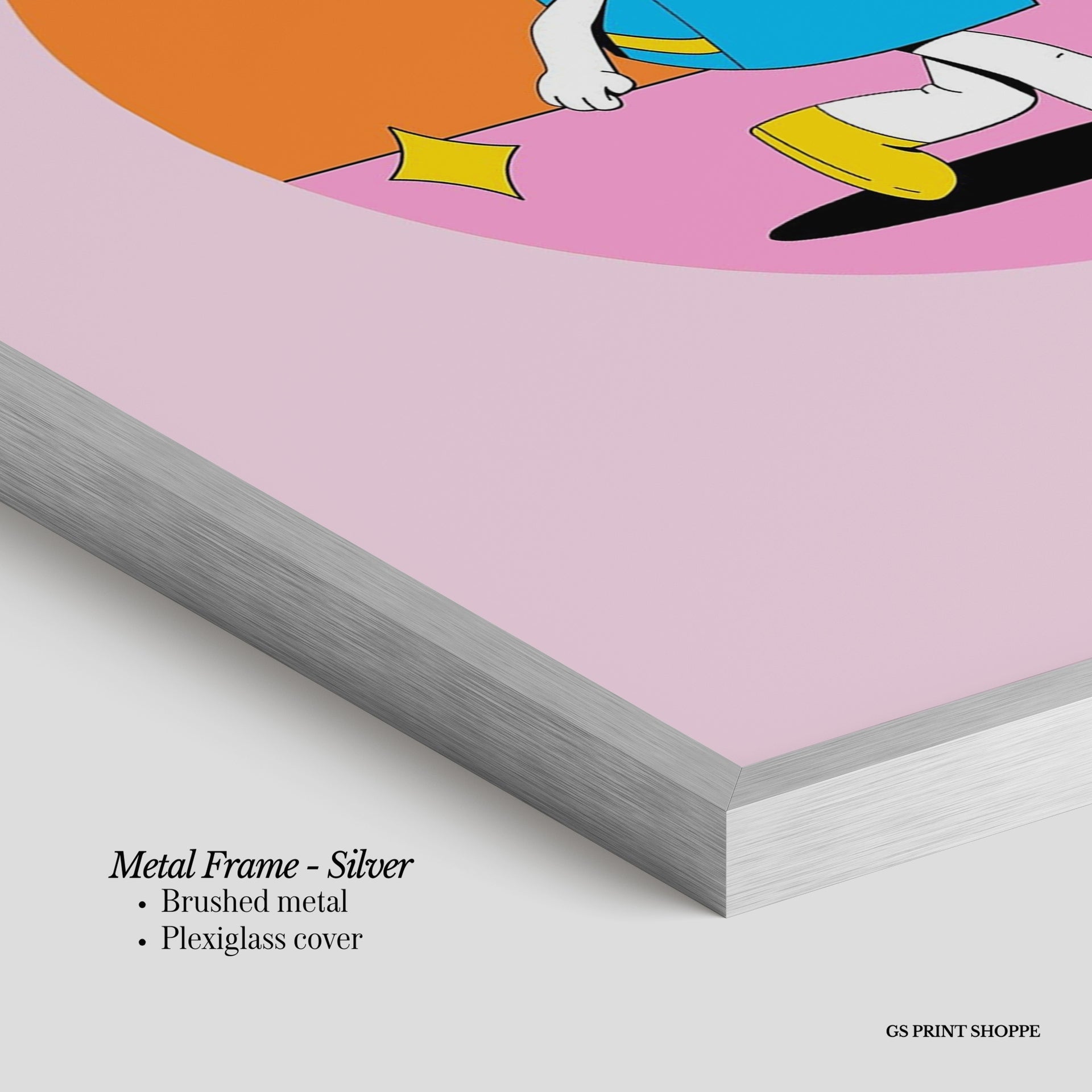 Metal Frame: Sleek and modern, our metal frame is crafted with brushed metal for a polished finish. It comes with durable plexiglass and sturdy metal hangers for horizontal or vertical display.