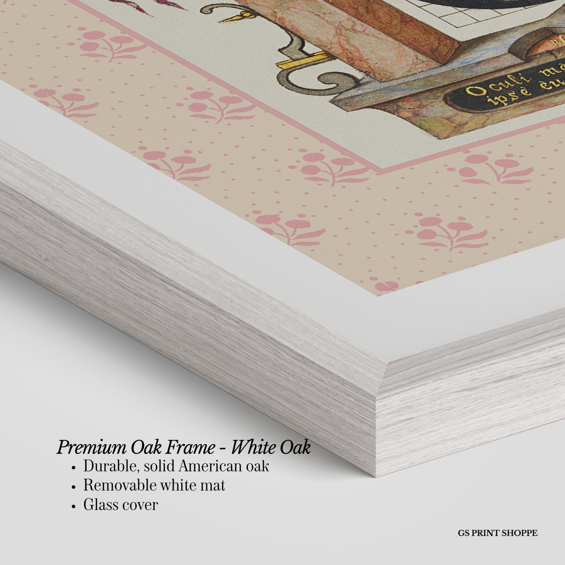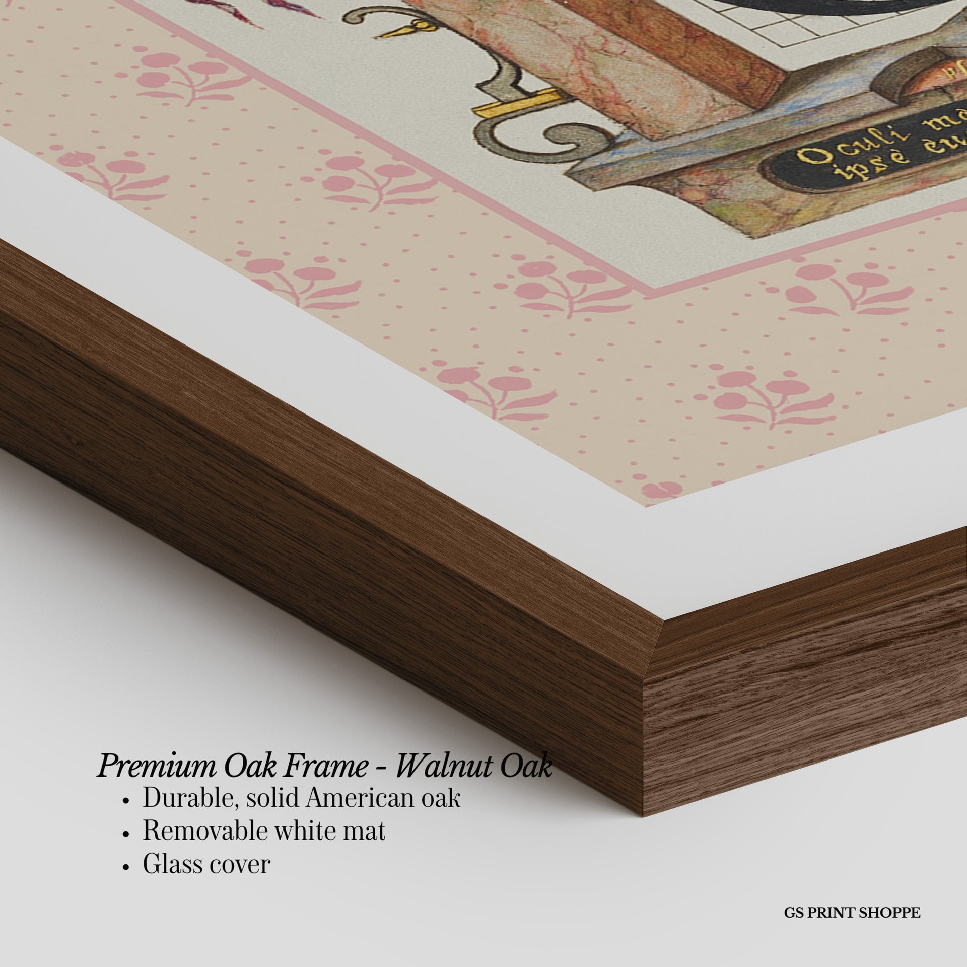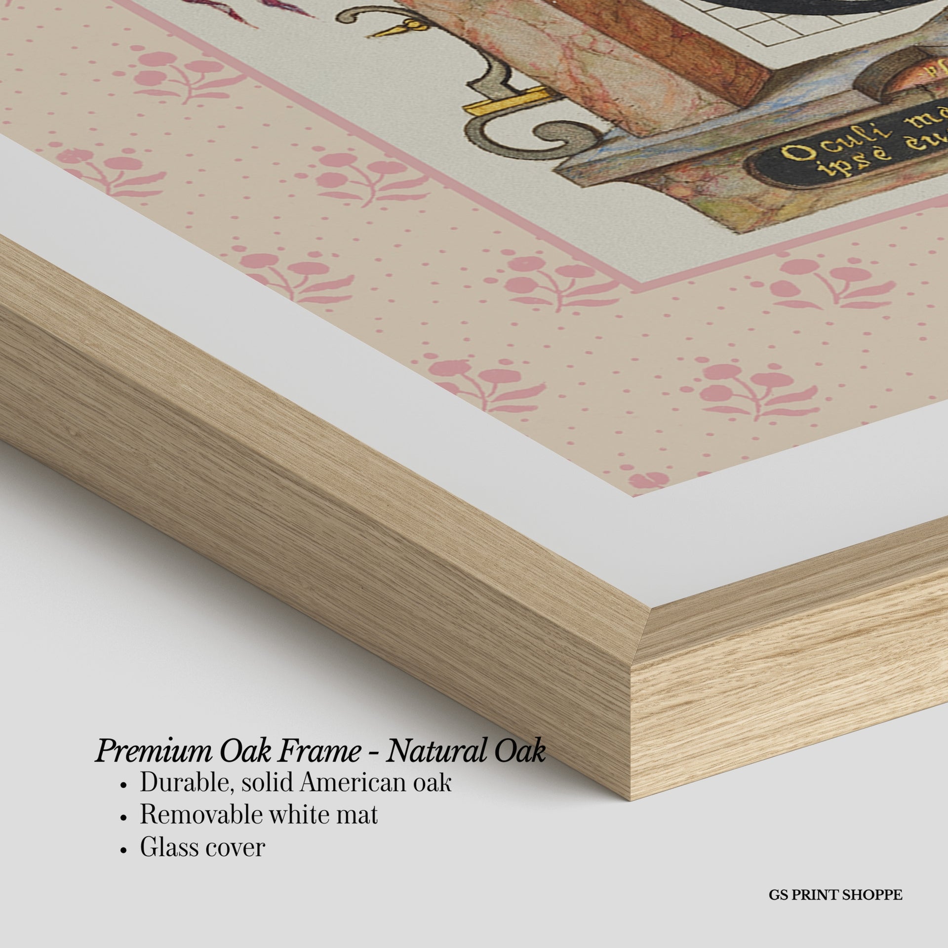 Premium Oak Frame: Our premium oak frame is crafted from solid American oak, offering a warm, natural feel with a high-end finish. We complete this elevated offering with a bright white removable mat and real glass for a versatile and polished look.