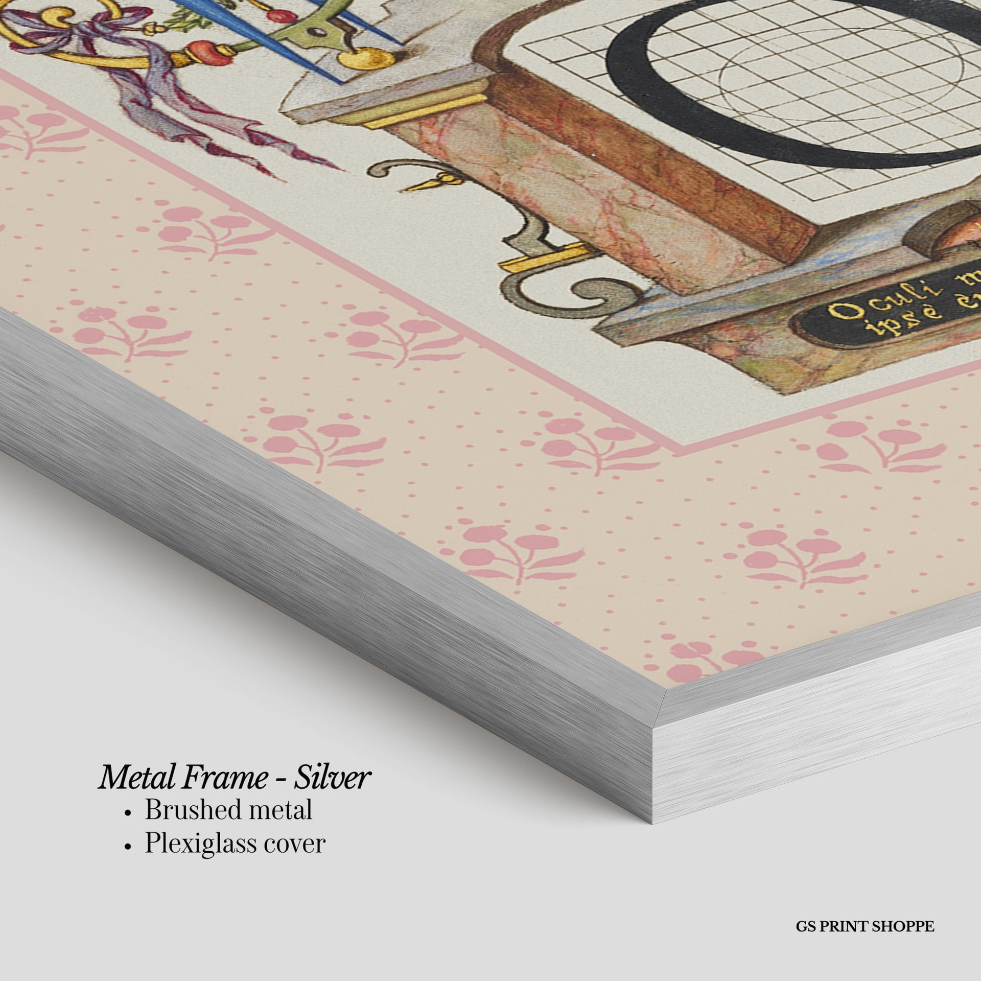 Metal Frame: Sleek and modern, our metal frame is crafted with brushed metal for a polished finish. It comes with durable plexiglass and sturdy metal hangers for horizontal or vertical display.