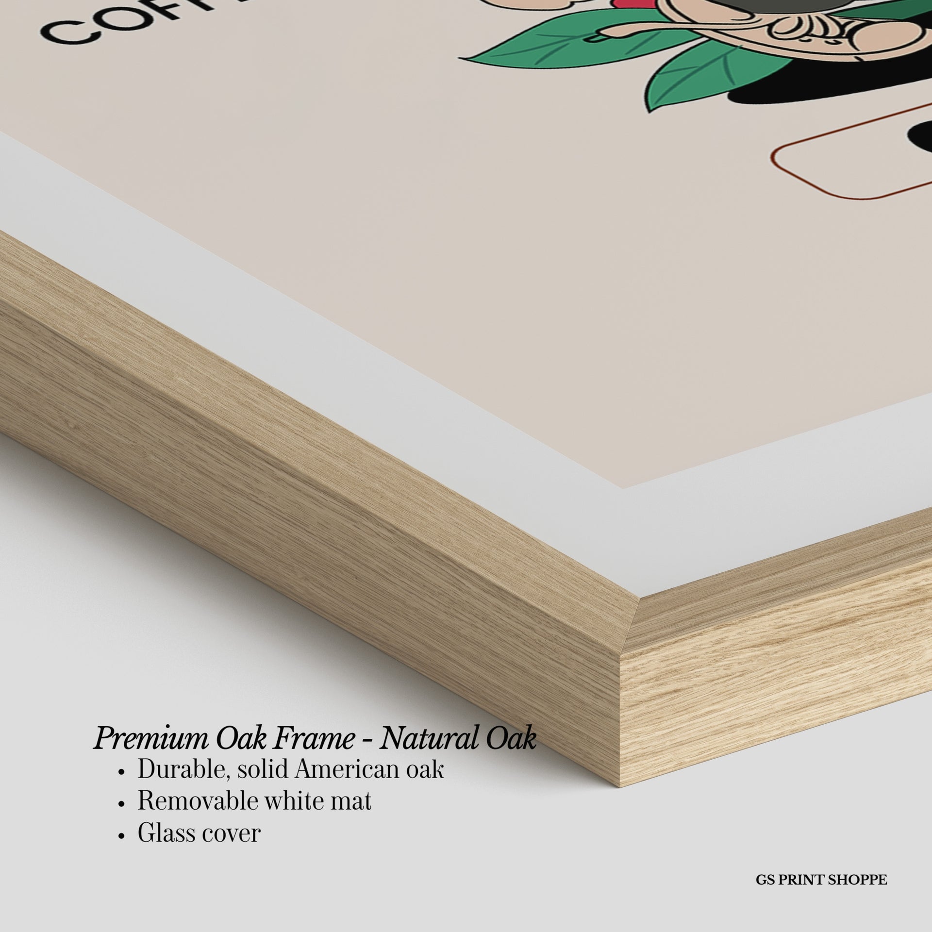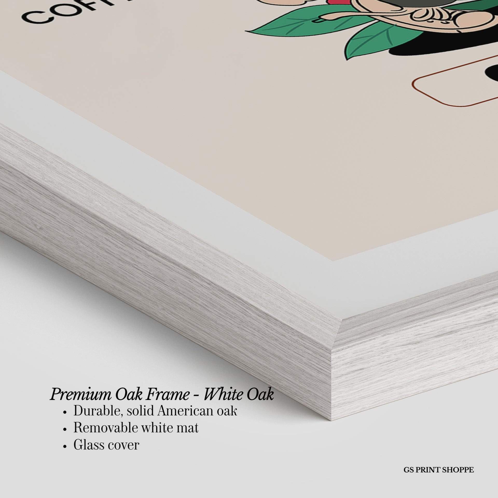 Premium Oak Frame: Our premium oak frame is crafted from solid American oak, offering a warm, natural feel with a high-end finish. We complete this elevated offering with a bright white removable mat and real glass for a versatile and polished look.