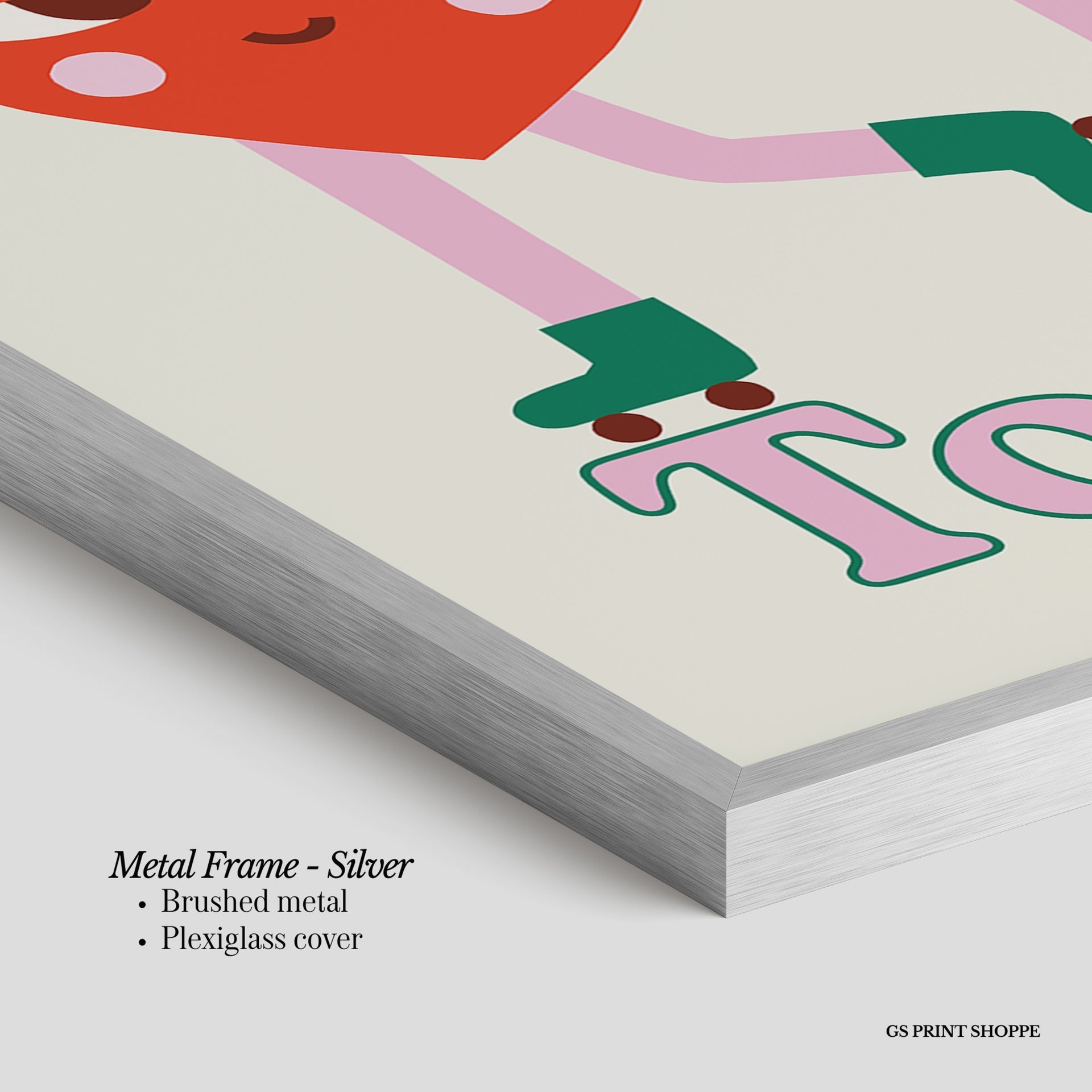 Metal Frame: Sleek and modern, our metal frame is crafted with brushed metal for a polished finish. It comes with durable plexiglass and sturdy metal hangers for horizontal or vertical display.