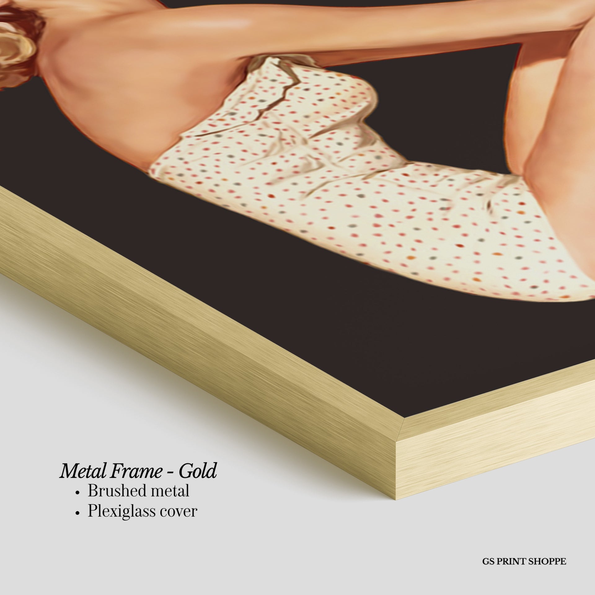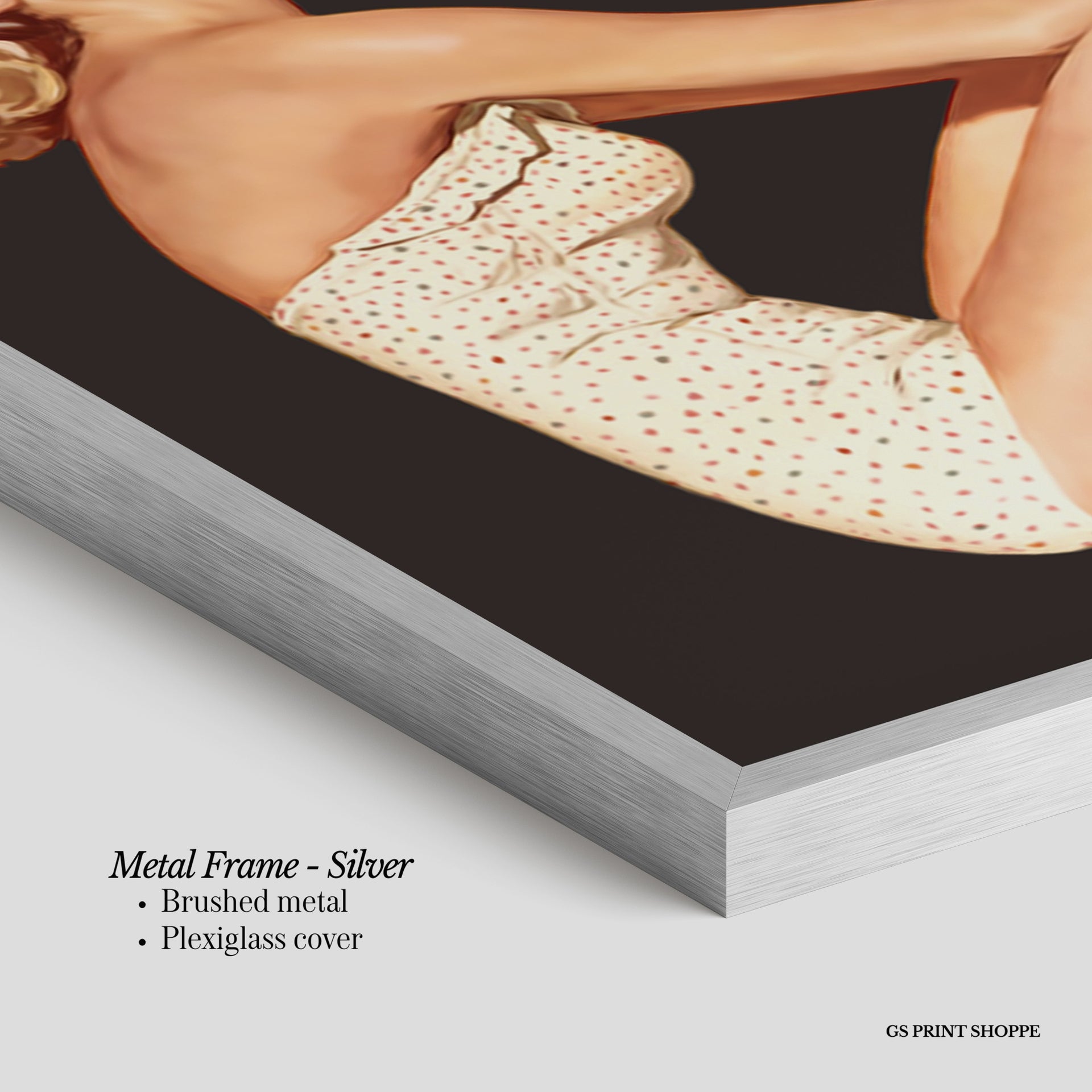 Metal Frame: Sleek and modern, our metal frame is crafted with brushed metal for a polished finish. It comes with durable plexiglass and sturdy metal hangers for horizontal or vertical display.