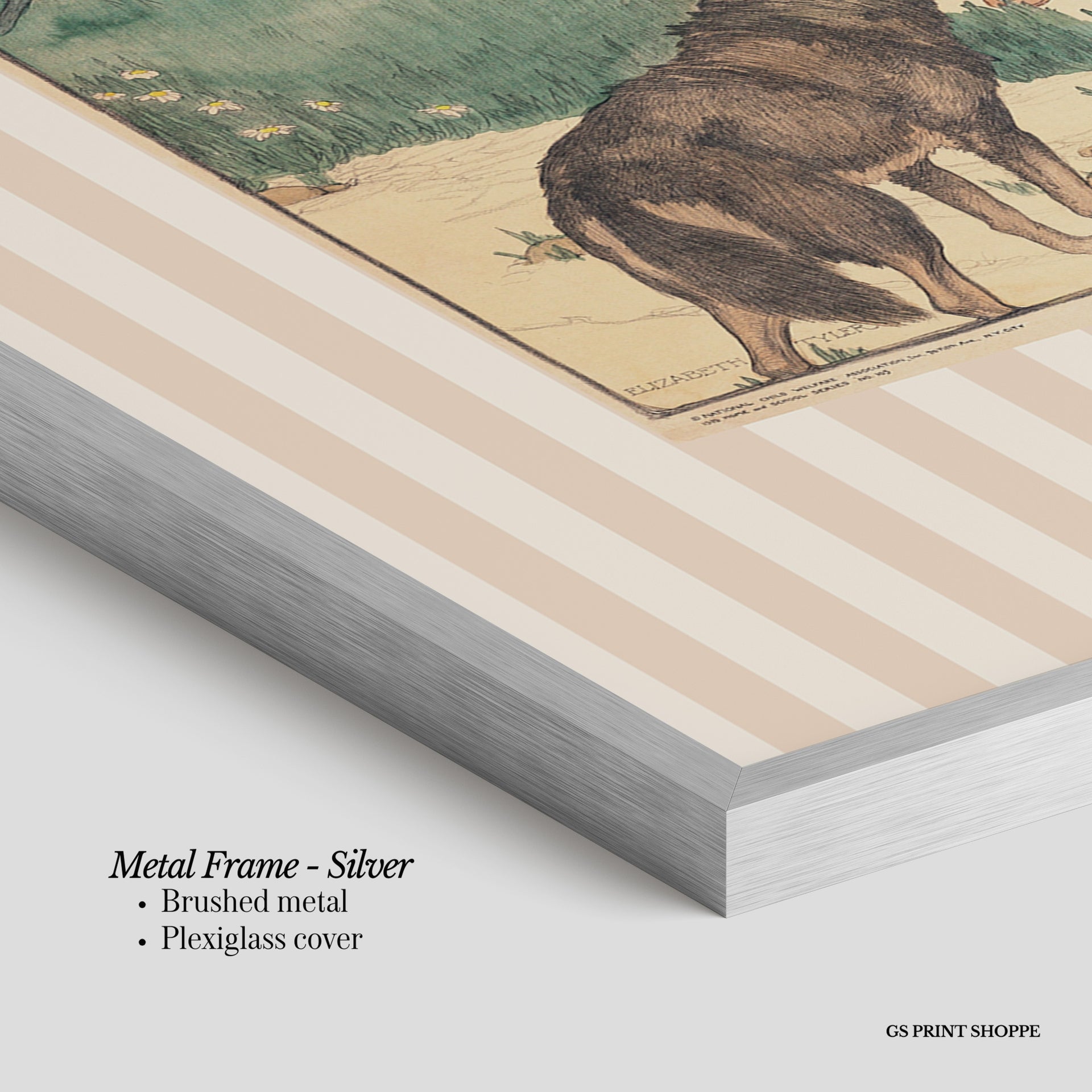 Metal Frame: Sleek and modern, our metal frame is crafted with brushed metal for a polished finish. It comes with durable plexiglass and sturdy metal hangers for horizontal or vertical display.