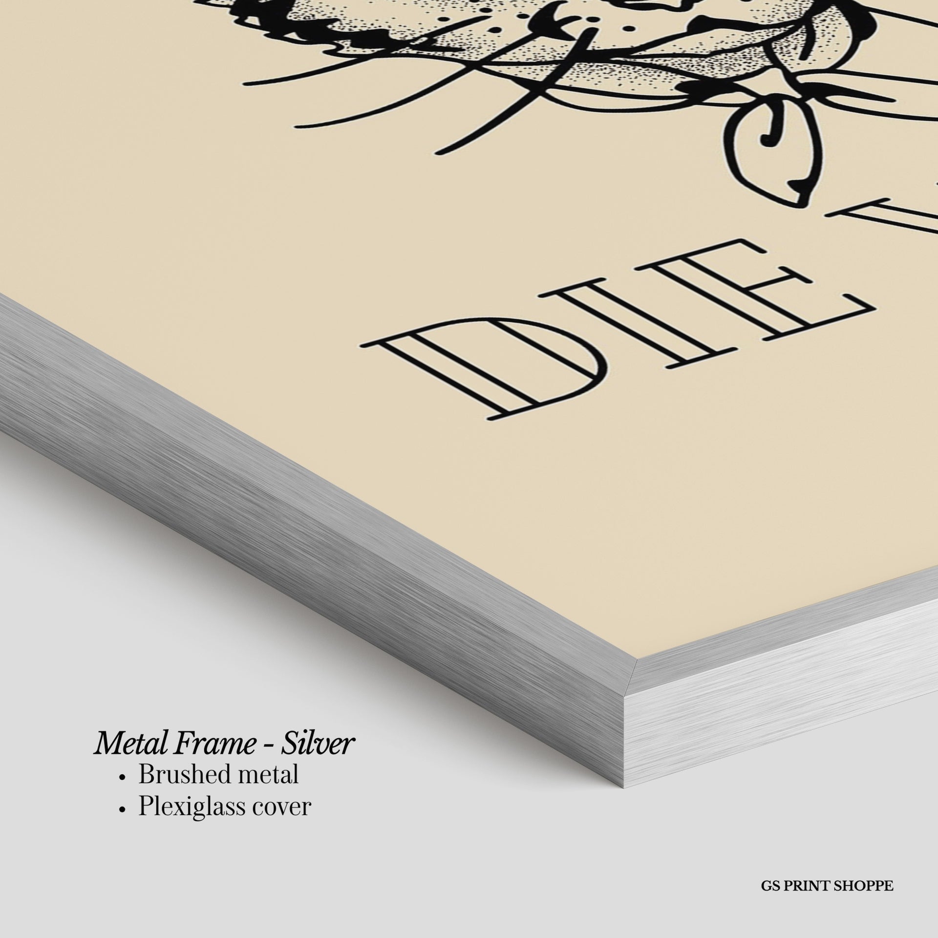Metal Frame: Sleek and modern, our metal frame is crafted with brushed metal for a polished finish. It comes with durable plexiglass and sturdy metal hangers for horizontal or vertical display.