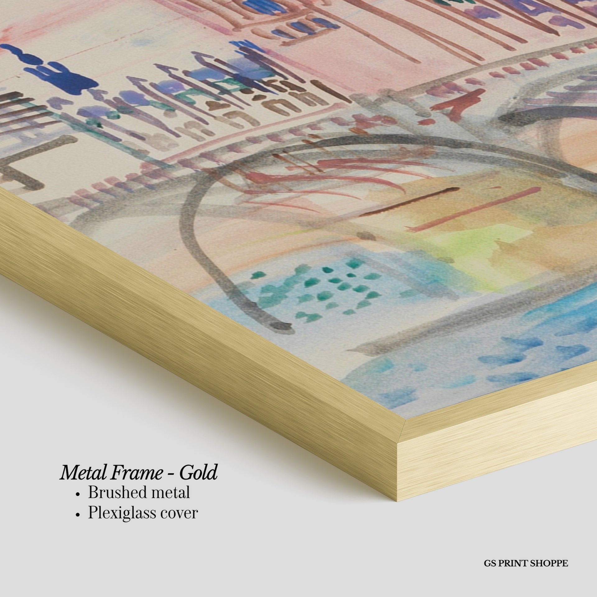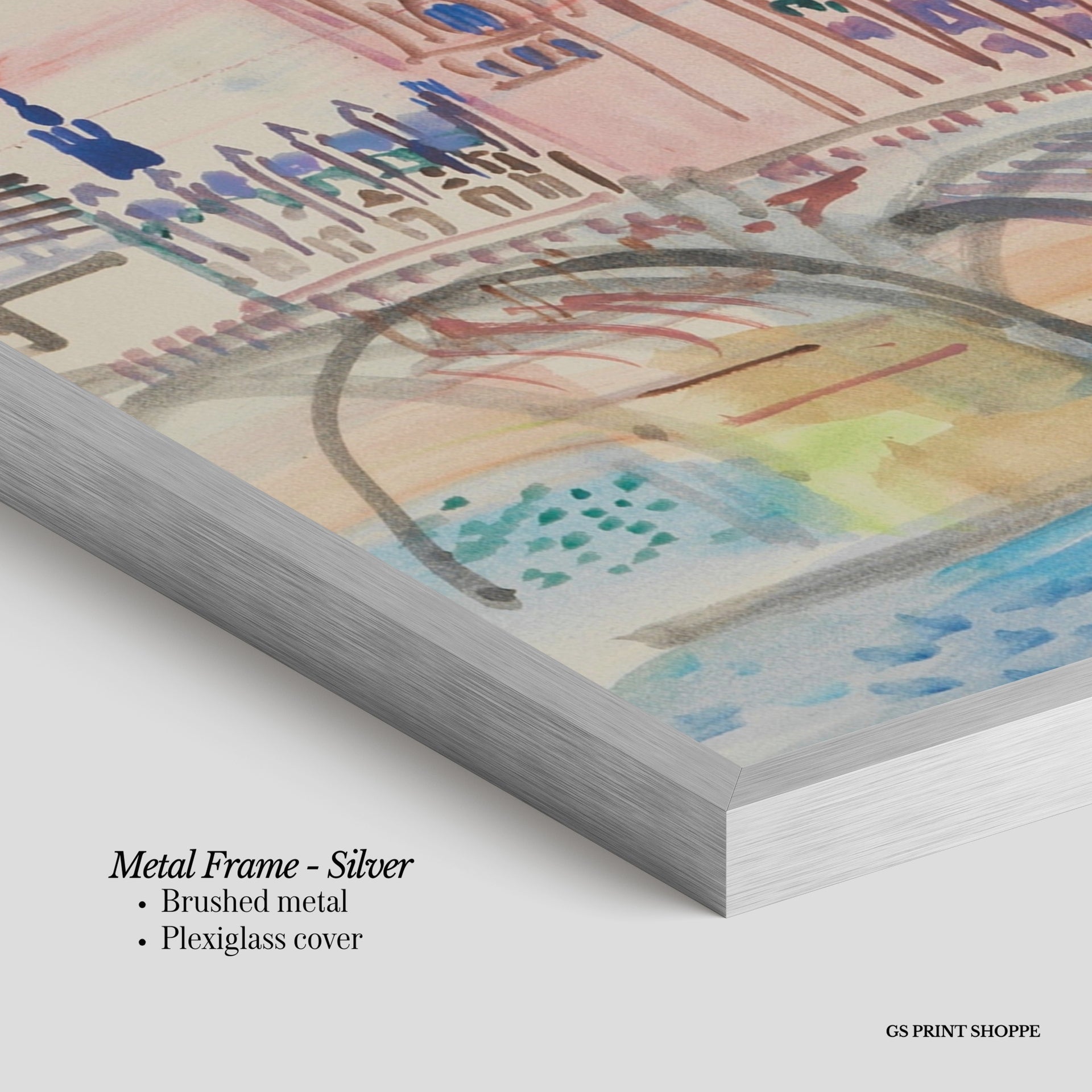 Metal Frame: Sleek and modern, our metal frame is crafted with brushed metal for a polished finish. It comes with durable plexiglass and sturdy metal hangers for horizontal or vertical display.