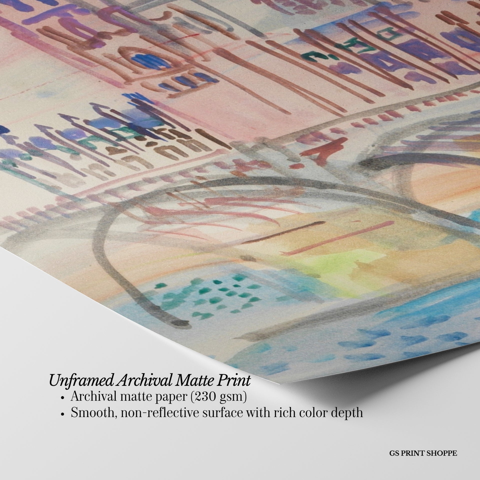 Unframed: This print is professionally printed on archival matte paper (230 gsm), a smooth, acid-free paper with a non-reflective finish. It will be carefully packaged to arrive safely at your door.