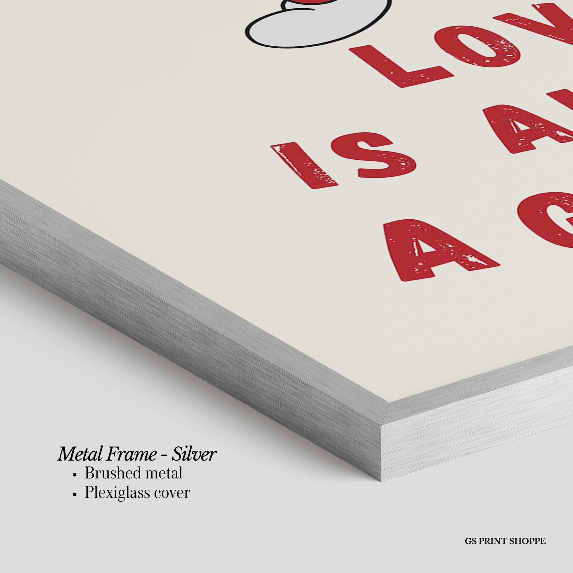 Metal Frame: Sleek and modern, our metal frame is crafted with brushed metal for a polished finish. It comes with durable plexiglass and sturdy metal hangers for horizontal or vertical display.