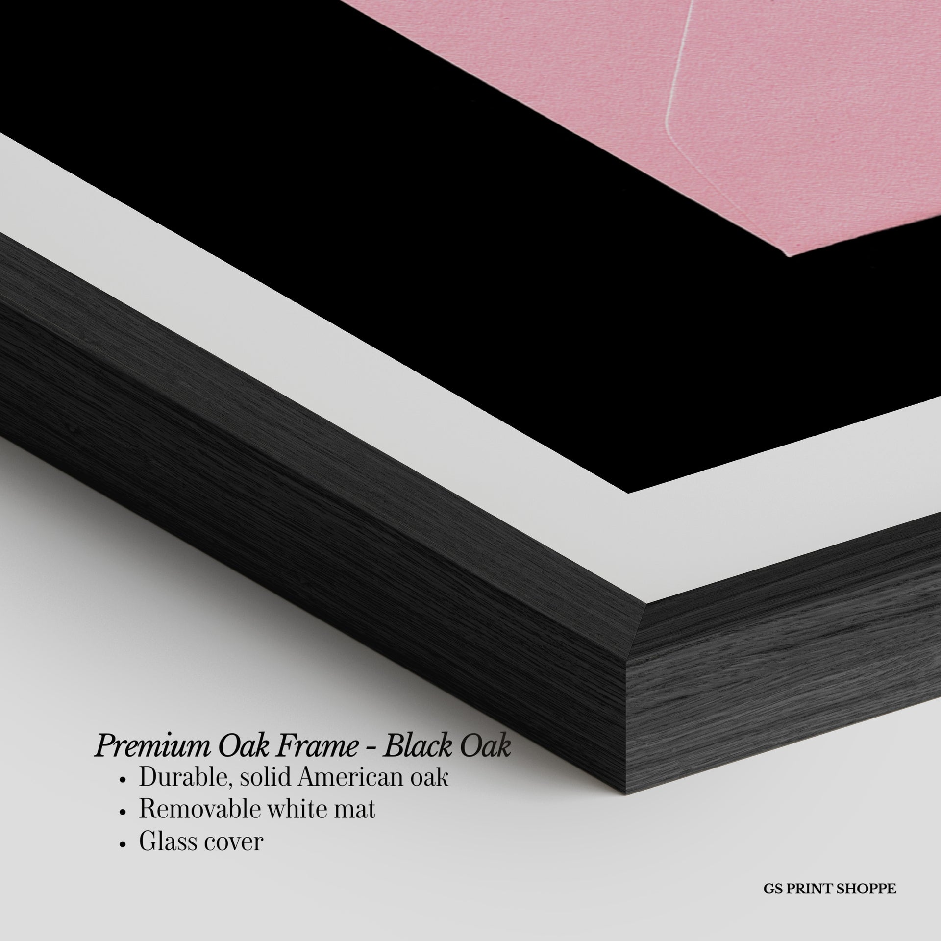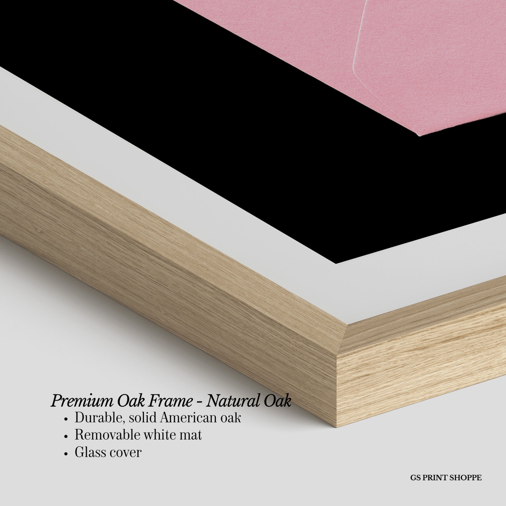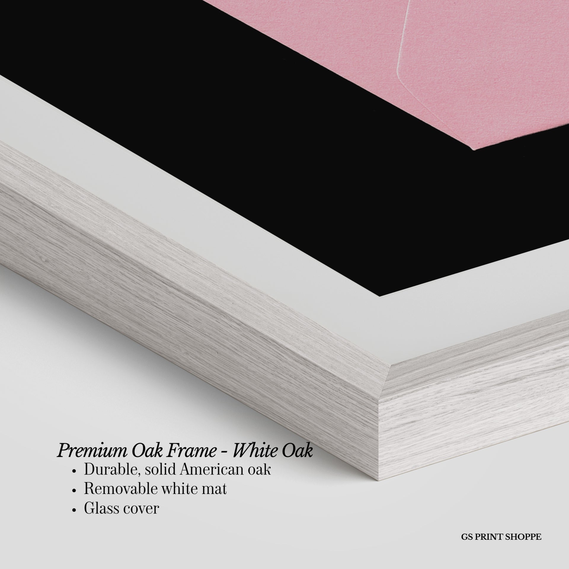 Premium Oak Frame: Our premium oak frame is crafted from solid American oak, offering a warm, natural feel with a high-end finish. We complete this elevated offering with a bright white removable mat and real glass for a versatile and polished look.