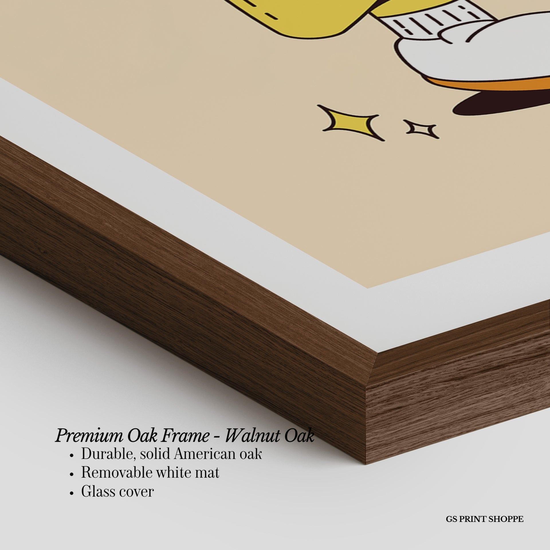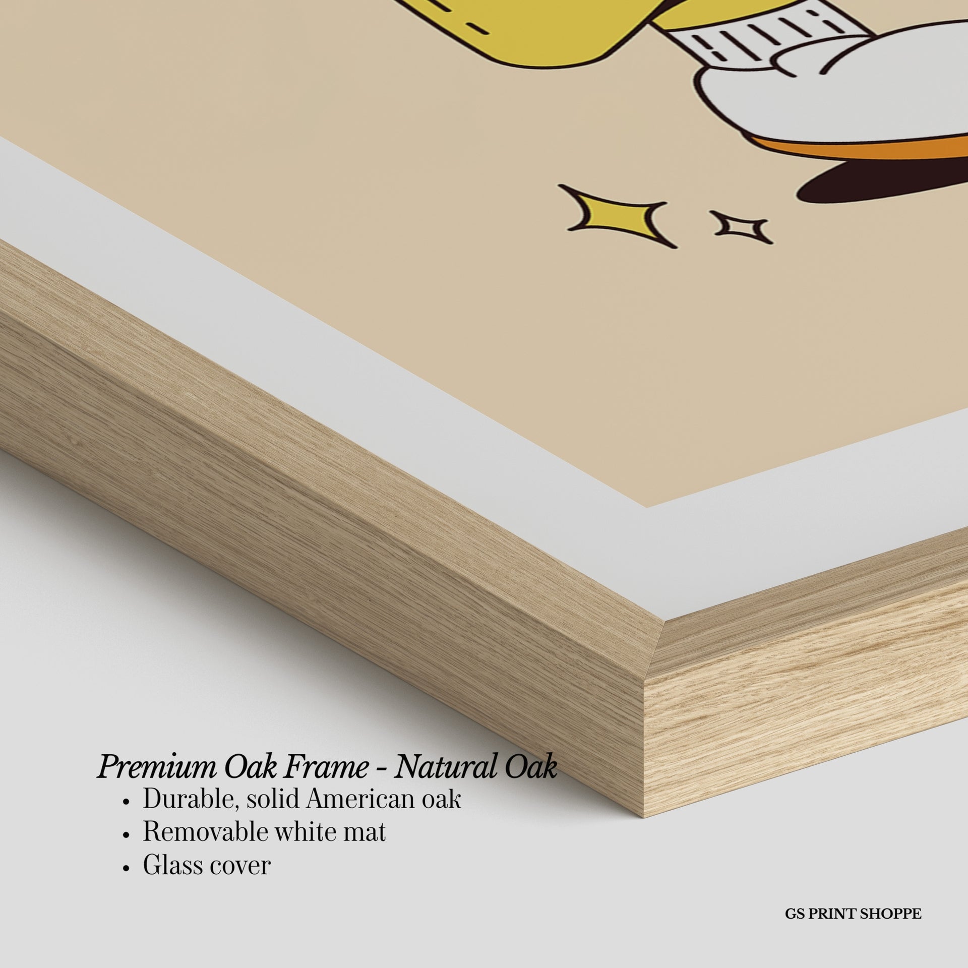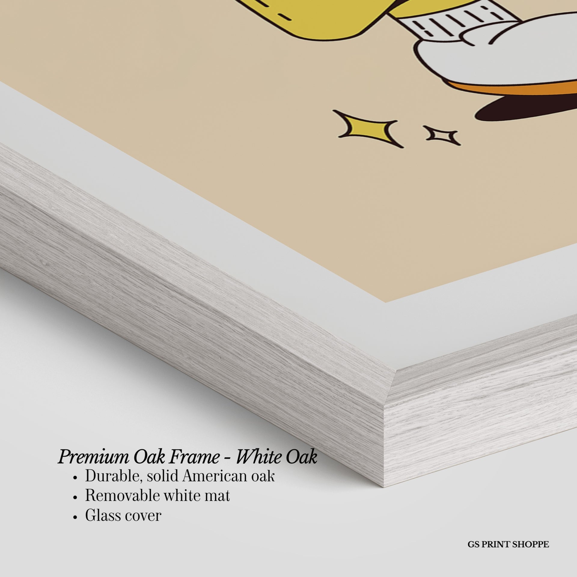 Premium Oak Frame: Our premium oak frame is crafted from solid American oak, offering a warm, natural feel with a high-end finish. We complete this elevated offering with a bright white removable mat and real glass for a versatile and polished look.
