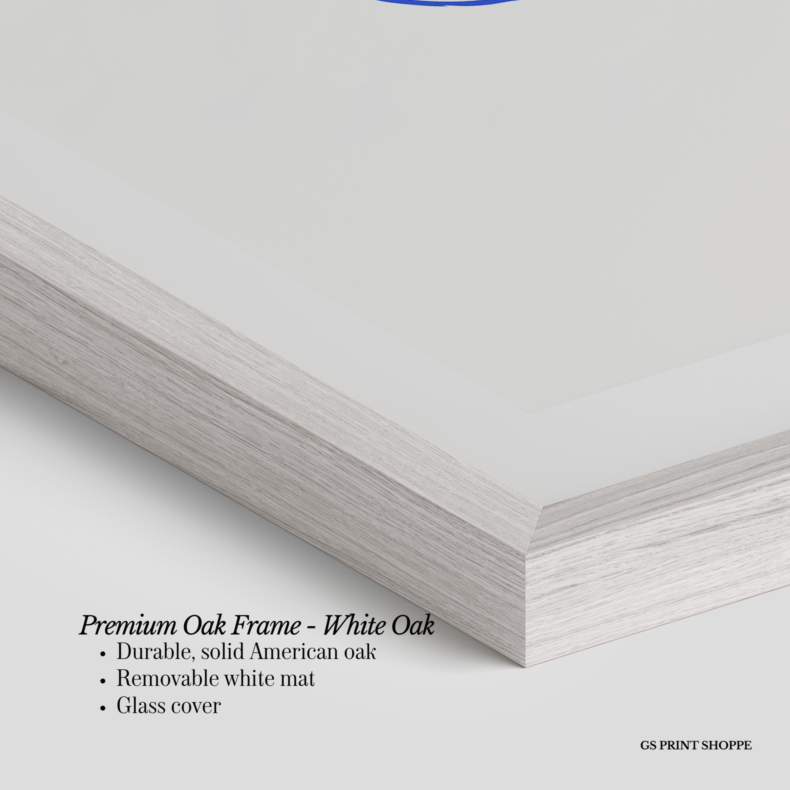 Premium Oak Frame: Our premium oak frame is crafted from solid American oak, offering a warm, natural feel with a high-end finish. We complete this elevated offering with a bright white removable mat and real glass for a versatile and polished look.