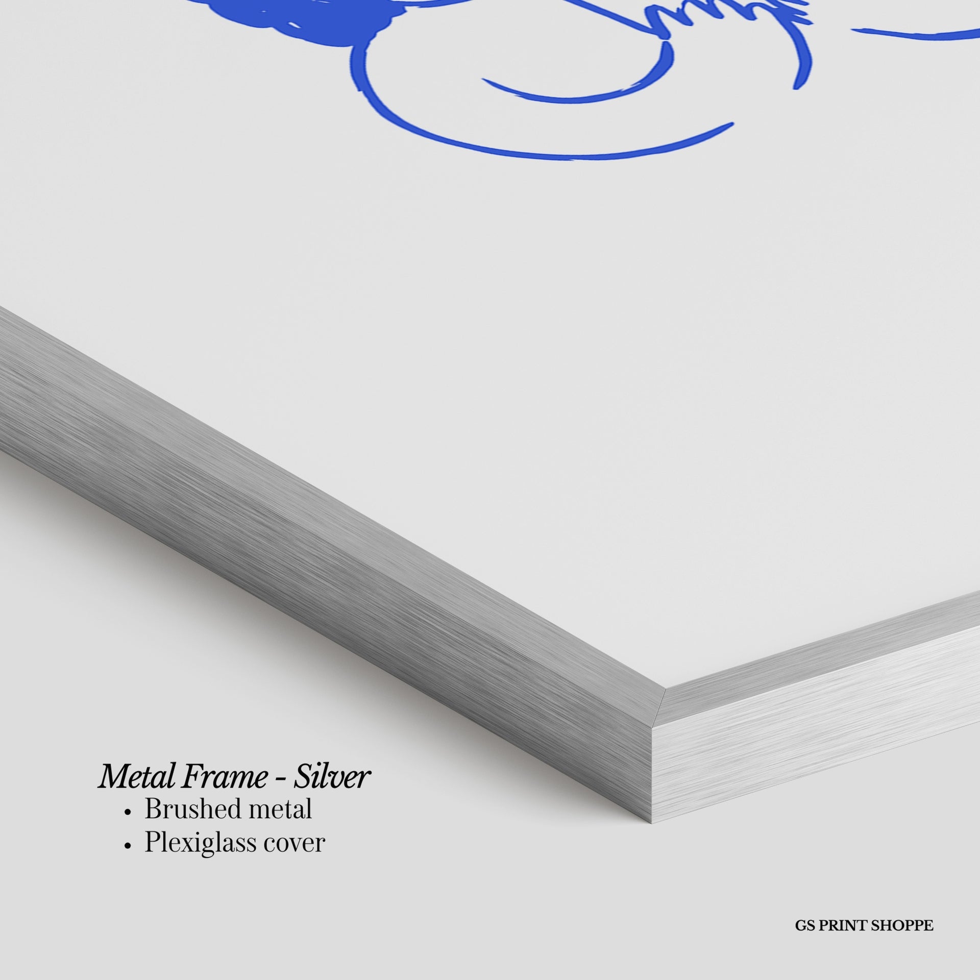 Metal Frame: Sleek and modern, our metal frame is crafted with brushed metal for a polished finish. It comes with durable plexiglass and sturdy metal hangers for horizontal or vertical display.