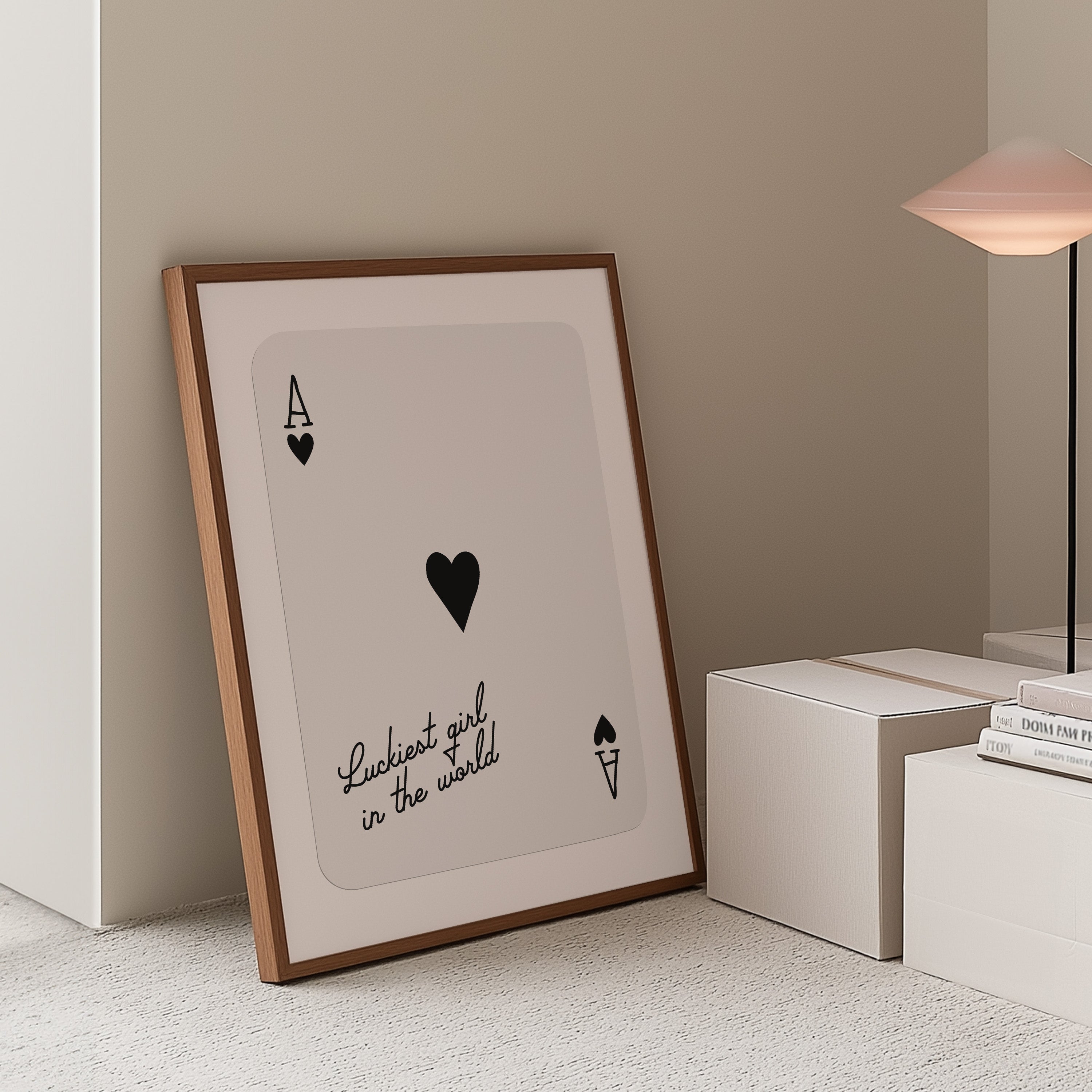 Luckiest Girl In The World Ace Playing Card Vertical Art Print - Black