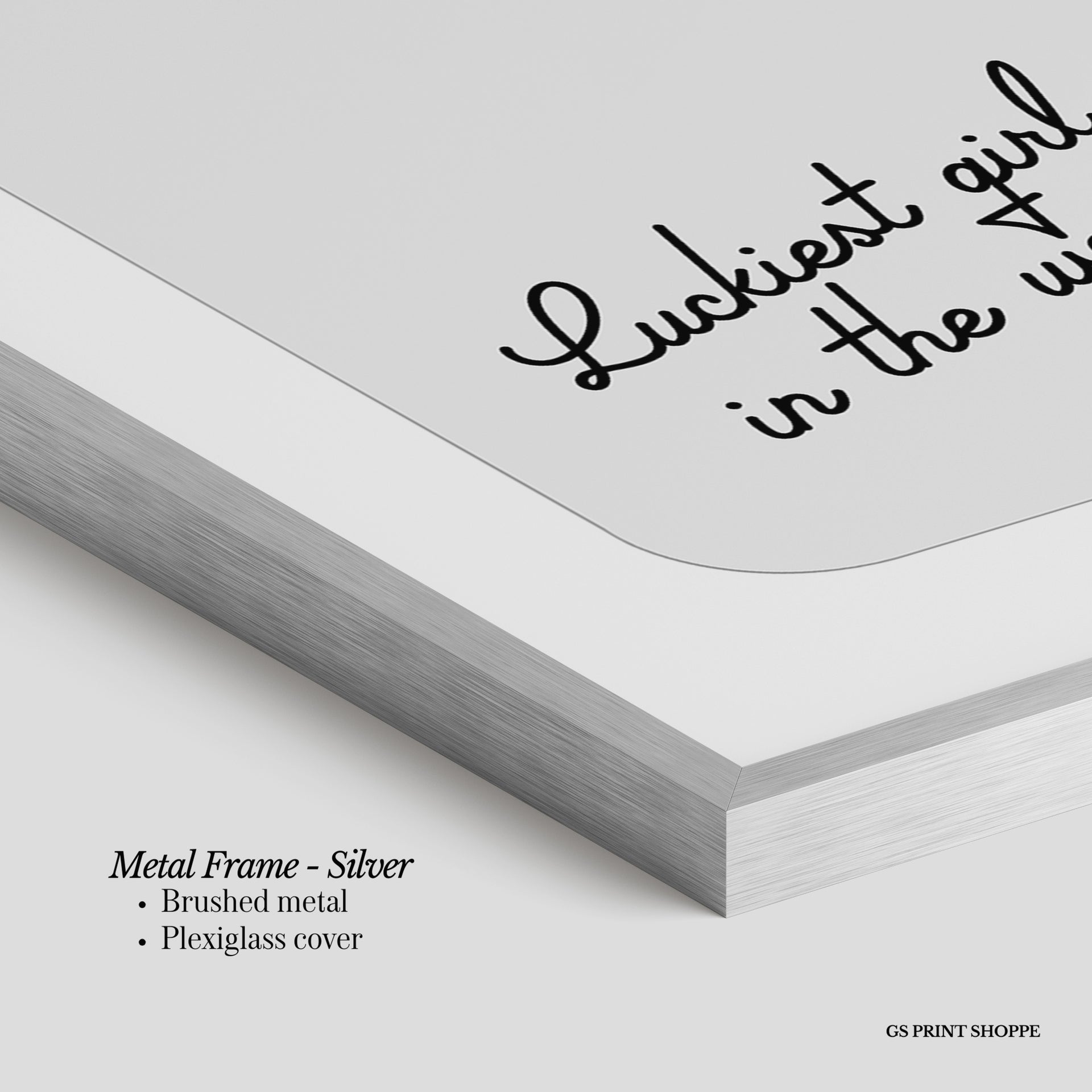 Metal Frame: Sleek and modern, our metal frame is crafted with brushed metal for a polished finish. It comes with durable plexiglass and sturdy metal hangers for horizontal or vertical display.