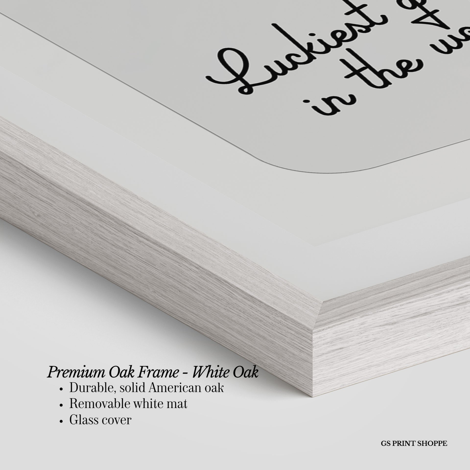 Premium Oak Frame: Our premium oak frame is crafted from solid American oak, offering a warm, natural feel with a high-end finish. We complete this elevated offering with a bright white removable mat and real glass for a versatile and polished look.