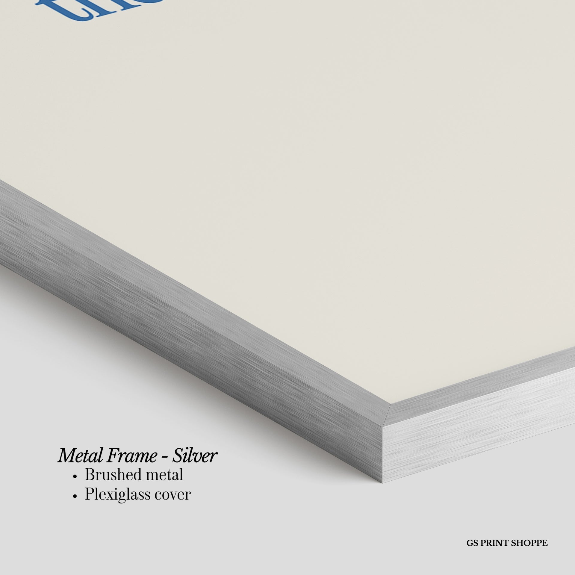 Metal Frame: Sleek and modern, our metal frame is crafted with brushed metal for a polished finish. It comes with durable plexiglass and sturdy metal hangers for horizontal or vertical display.