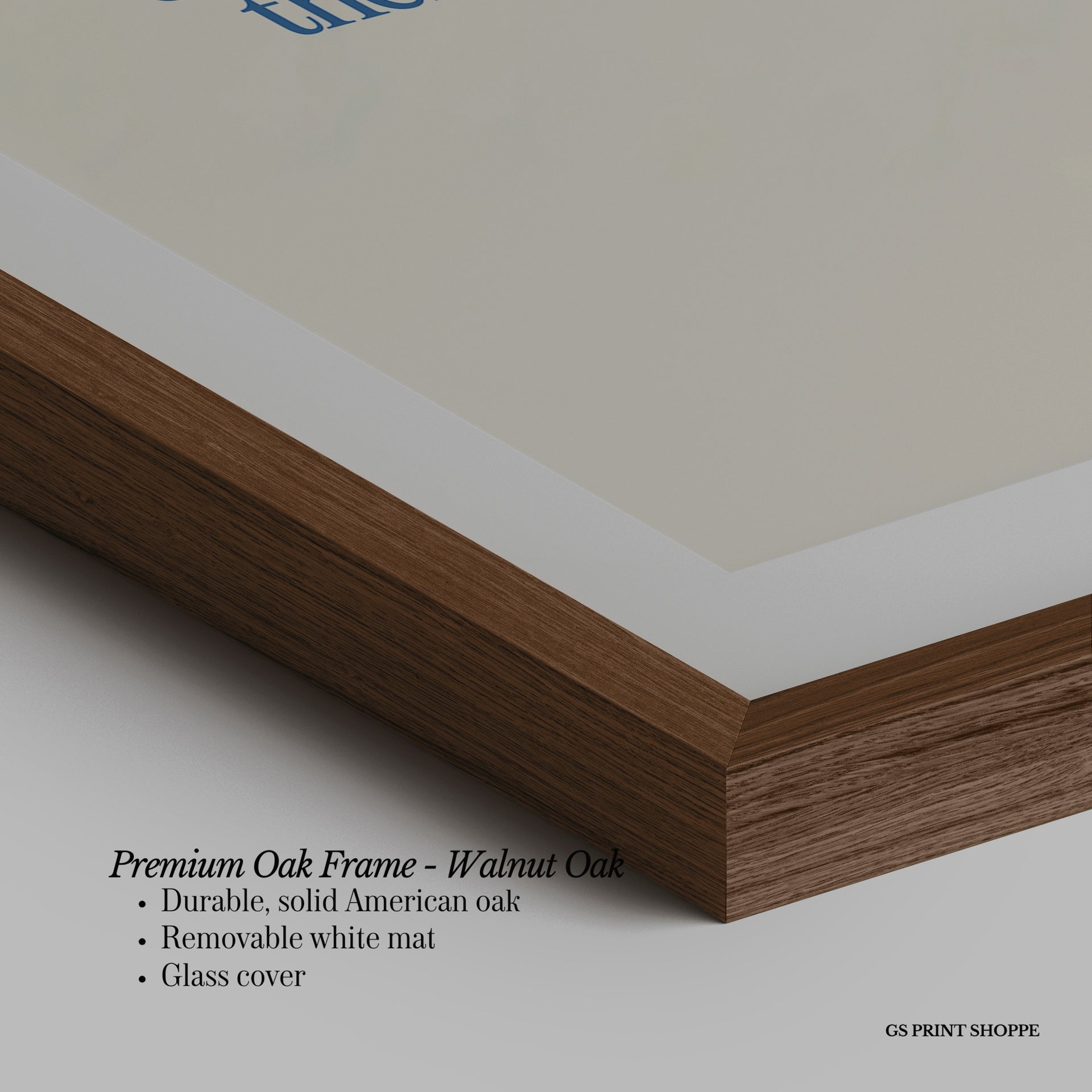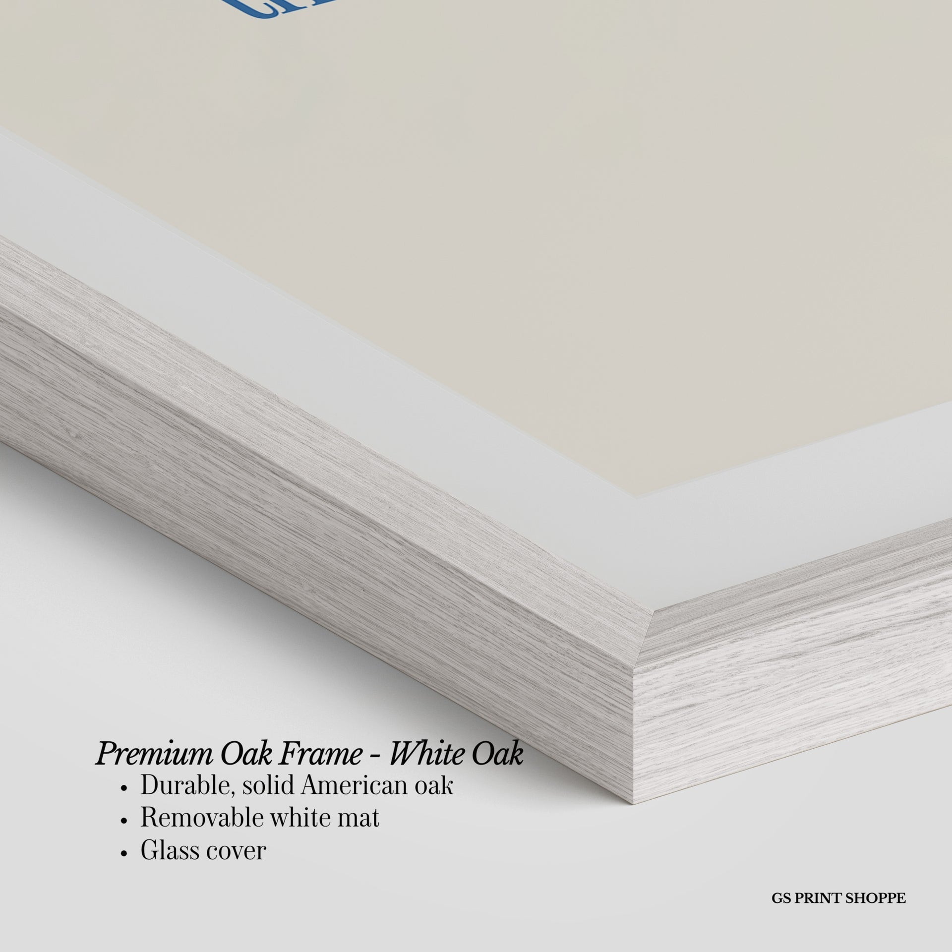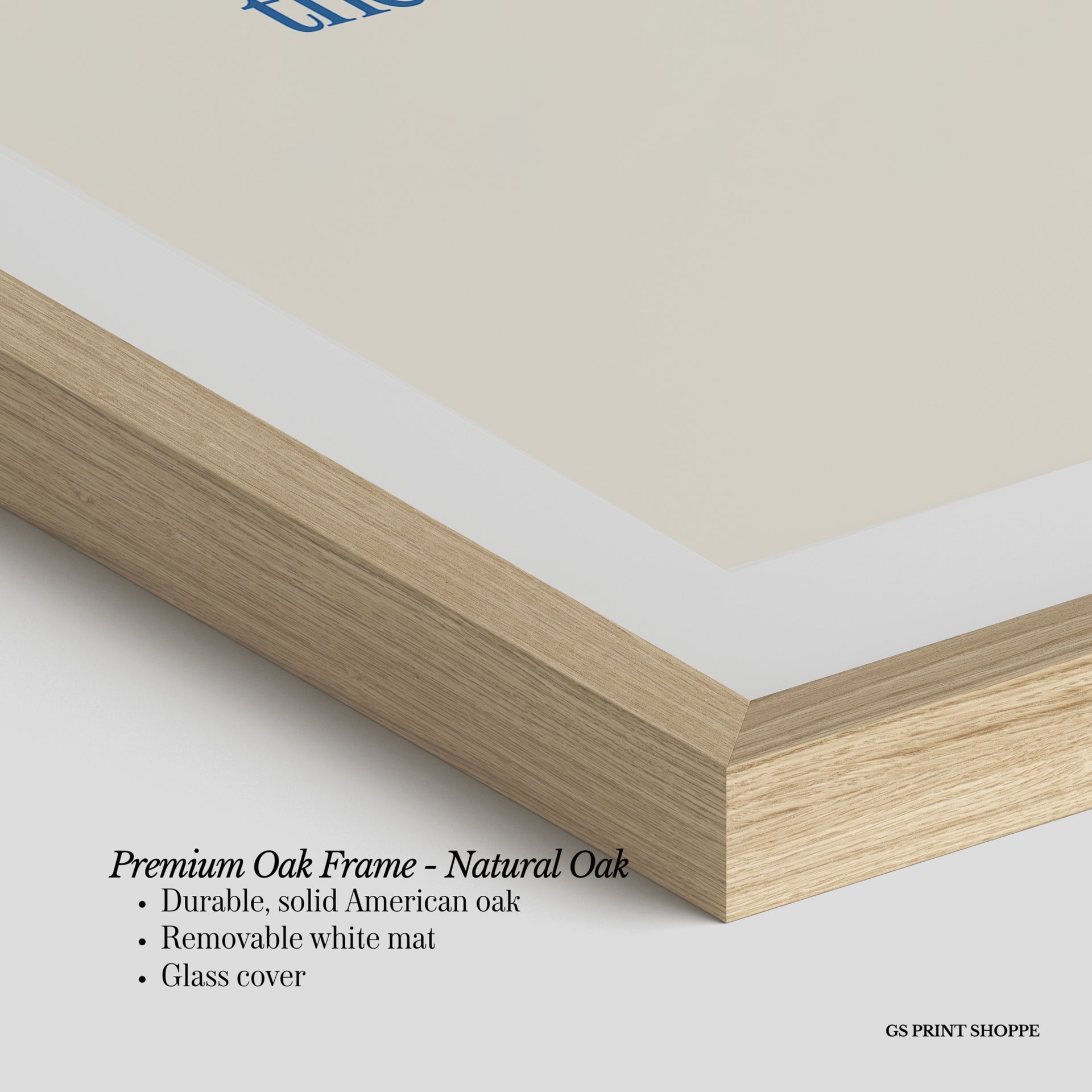 Premium Oak Frame: Our premium oak frame is crafted from solid American oak, offering a warm, natural feel with a high-end finish. We complete this elevated offering with a bright white removable mat and real glass for a versatile and polished look.
