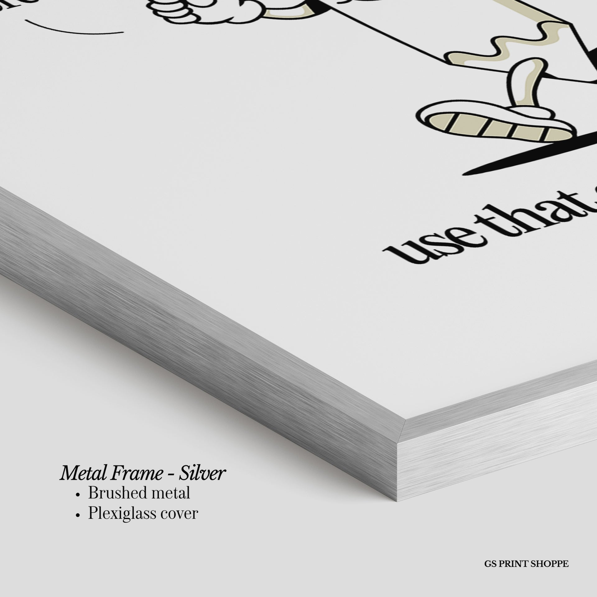 Metal Frame: Sleek and modern, our metal frame is crafted with brushed metal for a polished finish. It comes with durable plexiglass and sturdy metal hangers for horizontal or vertical display.