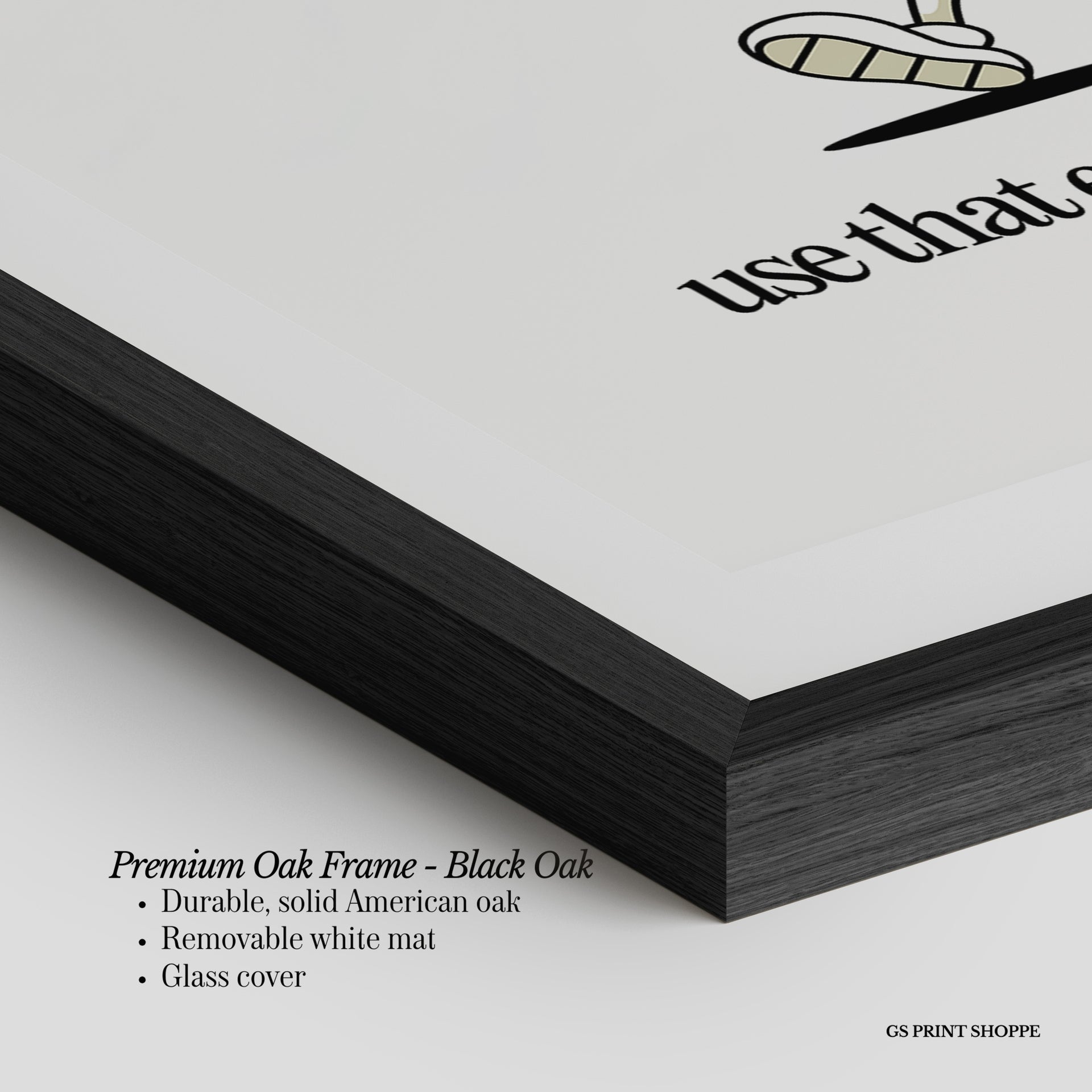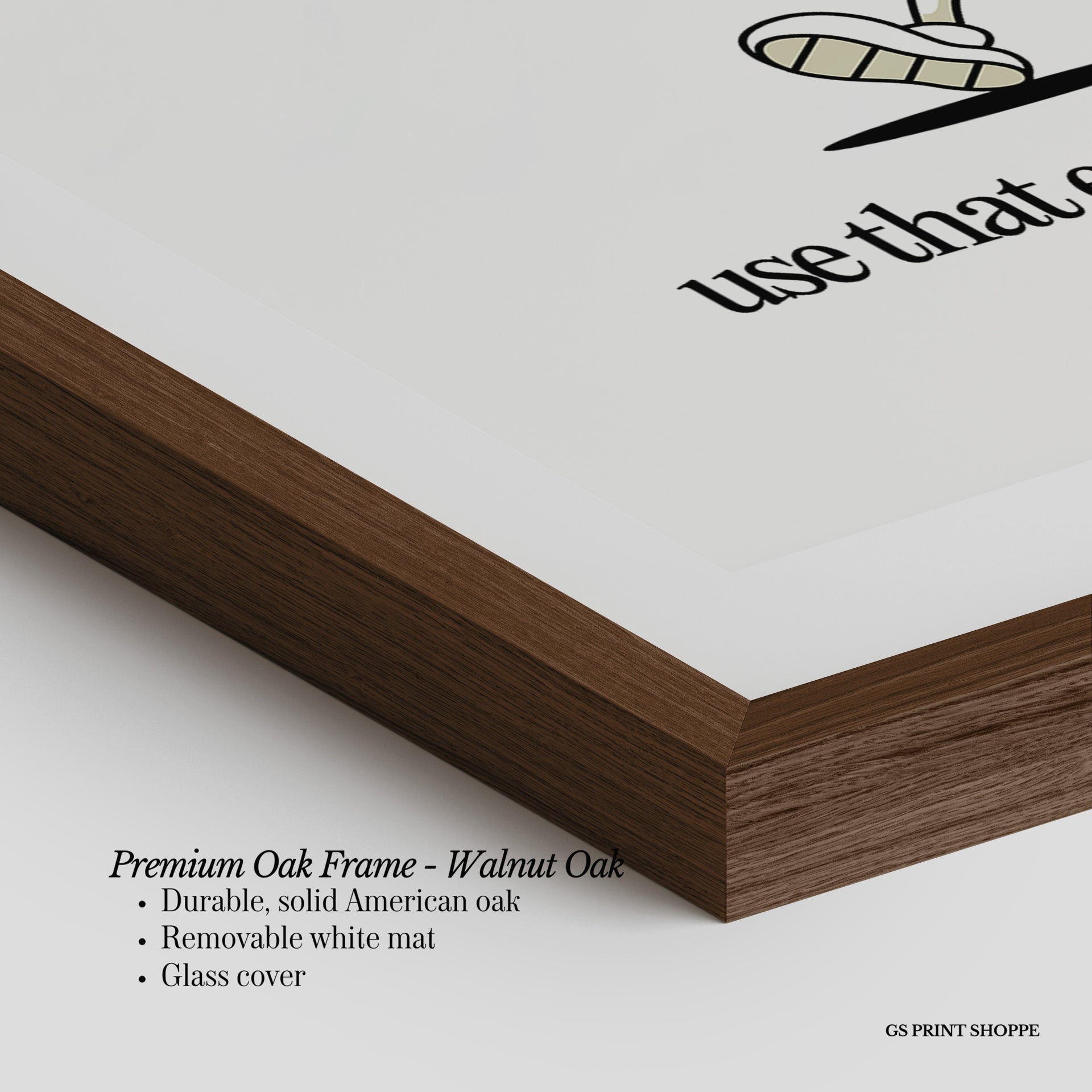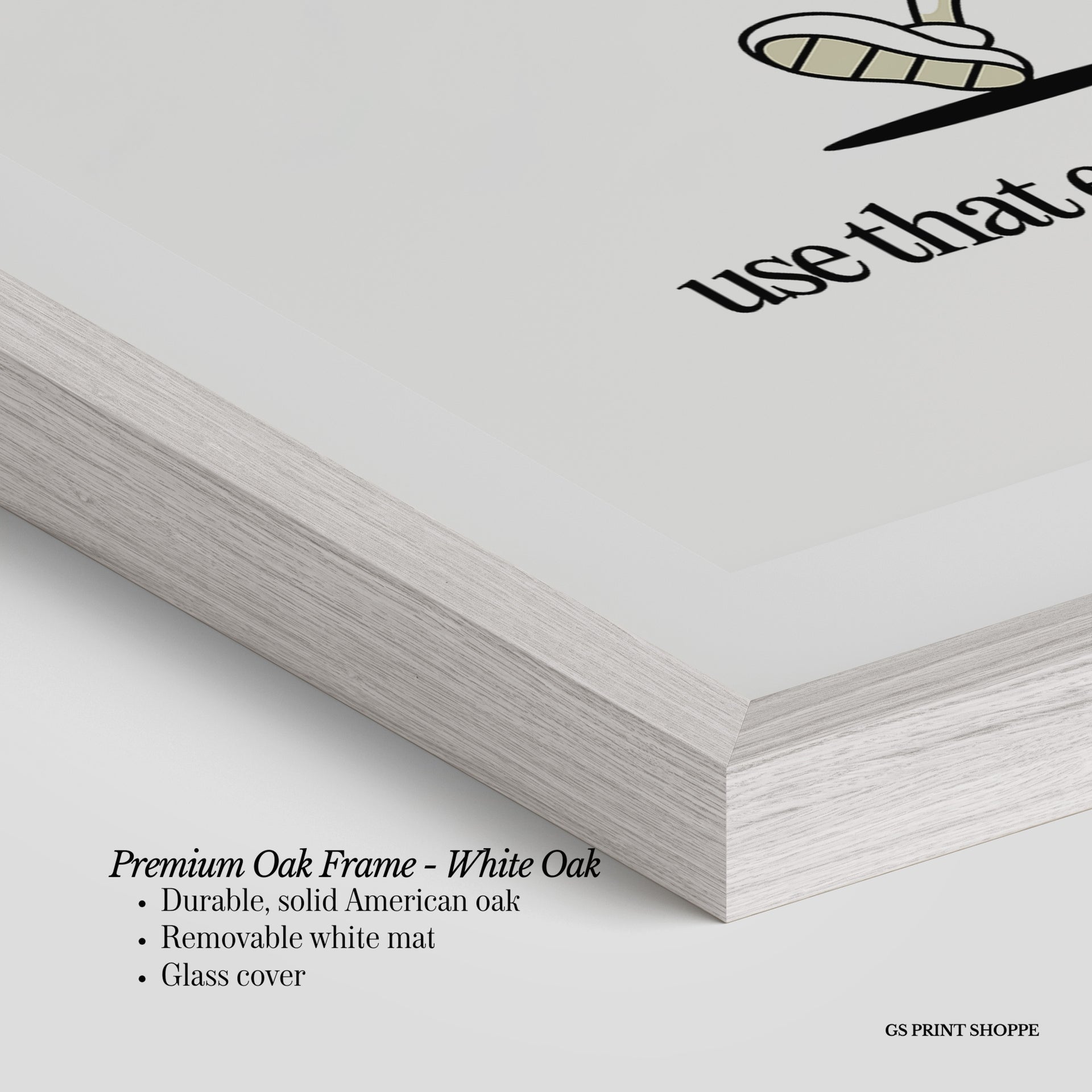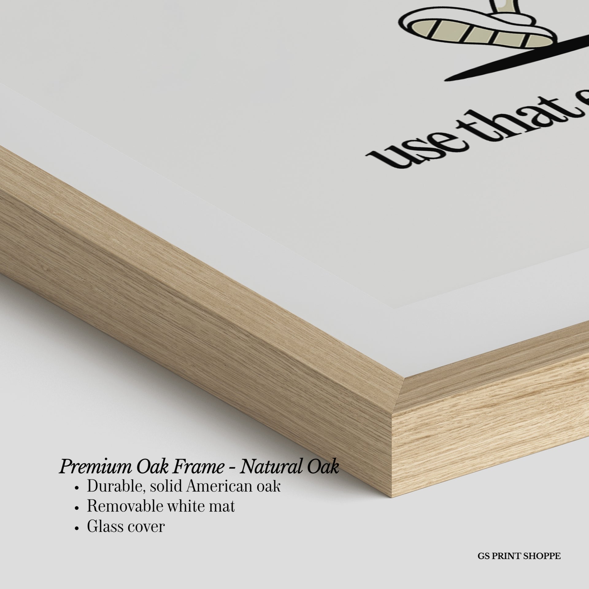 Premium Oak Frame: Our premium oak frame is crafted from solid American oak, offering a warm, natural feel with a high-end finish. We complete this elevated offering with a bright white removable mat and real glass for a versatile and polished look.