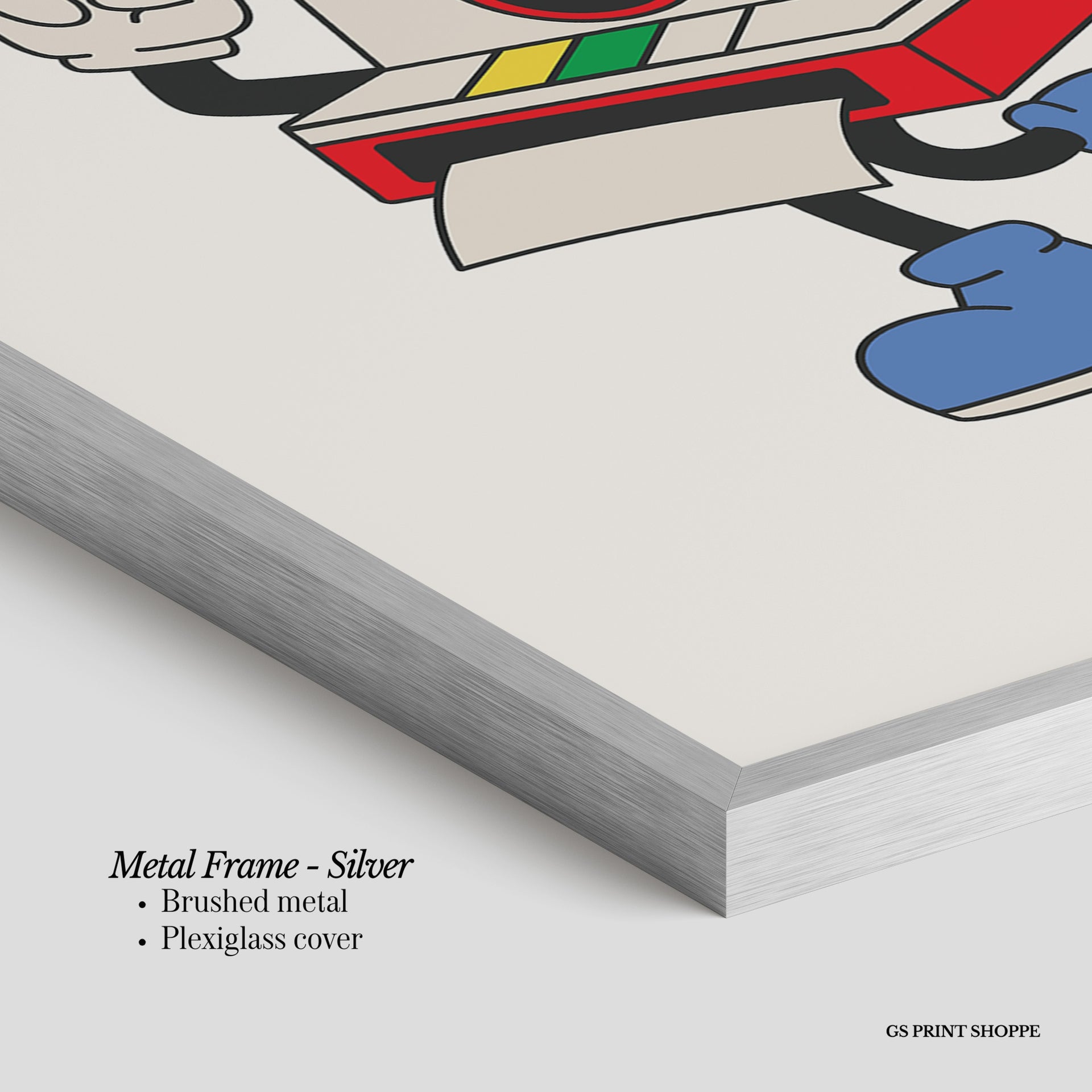 Metal Frame: Sleek and modern, our metal frame is crafted with brushed metal for a polished finish. It comes with durable plexiglass and sturdy metal hangers for horizontal or vertical display.