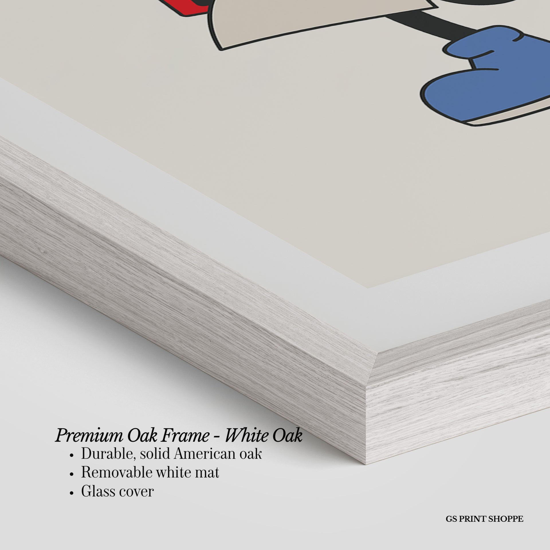 Premium Oak Frame: Our premium oak frame is crafted from solid American oak, offering a warm, natural feel with a high-end finish. We complete this elevated offering with a bright white removable mat and real glass for a versatile and polished look.