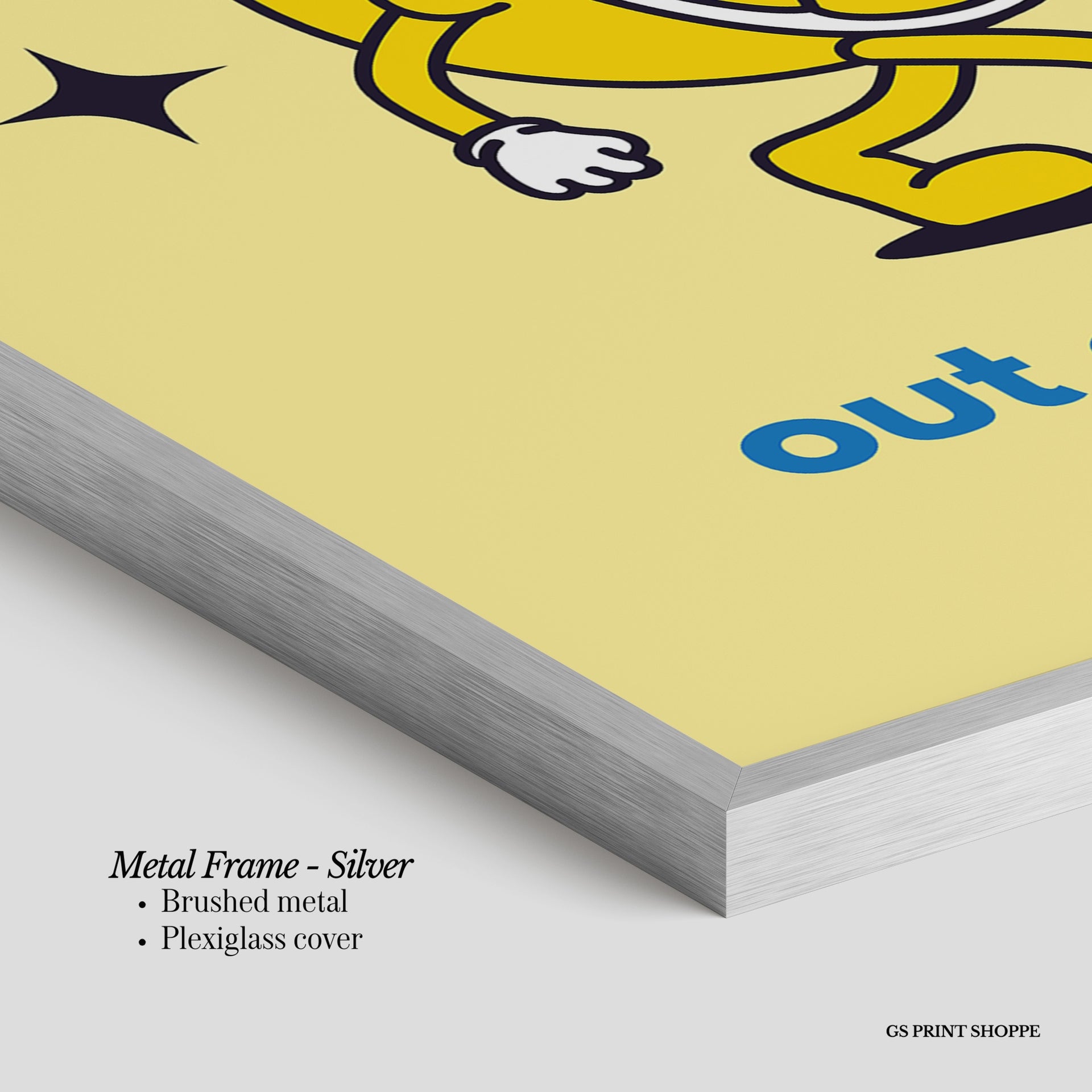 Metal Frame: Sleek and modern, our metal frame is crafted with brushed metal for a polished finish. It comes with durable plexiglass and sturdy metal hangers for horizontal or vertical display.