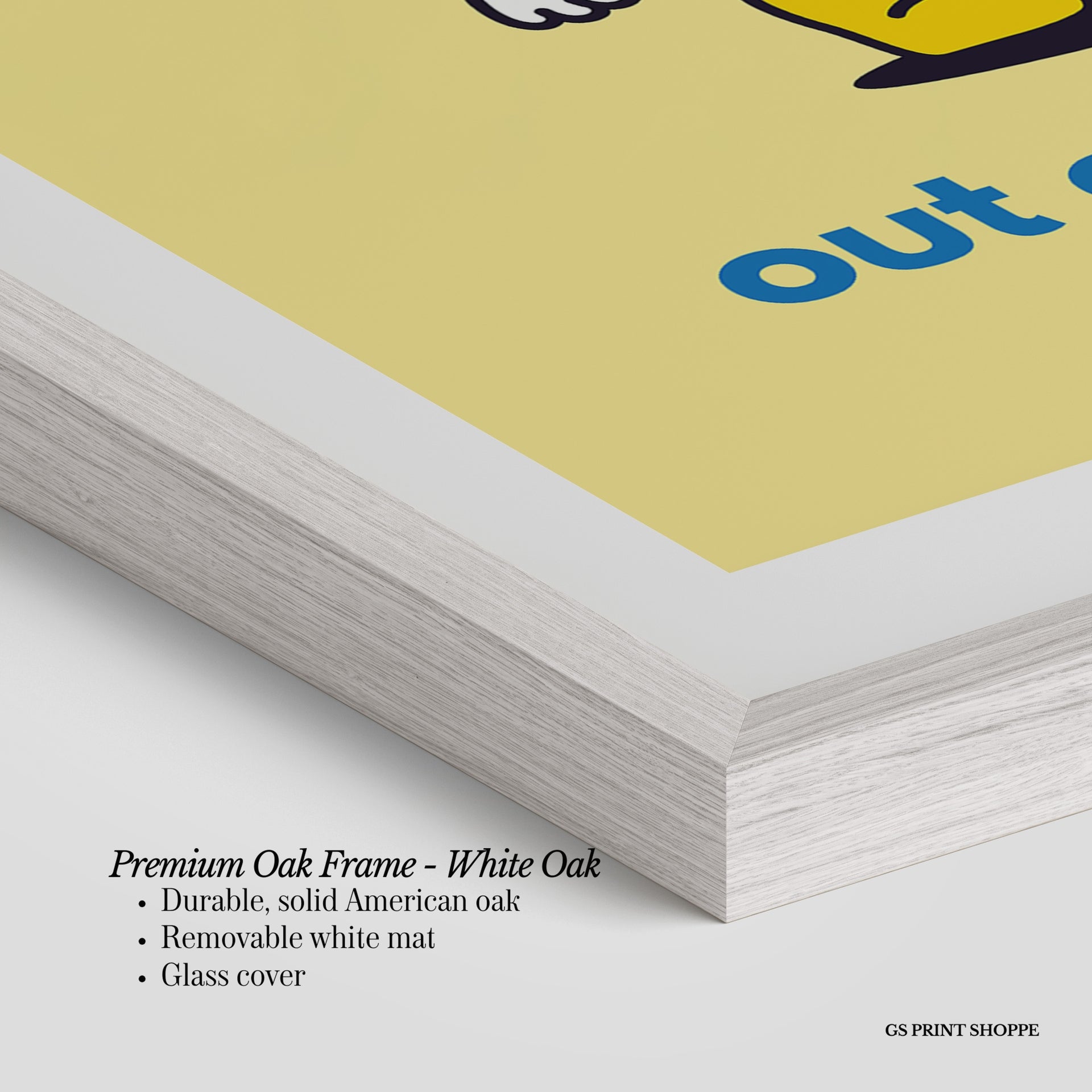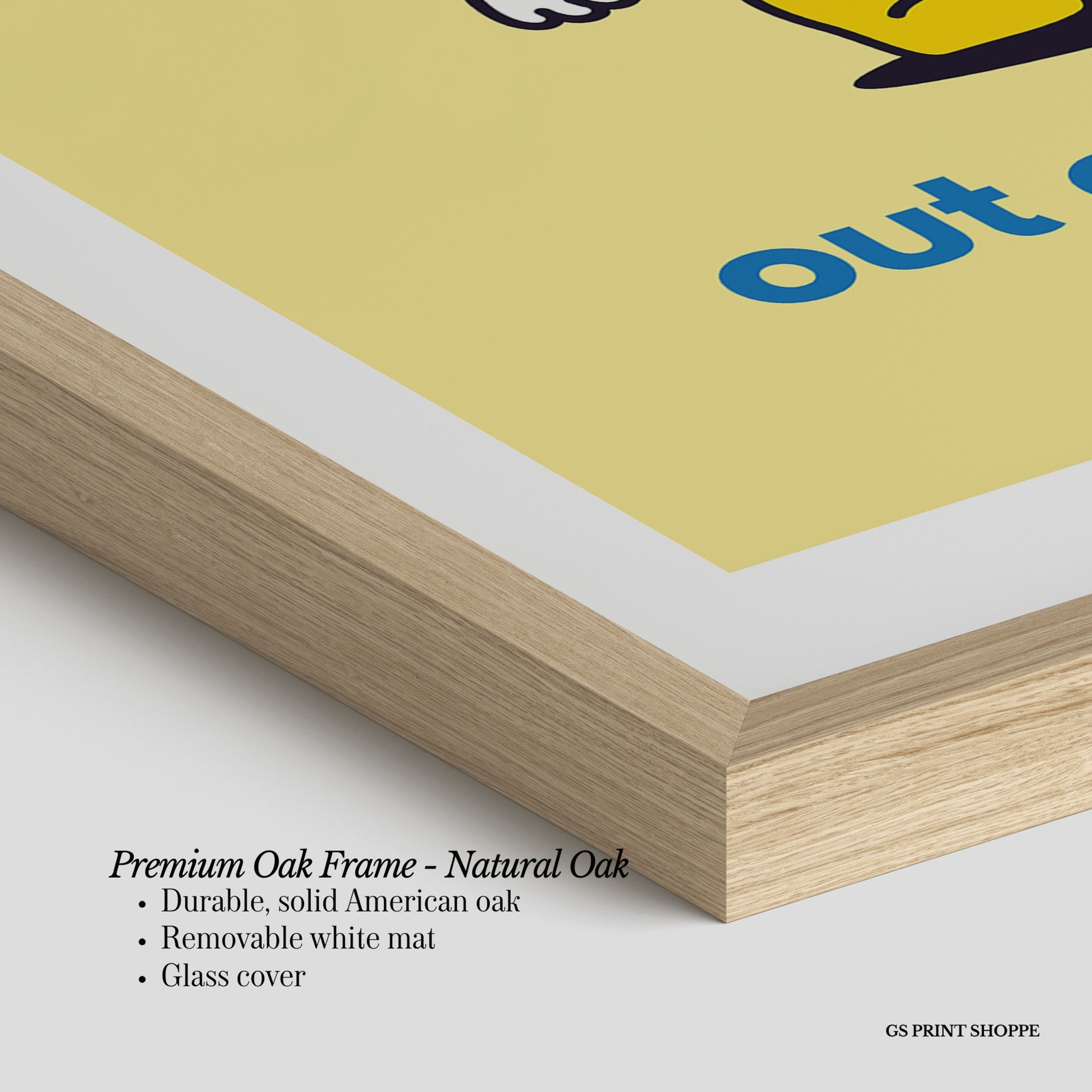 Premium Oak Frame: Our premium oak frame is crafted from solid American oak, offering a warm, natural feel with a high-end finish. We complete this elevated offering with a bright white removable mat and real glass for a versatile and polished look.