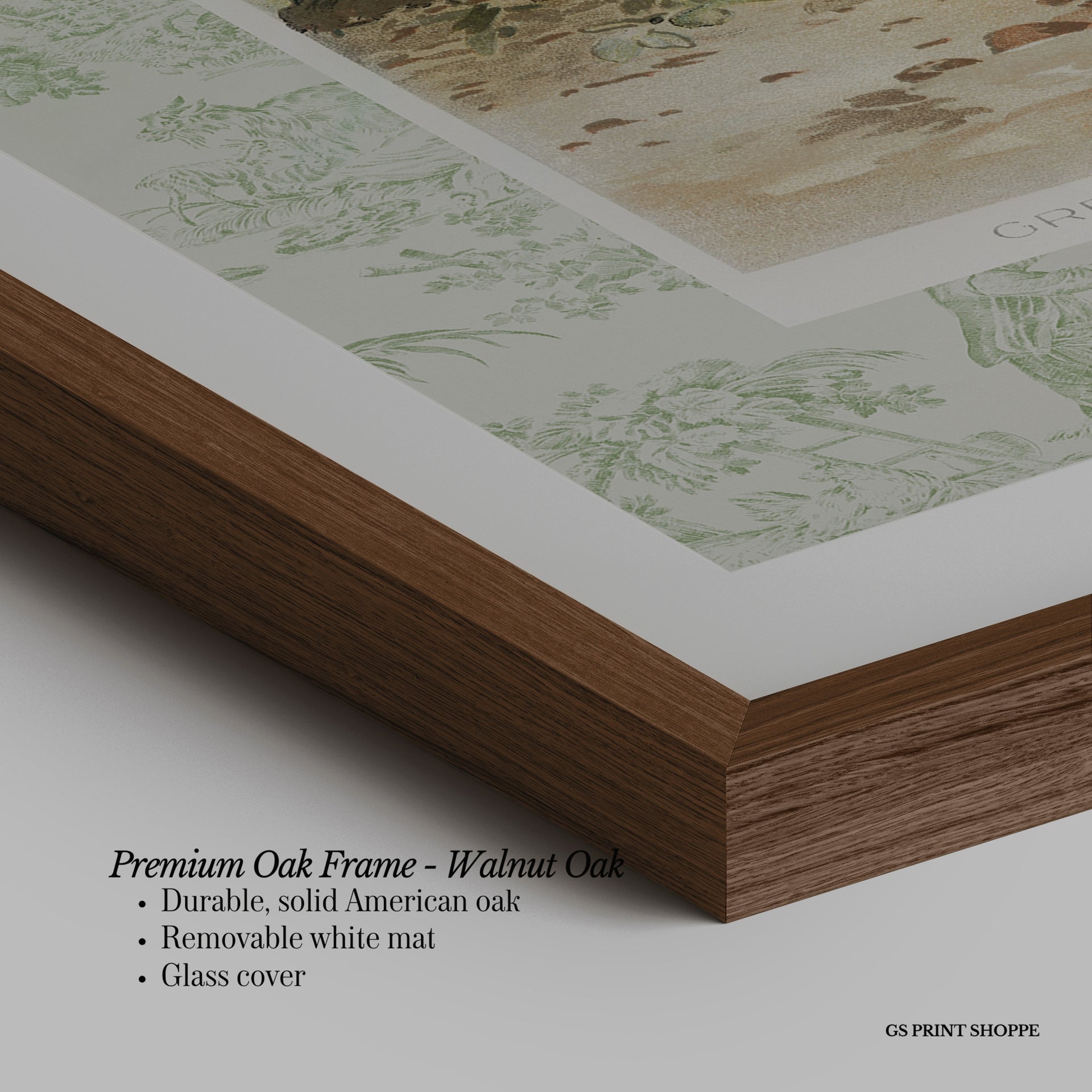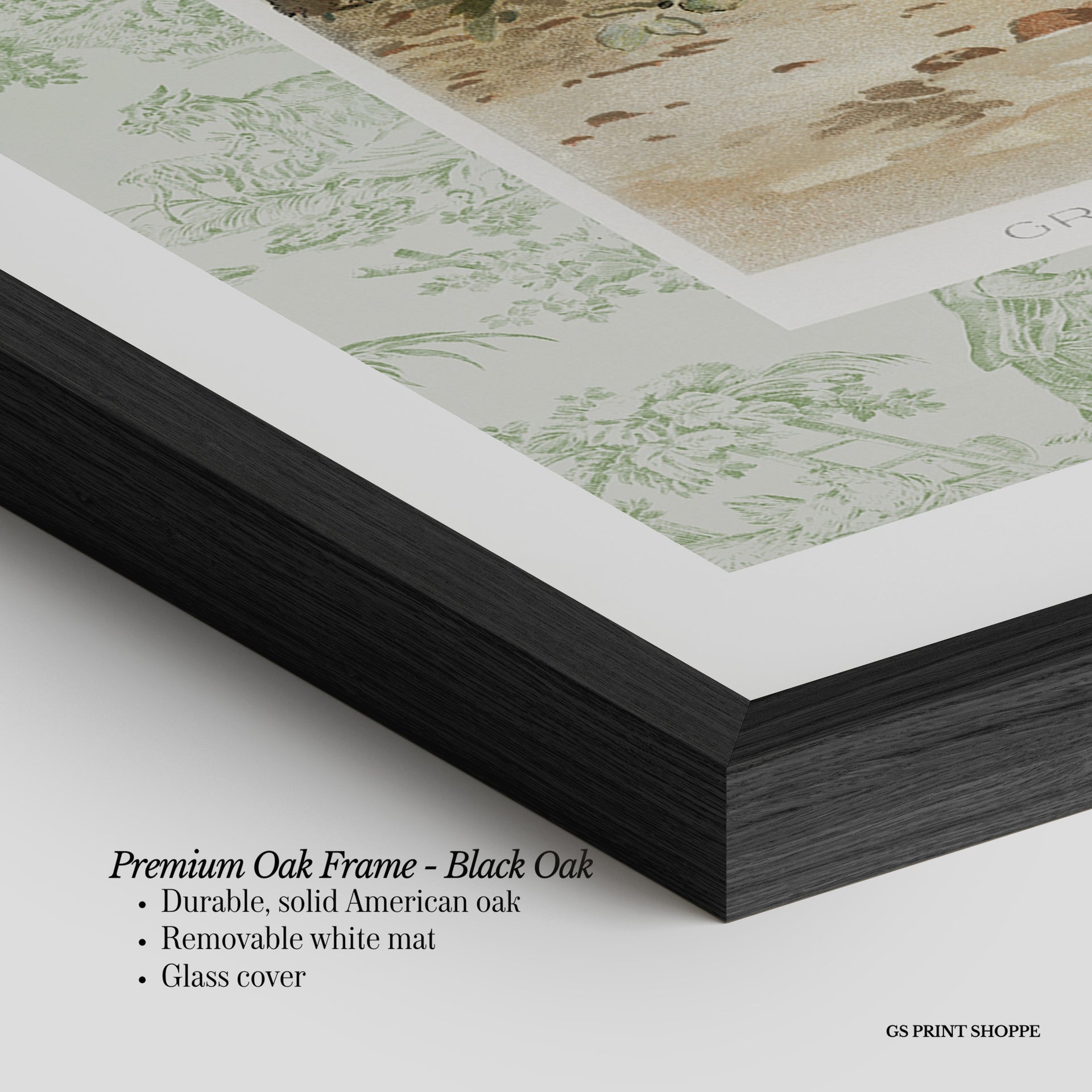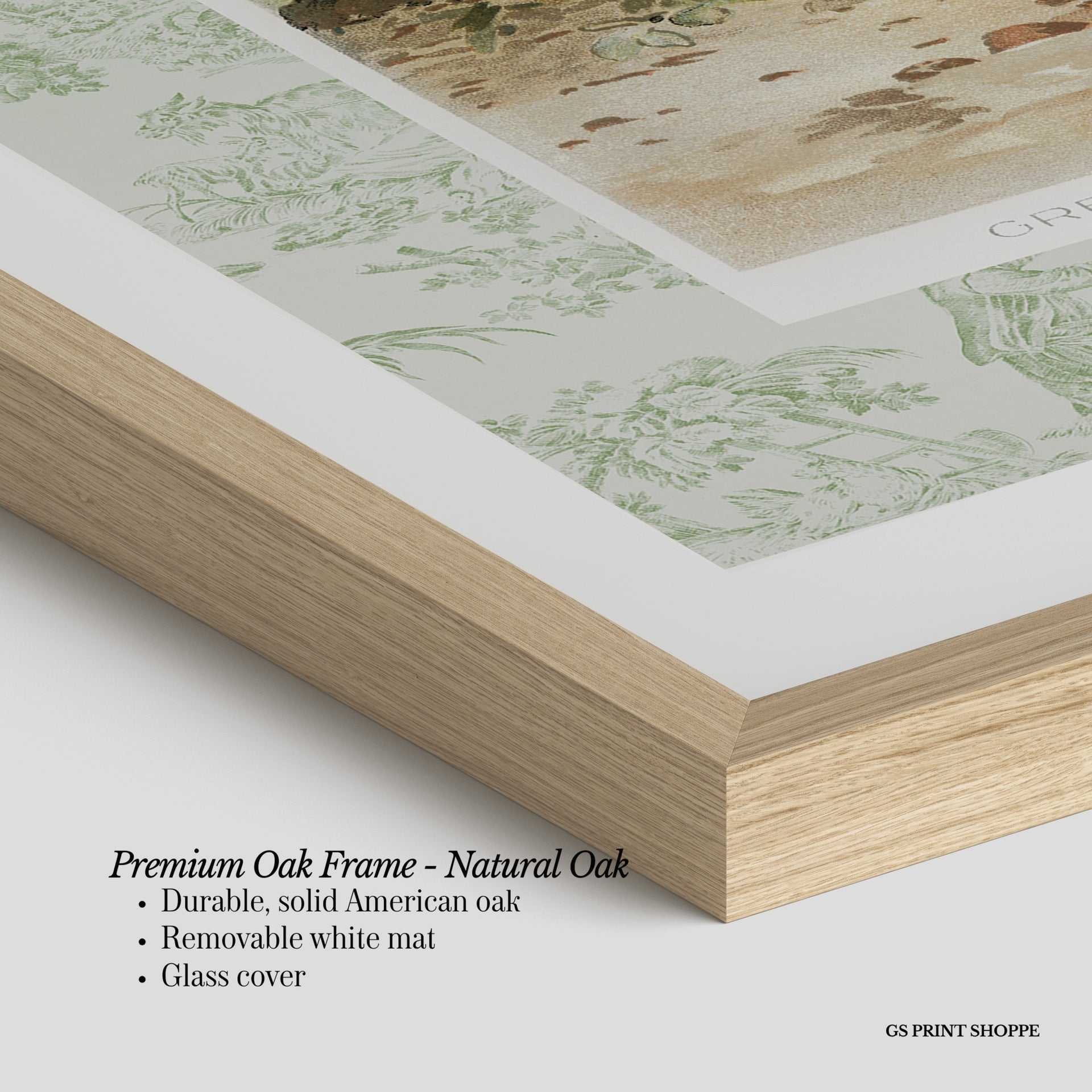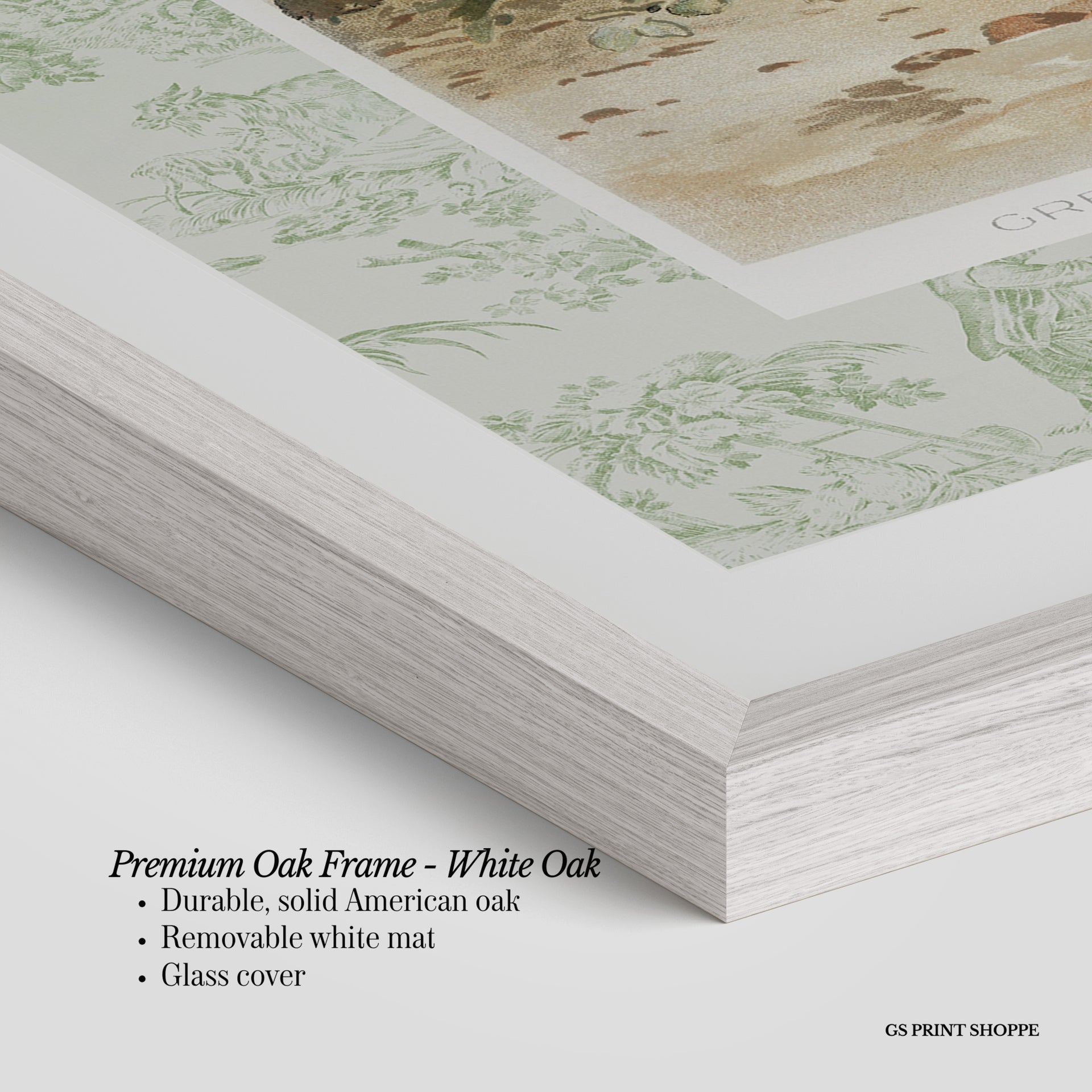 Premium Oak Frame: Our premium oak frame is crafted from solid American oak, offering a warm, natural feel with a high-end finish. We complete this elevated offering with a bright white removable mat and real glass for a versatile and polished look.