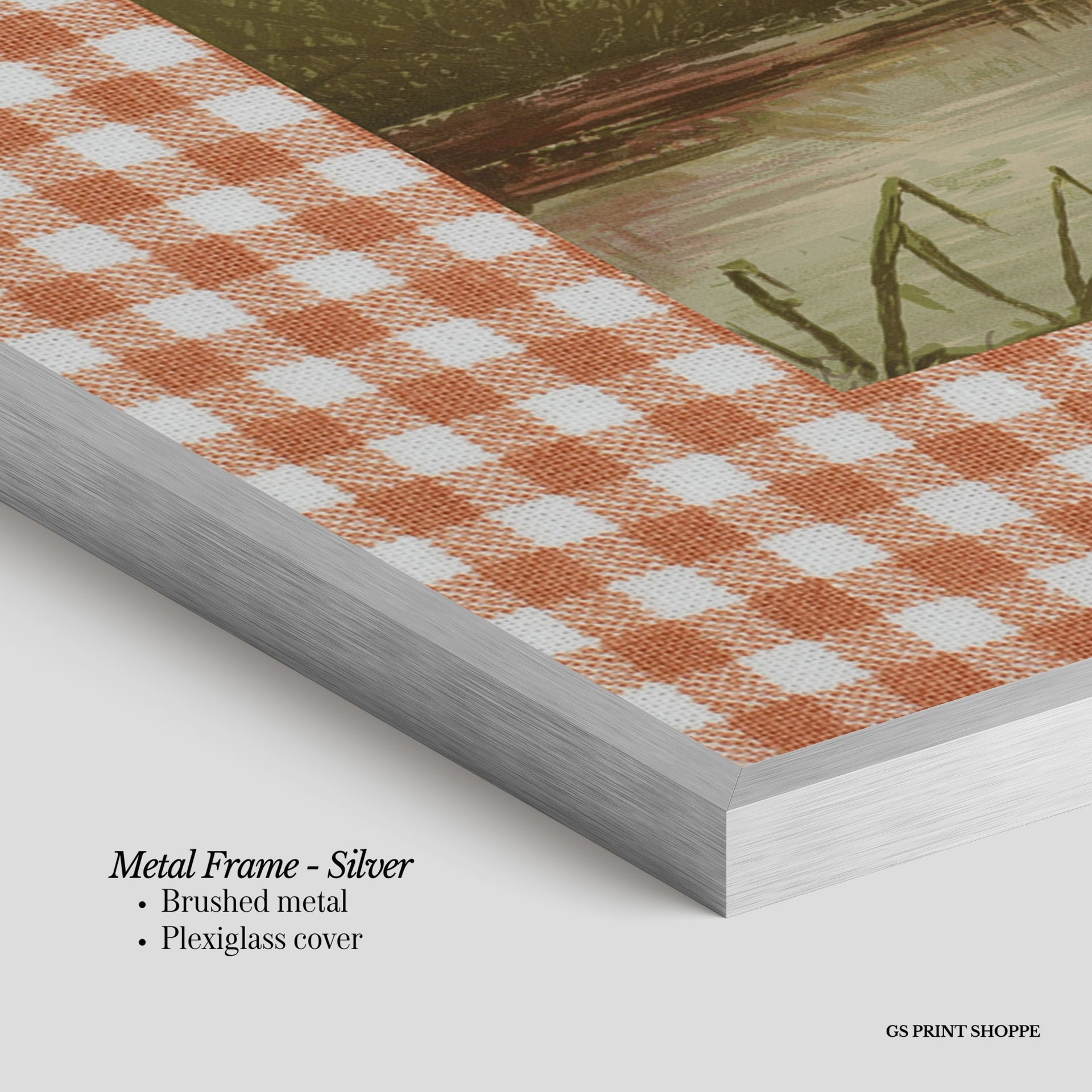 Metal Frame: Sleek and modern, our metal frame is crafted with brushed metal for a polished finish. It comes with durable plexiglass and sturdy metal hangers for horizontal or vertical display.