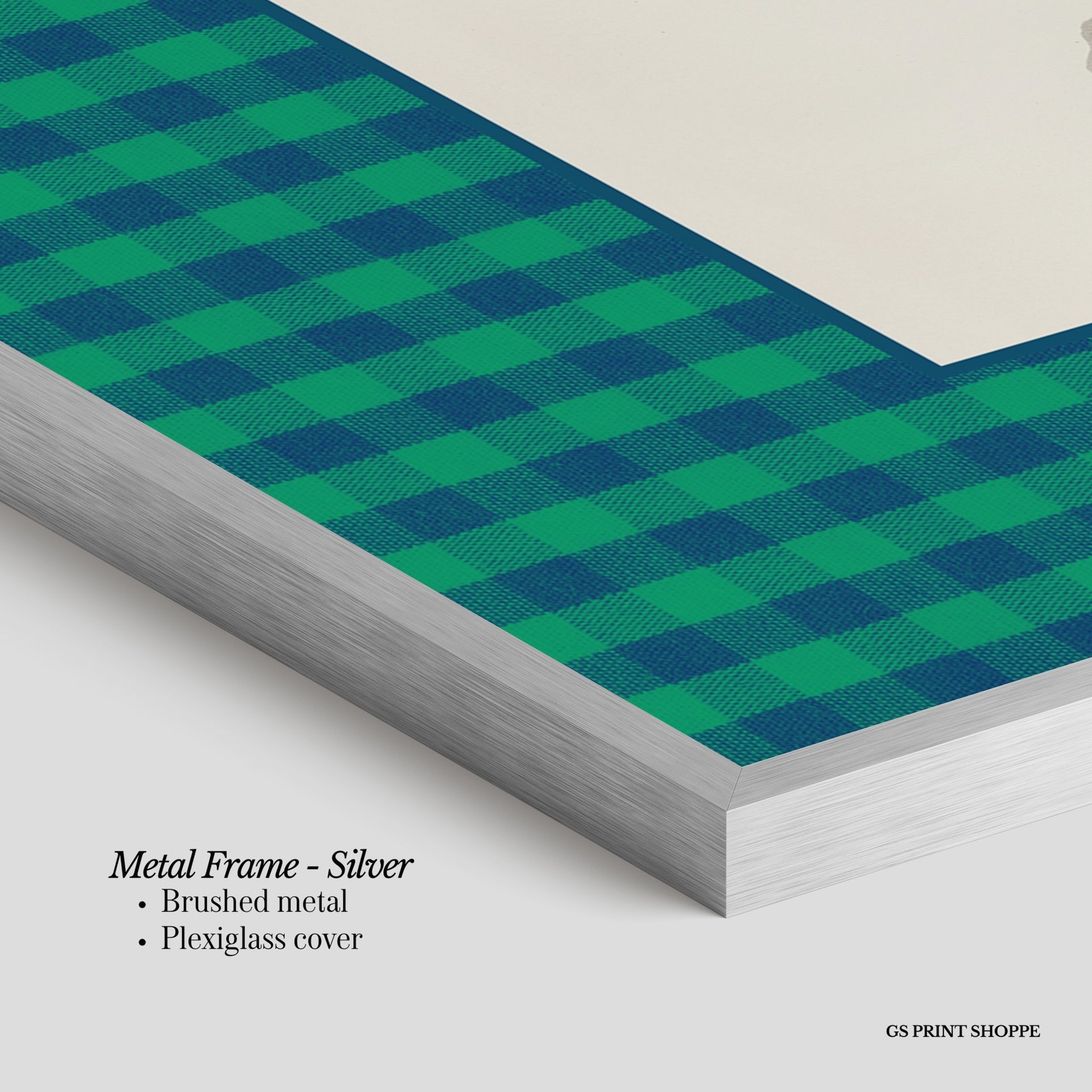 Metal Frame: Sleek and modern, our metal frame is crafted with brushed metal for a polished finish. It comes with durable plexiglass and sturdy metal hangers for horizontal or vertical display.