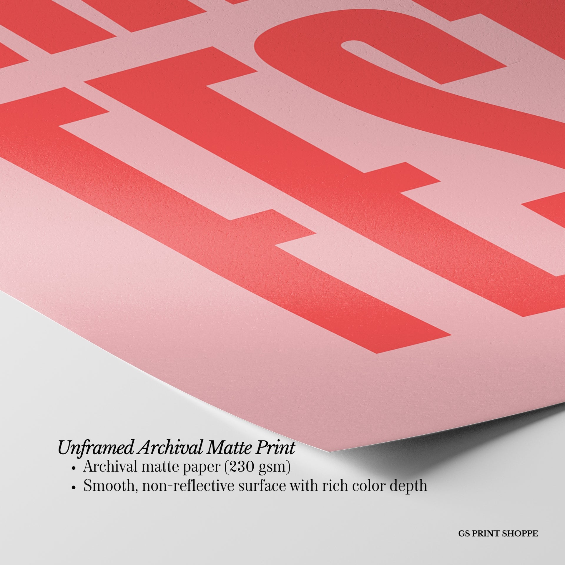 Unframed: This print is professionally printed on archival matte paper (230 gsm), a smooth, acid-free paper with a non-reflective finish. It will be carefully packaged to arrive safely at your door.