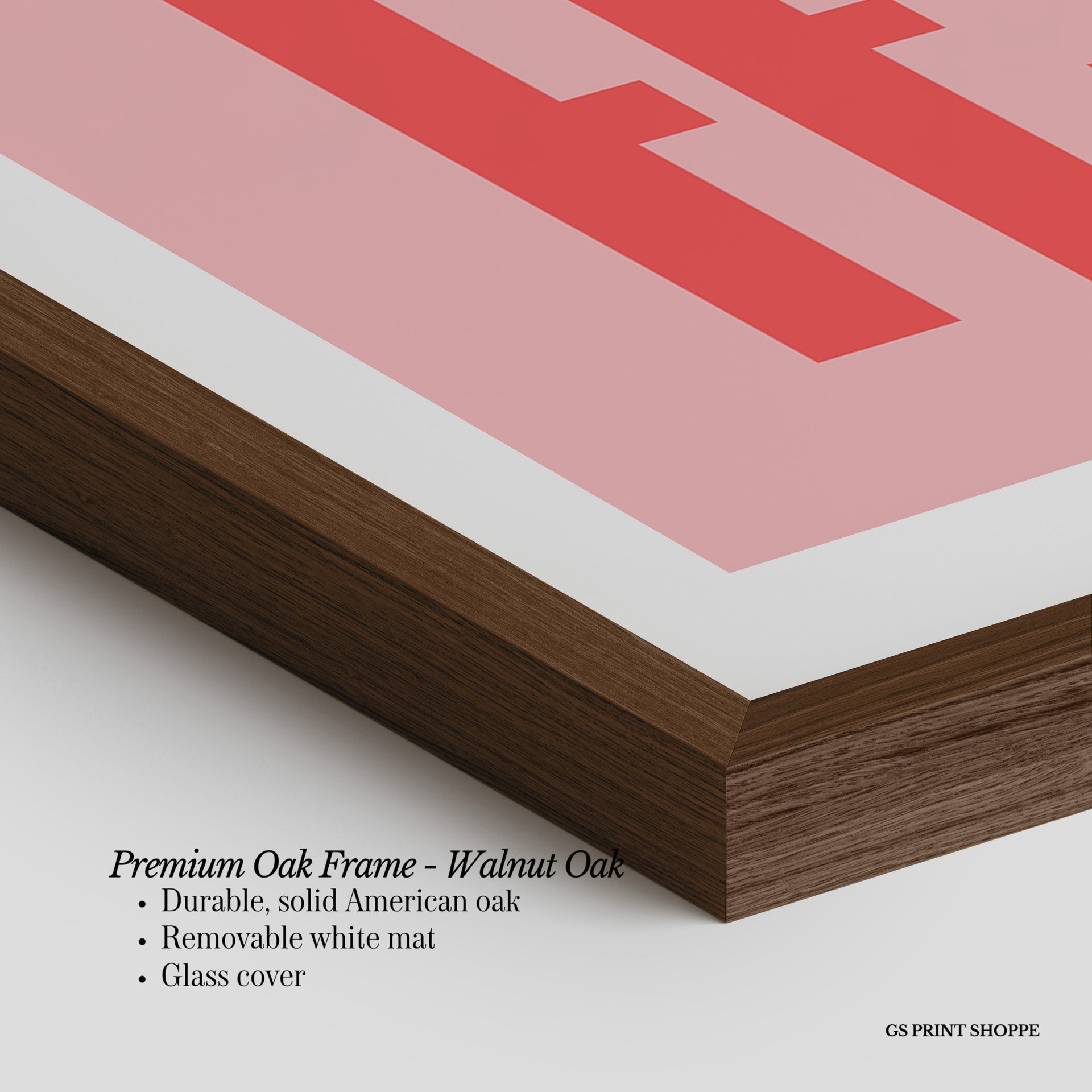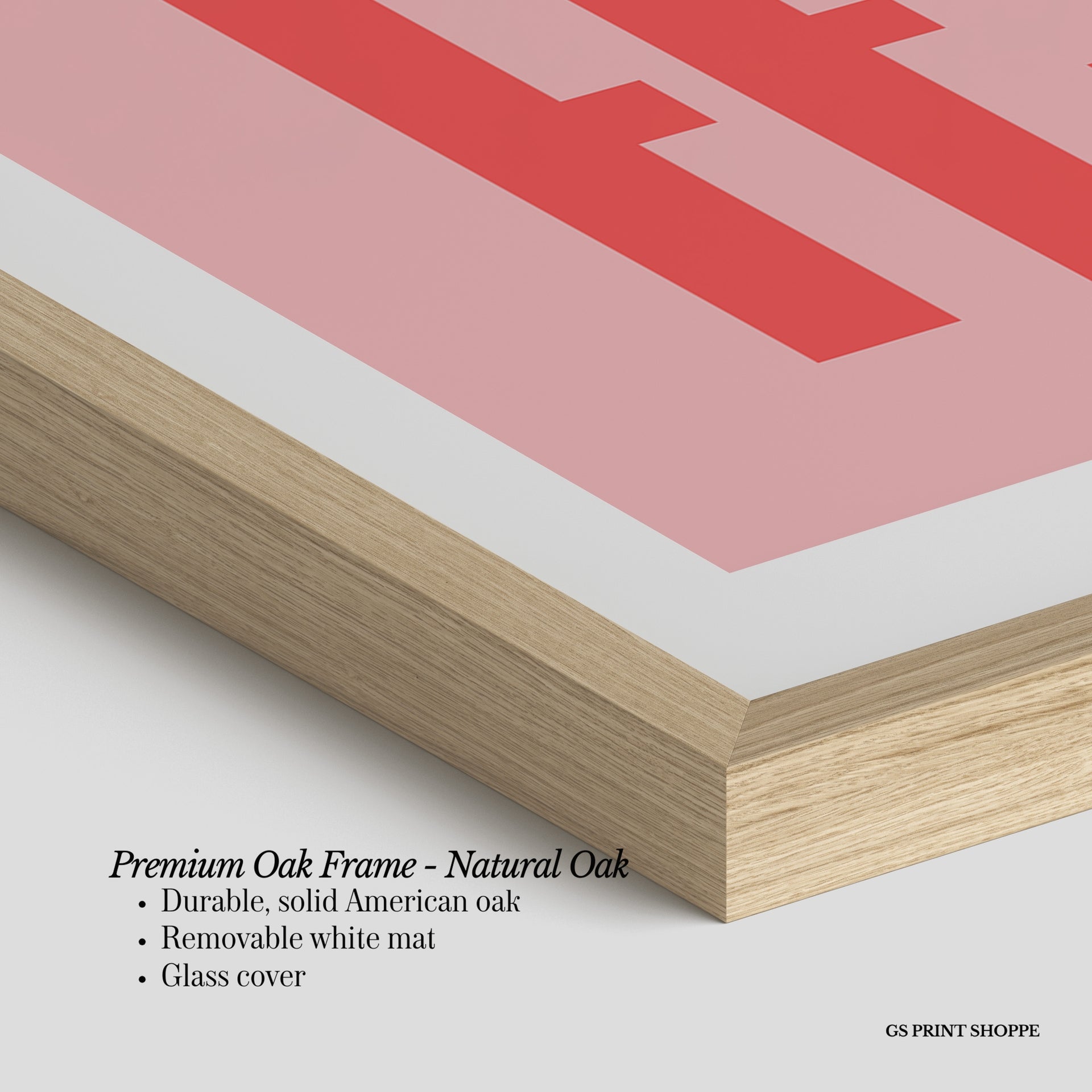Premium Oak Frame: Our premium oak frame is crafted from solid American oak, offering a warm, natural feel with a high-end finish. We complete this elevated offering with a bright white removable mat and real glass for a versatile and polished look.