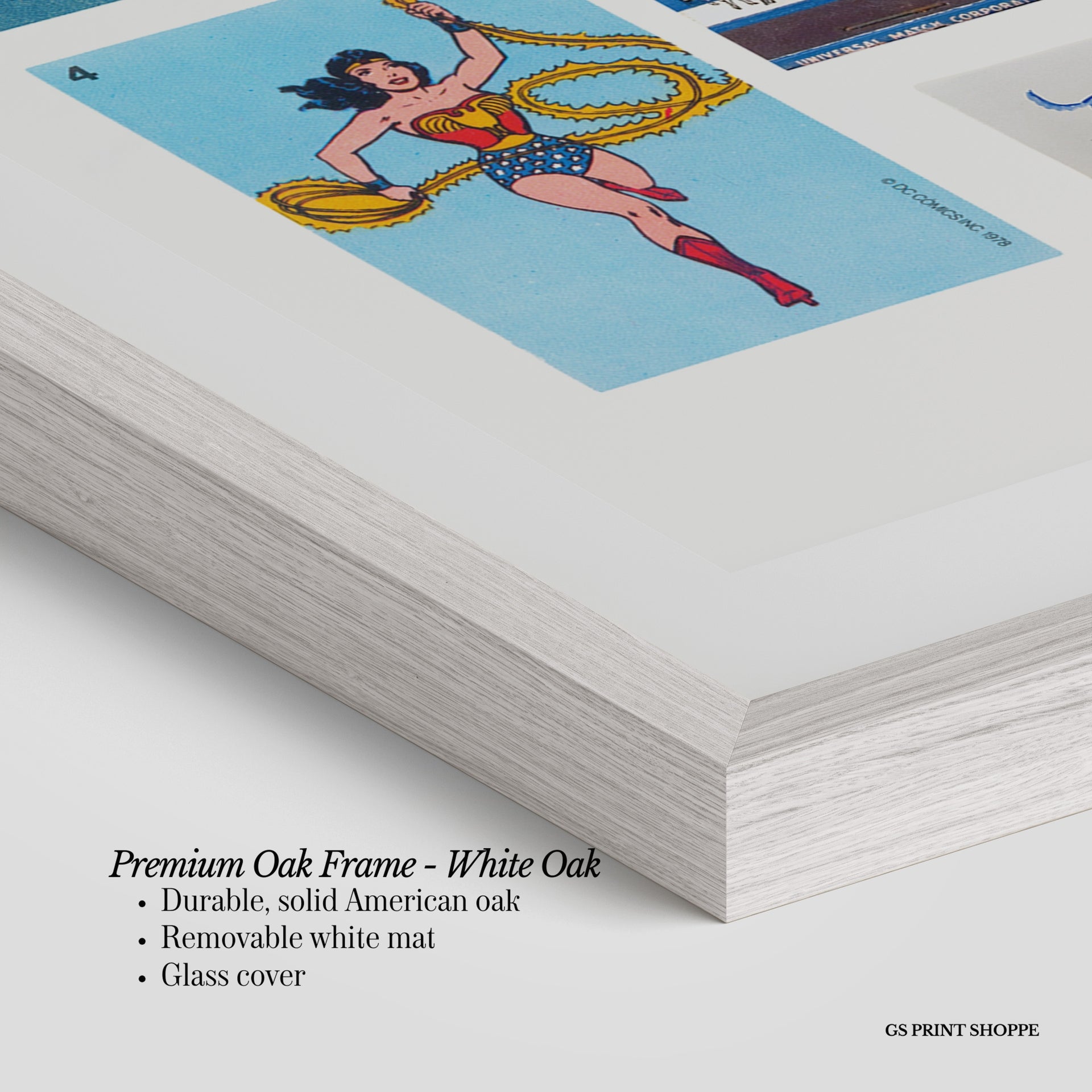Premium Oak Frame: Our premium oak frame is crafted from solid American oak, offering a warm, natural feel with a high-end finish. We complete this elevated offering with a bright white removable mat and real glass for a versatile and polished look.