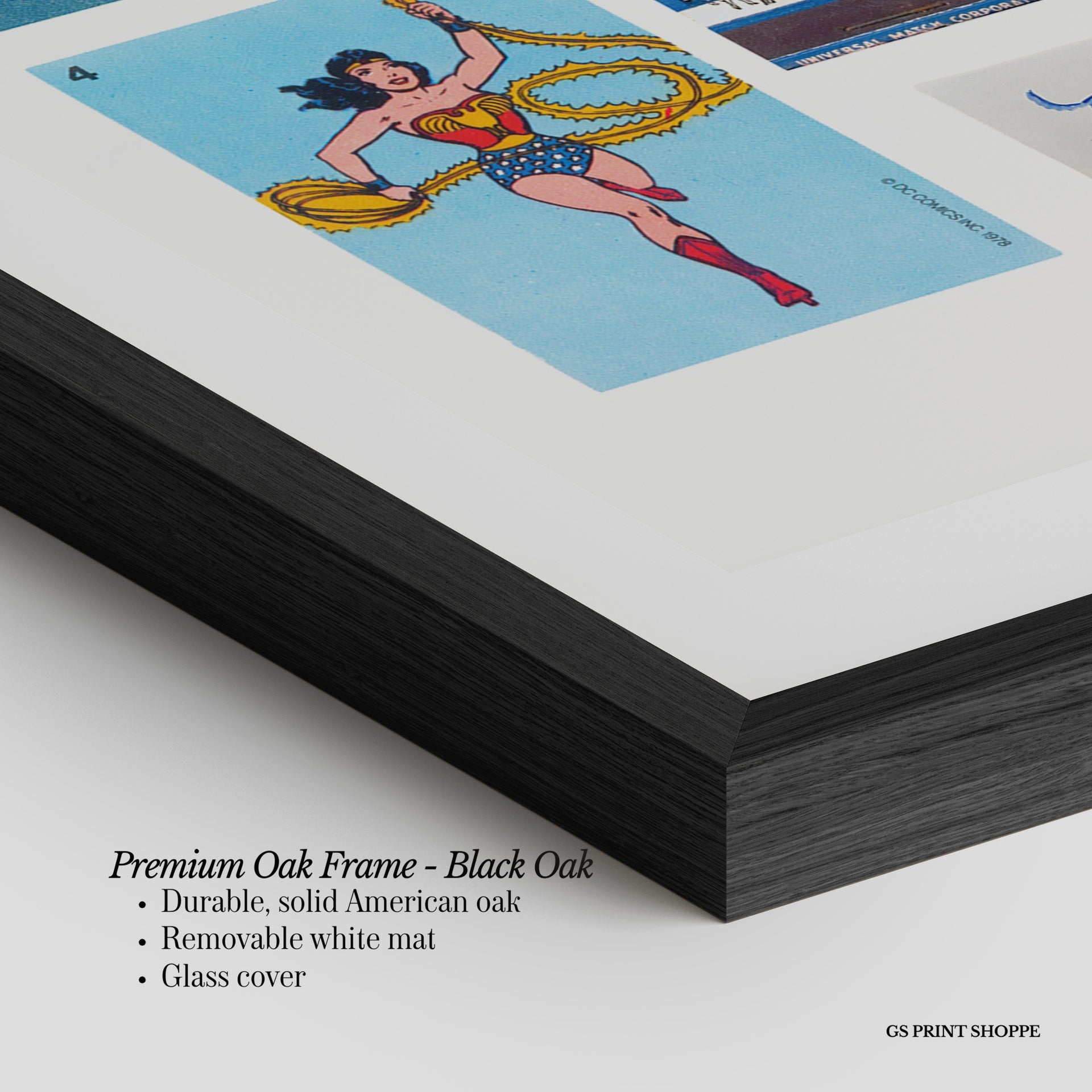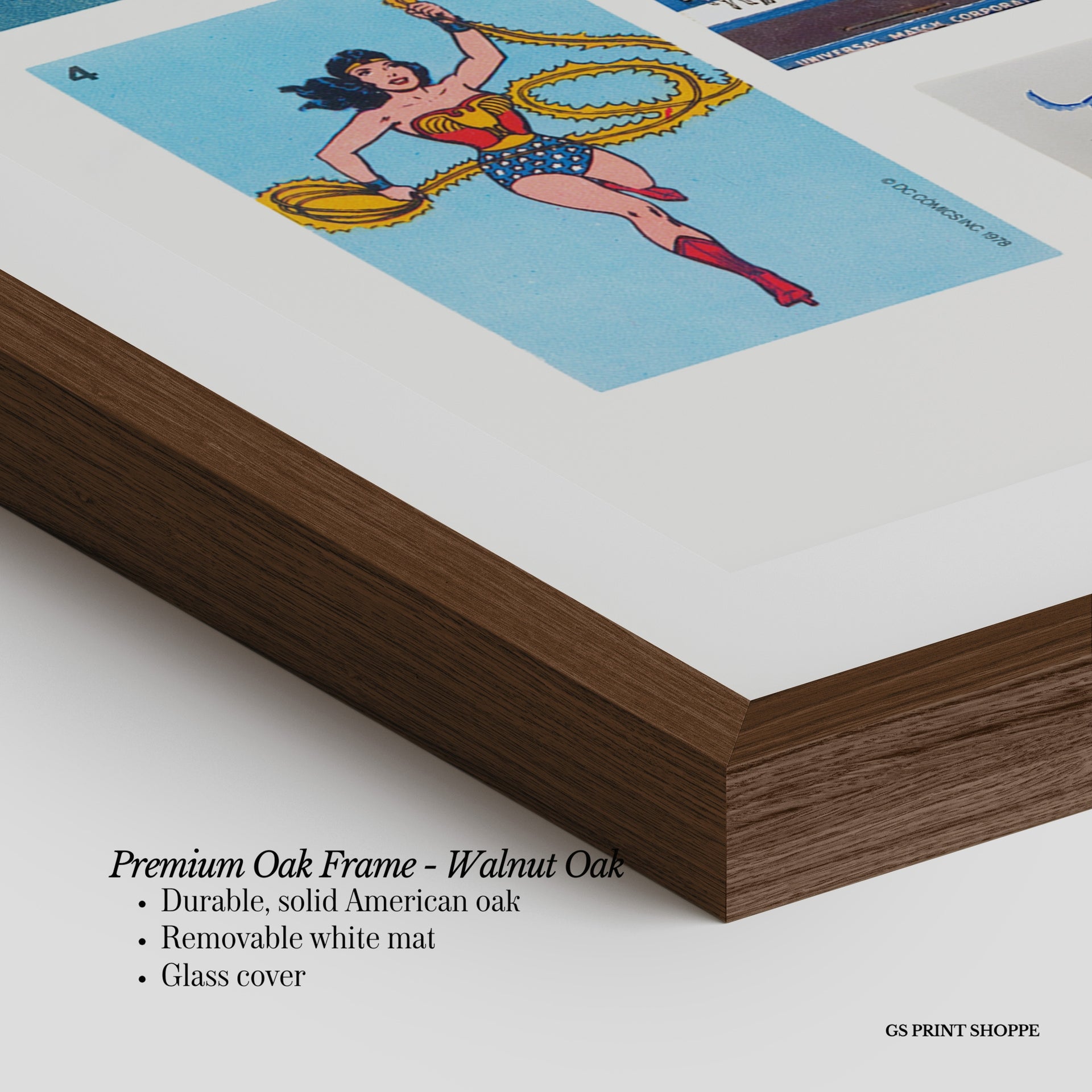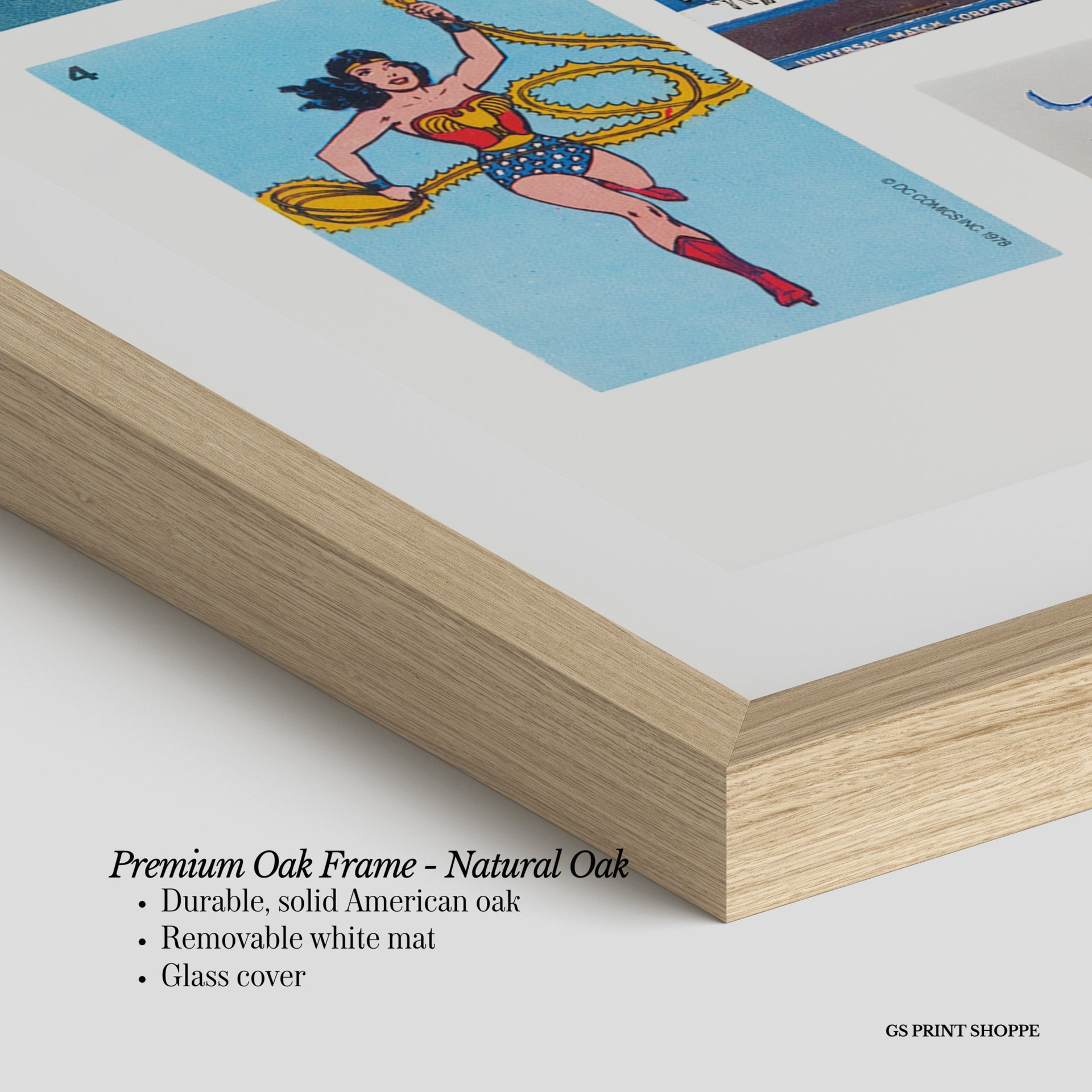 Oak Frame: Our solid oak frame blends durability with timeless appeal. Made from American oak, it features a smooth finish and plexiglass for long-lasting quality.