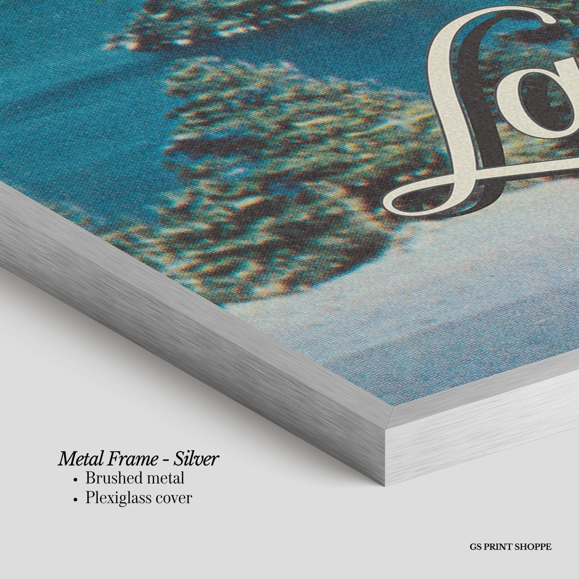 Metal Frame: Sleek and modern, our metal frame is crafted with brushed metal for a polished finish. It comes with durable plexiglass and sturdy metal hangers for horizontal or vertical display.