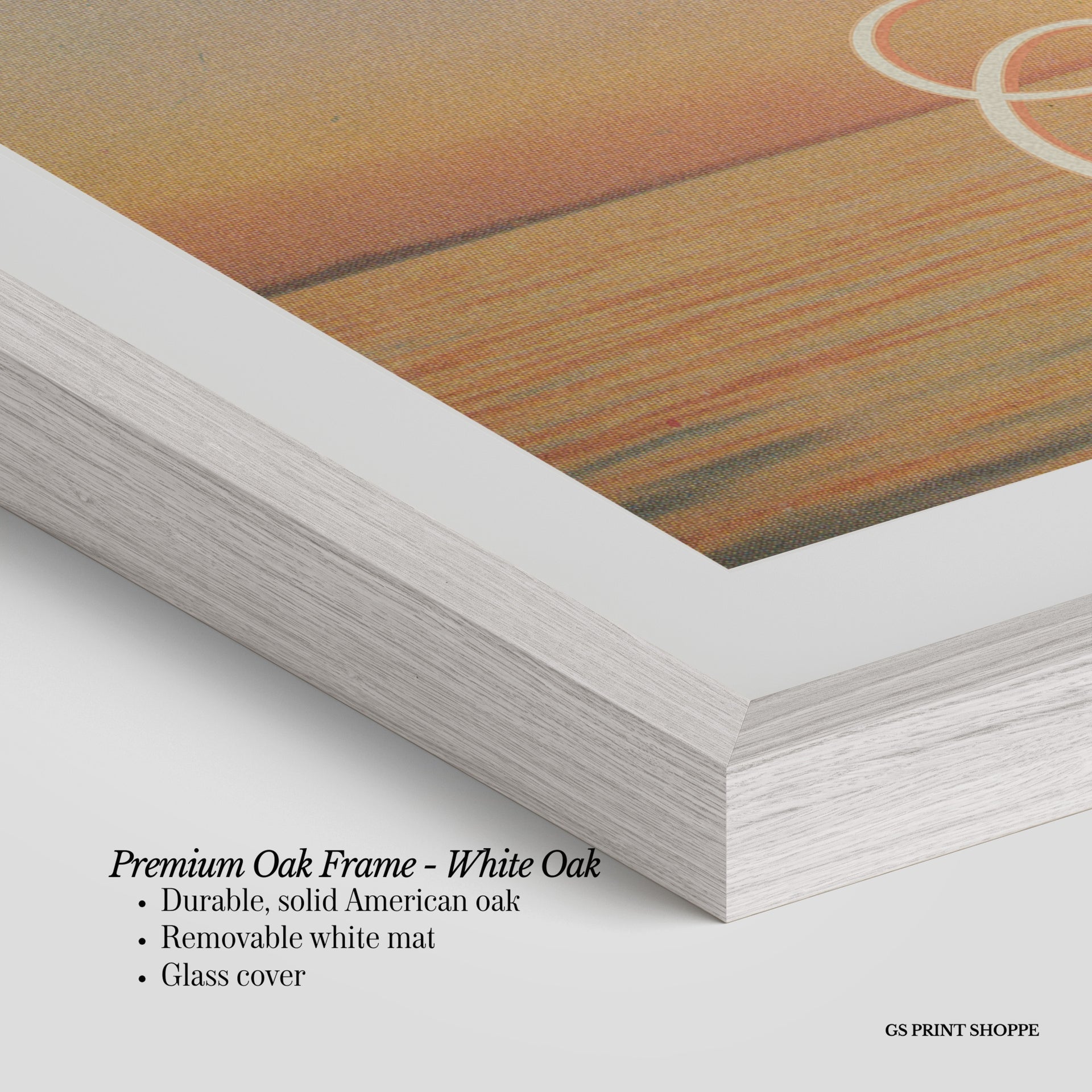 Premium Oak Frame: Our premium oak frame is crafted from solid American oak, offering a warm, natural feel with a high-end finish. We complete this elevated offering with a bright white removable mat and real glass for a versatile and polished look.