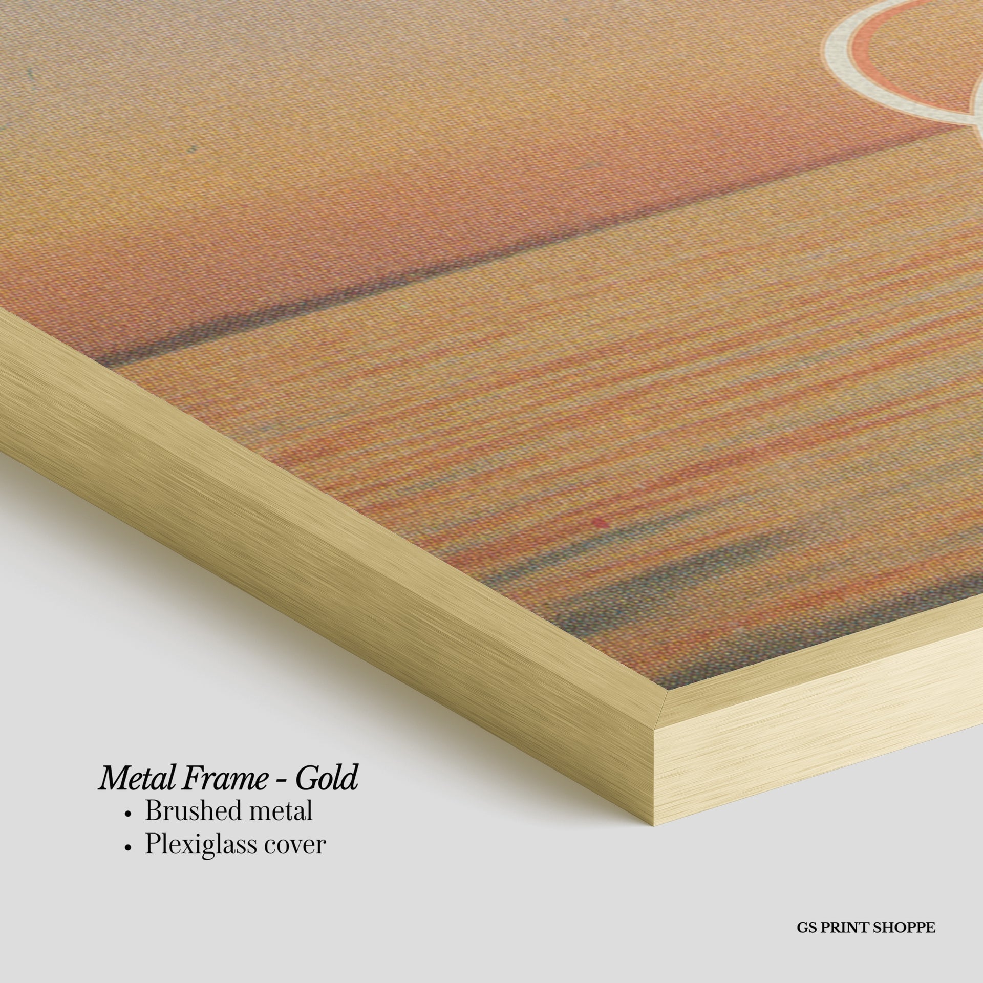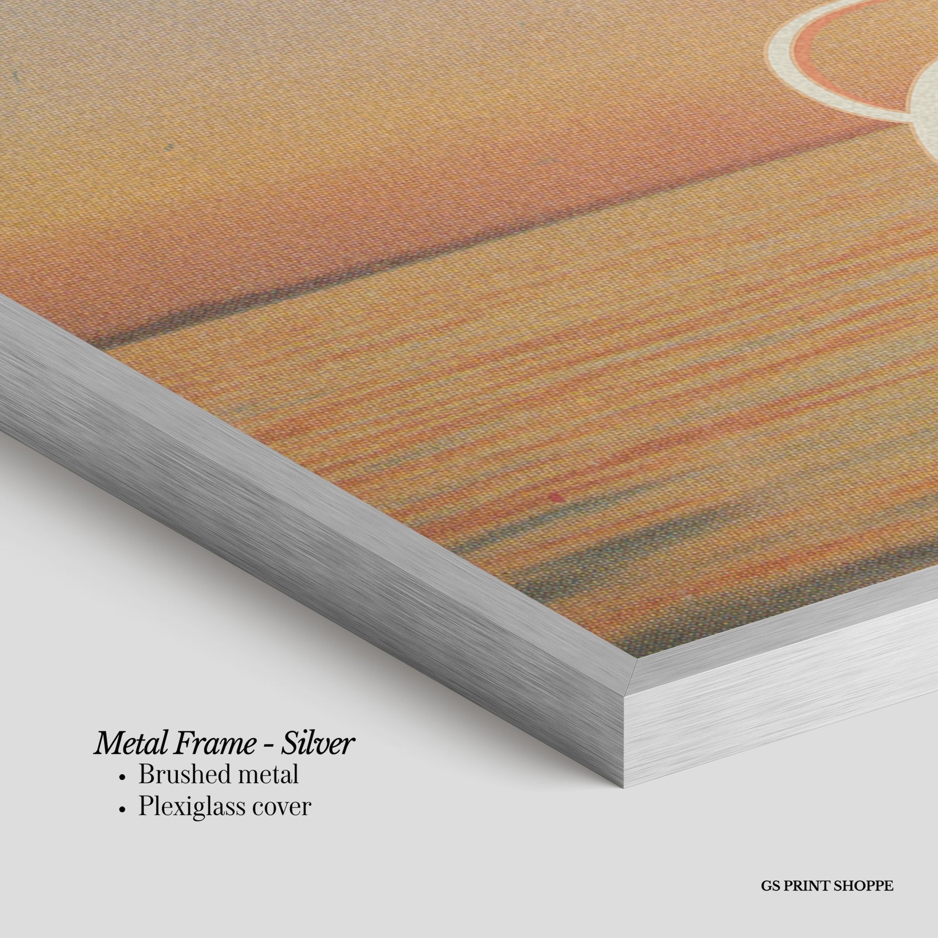 Metal Frame: Sleek and modern, our metal frame is crafted with brushed metal for a polished finish. It comes with durable plexiglass and sturdy metal hangers for horizontal or vertical display.