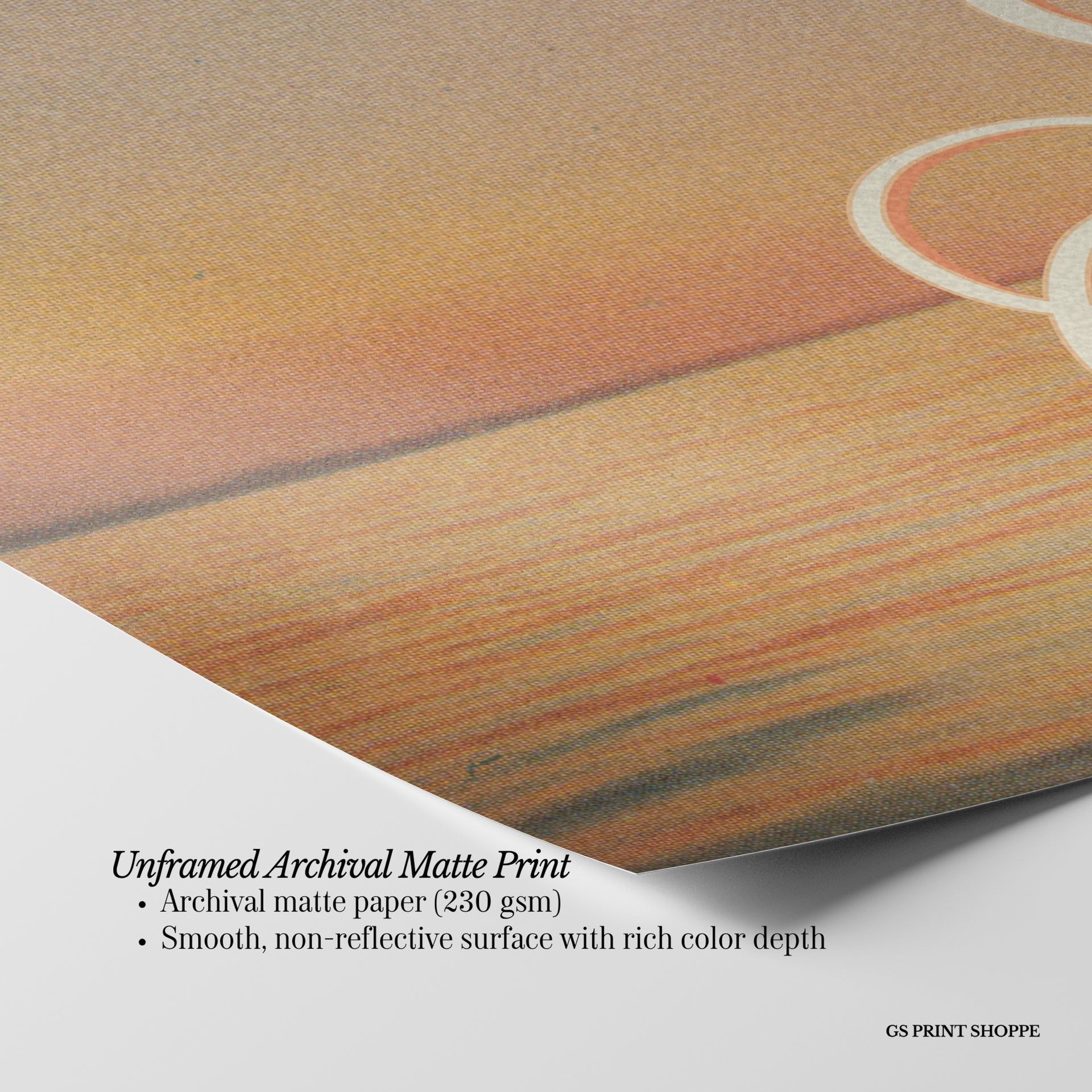 Unframed: This print is professionally printed on archival matte paper (230 gsm), a smooth, acid-free paper with a non-reflective finish. It will be carefully packaged to arrive safely at your door.