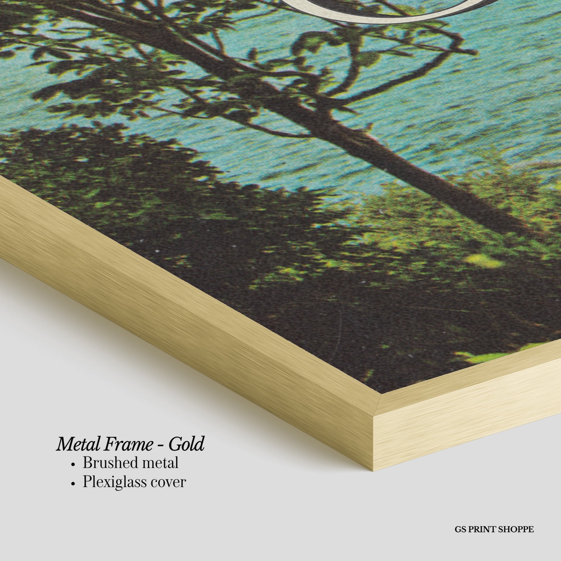 Metal Frame: Sleek and modern, our metal frame is crafted with brushed metal for a polished finish. It comes with durable plexiglass and sturdy metal hangers for horizontal or vertical display.